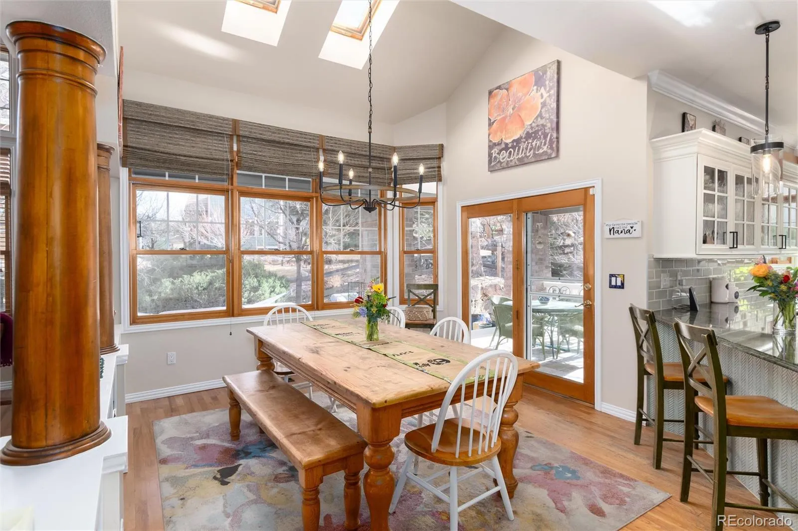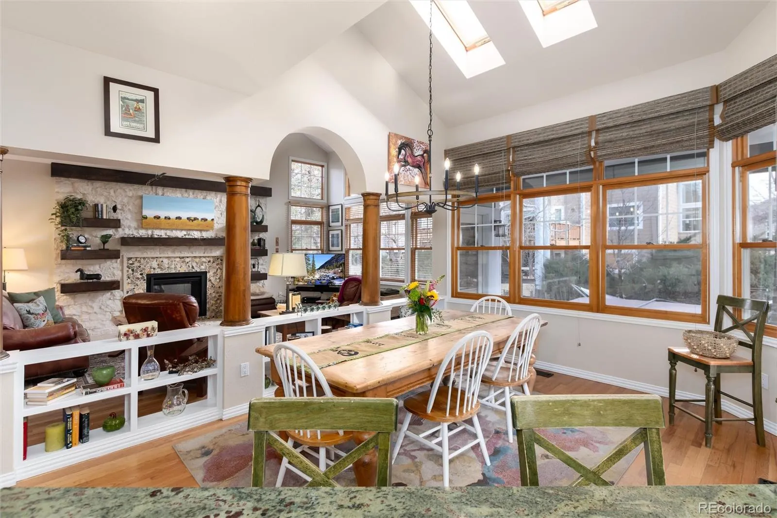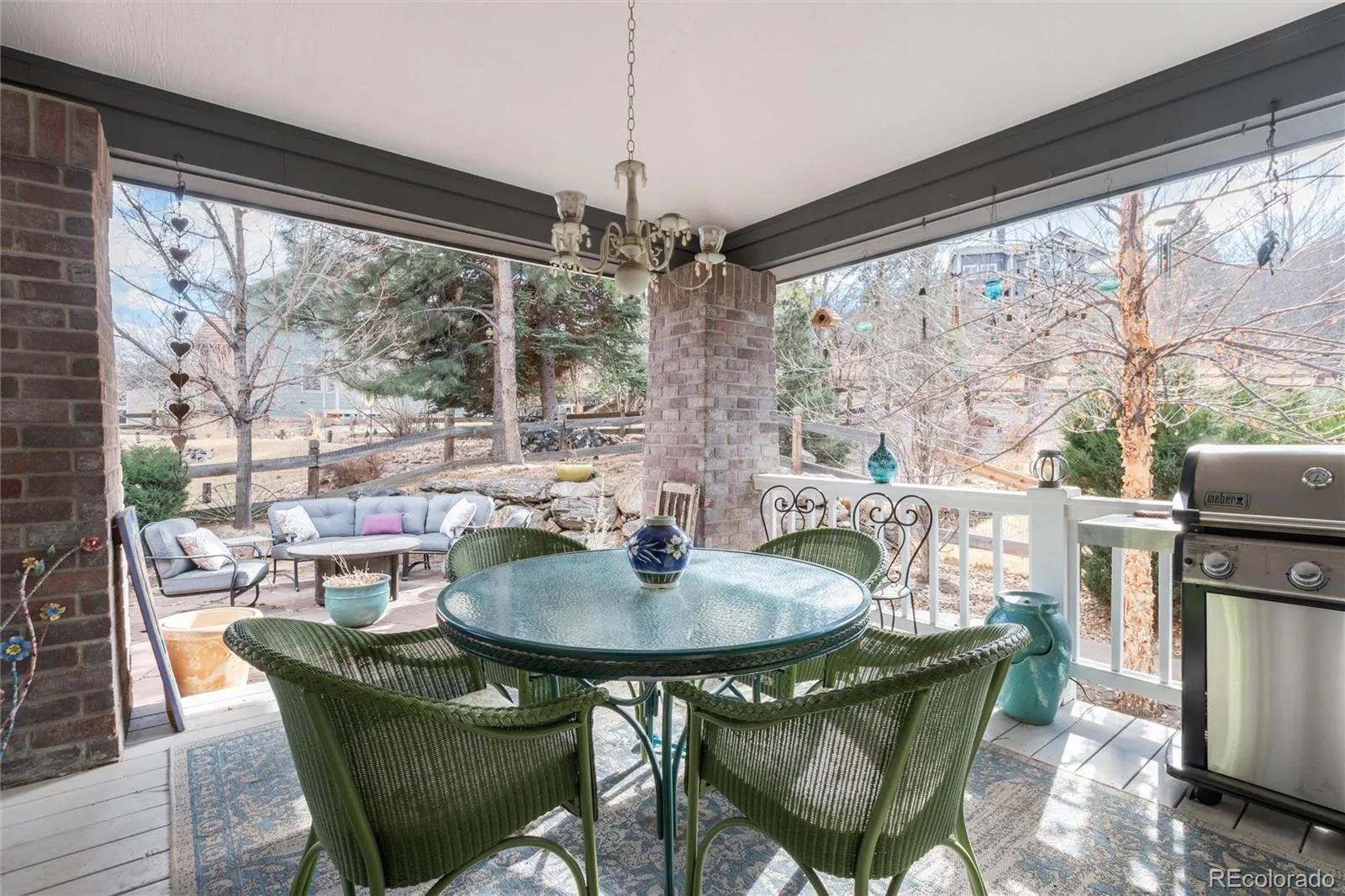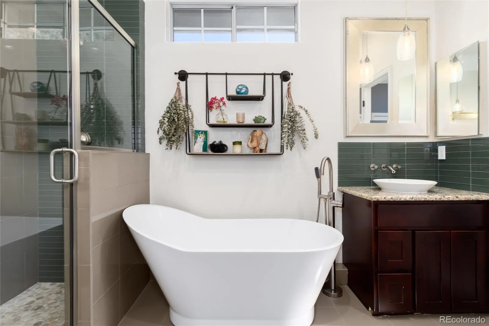 Discover this Ken Caryl Valley gem with Craftsman-style curb appeal and charm – one of the few neighborhoods with 90’s architecture that has withstood the test of time! This home sits on a gentle slope heading up the foothill and is stylishly updated everywhere. Main floor has hardwood, crown molding, column details, updated lighting, an open central staircase, and vaulted ceilings. The great room is anchored by a wall of windows, double-sided fireplace redesigned with sandstone and floating wood shelves, and built-in bookcases. The kitchen has a perimeter of white cabinets, peninsula counter seating, granite counters, and a sage green island with gas cooktop. The large office has a front window view and abundant built-in bookcases painted moss-green. The main floor is completed with a guest room (sharing the double-sided fireplace), dining room, laundry/mud room, and a captivating 3/4 bathroom. The 2nd floor begins with a landing that provides separation between primary and secondary bedrooms and can function as a playroom or homework area. The primary suite includes a gorgeous bird’s eye view up the street to the hills and a magazine-ready primary bath with separate vanities, stand-alone bath and marbled quartz. The secondary bedrooms share a remodeled, modern bathroom. Outside, the covered deck walks down to a flagstone patio with propane fire pit, big boulder wall, hot tub, and screening from a variety of trees such as birch, aspen, maple, and pine. The open staircase winds down to the lower level with a custom-painted mural, small finished play area, and door accessing the unfinished basement. Roof installed in 2024 with Class 4 impact-resistant shingles and transferable warranty. The outdoor enthusiast can take a short walk or bike ride to directly access the Ken Caryl Valley trail system with over 5,000 acres of open space! Other amenities include fitness center, 3 pools, tennis & soon-to-come pickleball courts, parks, equestrian center, and rec classes.