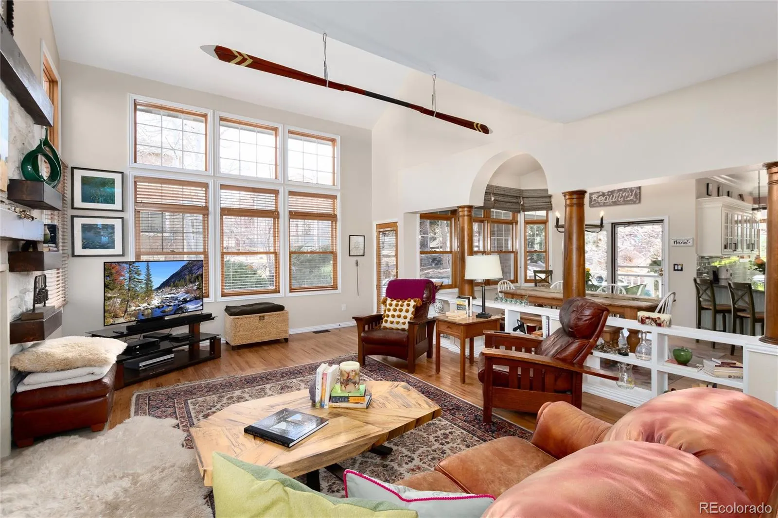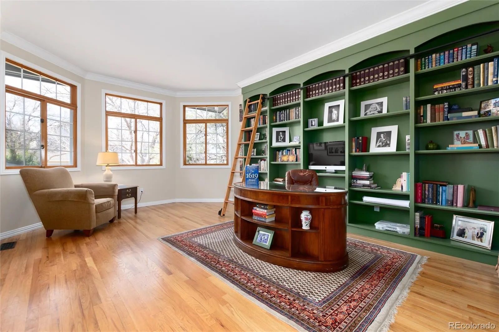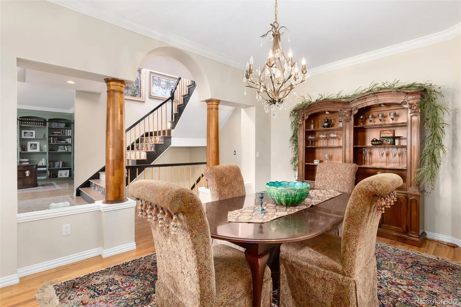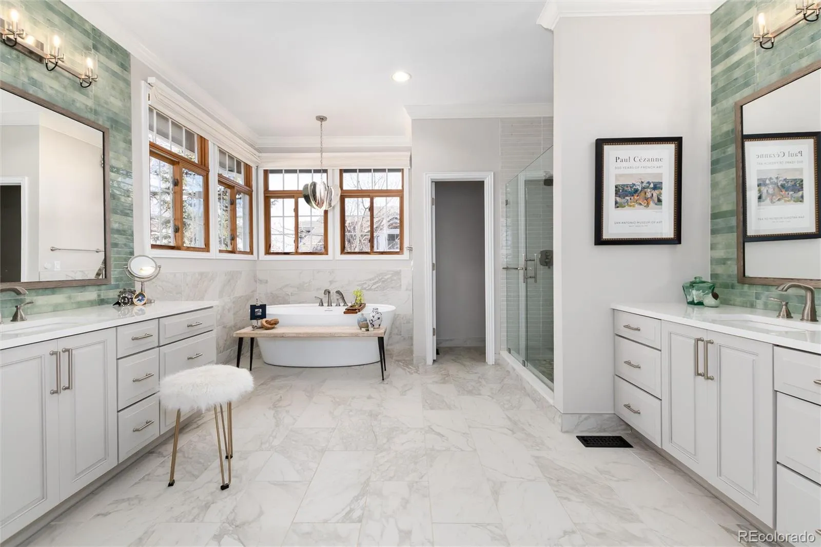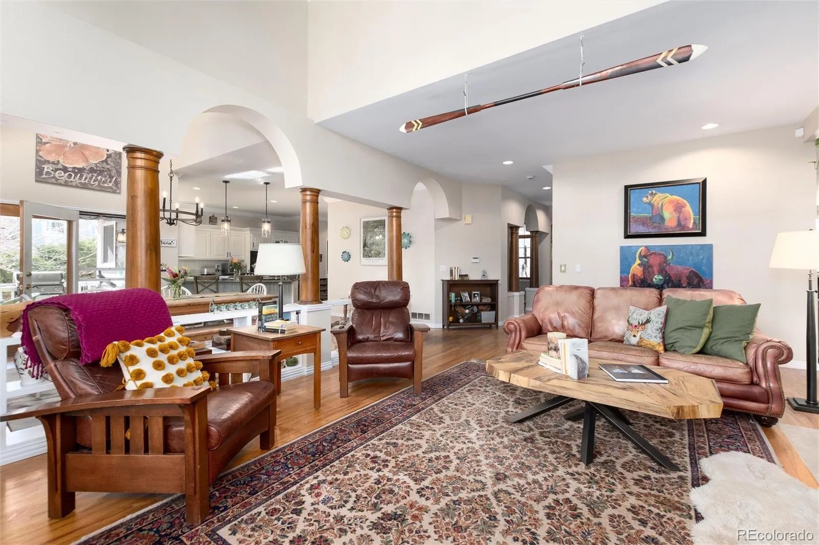 Discover this Ken Caryl Valley gem with Craftsman-style curb appeal and charm – one of the few neighborhoods with 90’s architecture that has withstood the test of time! This home sits on a gentle slope heading up the foothill and is stylishly updated everywhere. Main floor has hardwood, crown molding, column details, updated lighting, an open central staircase, and vaulted ceilings. The great room is anchored by a wall of windows, double-sided fireplace redesigned with sandstone and floating wood shelves, and built-in bookcases. The kitchen has a perimeter of white cabinets, peninsula counter seating, granite counters, and a sage green island with gas cooktop. The large office has a front window view and abundant built-in bookcases painted moss-green. The main floor is completed with a guest room (sharing the double-sided fireplace), dining room, laundry/mud room, and a captivating 3/4 bathroom. The 2nd floor begins with a landing that provides separation between primary and secondary bedrooms and can function as a playroom or homework area. The primary suite includes a gorgeous bird’s eye view up the street to the hills and a magazine-ready primary bath with separate vanities, stand-alone bath and marbled quartz. The secondary bedrooms share a remodeled, modern bathroom. Outside, the covered deck walks down to a flagstone patio with propane fire pit, big boulder wall, hot tub, and screening from a variety of trees such as birch, aspen, maple, and pine. The open staircase winds down to the lower level with a custom-painted mural, small finished play area, and door accessing the unfinished basement. Roof installed in 2024 with Class 4 impact-resistant shingles and transferable warranty. The outdoor enthusiast can take a short walk or bike ride to directly access the Ken Caryl Valley trail system with over 5,000 acres of open space! Other amenities include fitness center, 3 pools, tennis & soon-to-come pickleball courts, parks, equestrian center, and rec classes.
