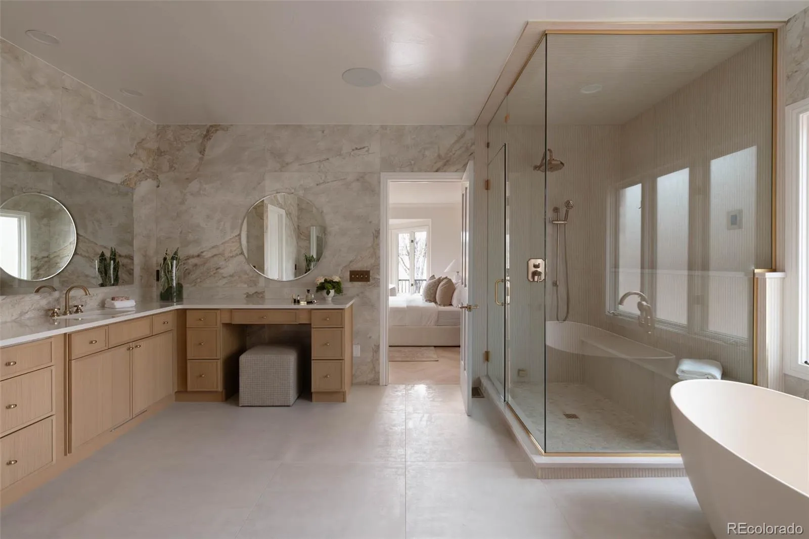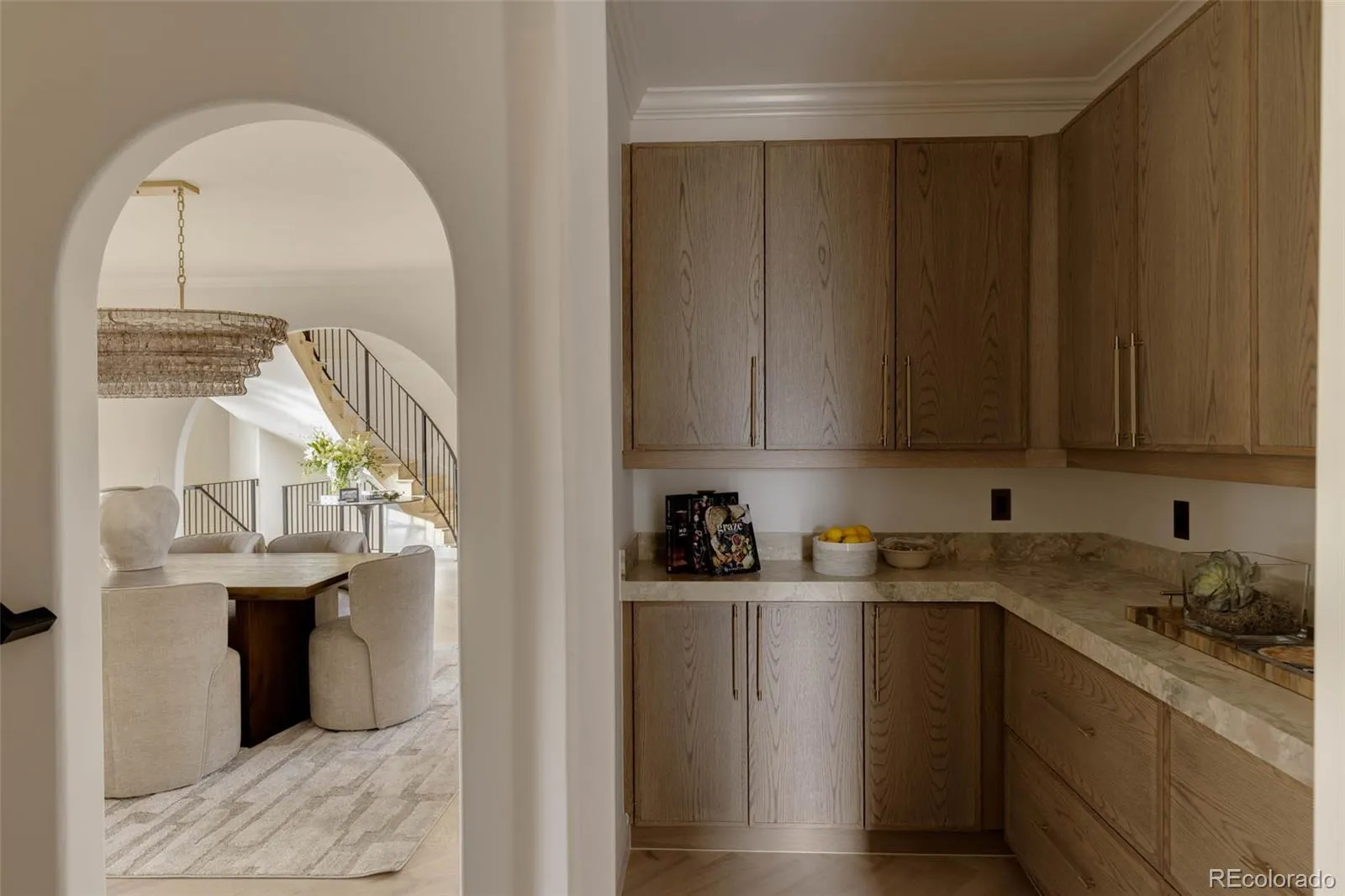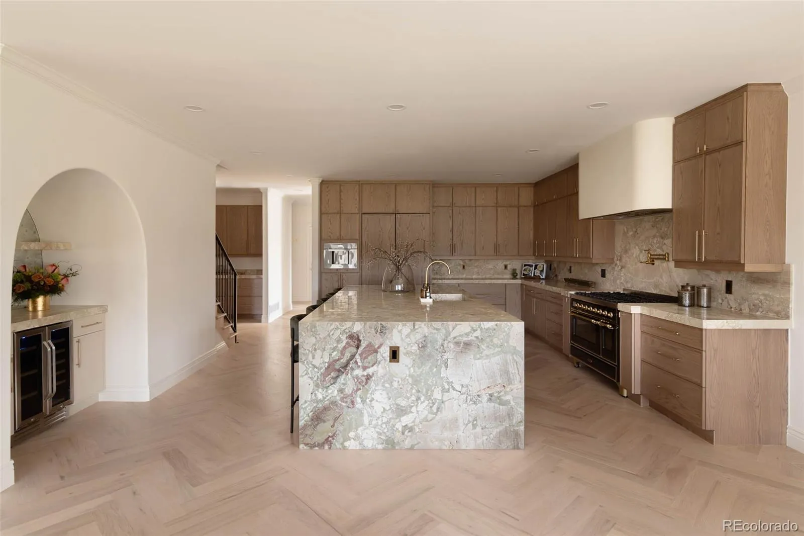Open House Saturday 2/21 10am – 12pm. Rare fully renovated estate on Hole 16 of Glenmoor Country Club, featuring six bedrooms and seven bathrooms. No detail was spared in this renovation. The entry sets a composed tone, framed by a private office and powder bath, while a formal dining room connects seamlessly to the kitchen for natural entertaining flow. The great room rises two stories with architectural window lines framing the golf course. An 18-Ft ERIS accordion door opens fully to the deck, creating a seamless indoor-outdoor connection and drawing natural light into the space. Custom wall paneling, wide plank white oak herringbone floors, and a newly installed fireplace anchor the room. The main-floor primary suite is positioned for privacy and includes a fireplace, steam shower finished in Porcelanosa tile, and a custom California Closet. The kitchen functions as both centerpiece and workspace, featuring a 48-inch ILVE Majestic range, two dishwashers, custom cabinetry, rare marble Ceppo countertops with mitered edge, paneled Thermador refrigerator, built-in thermador coffee maker, dry bar and butler’s pantry. An adjacent family room offers a more intimate secondary living space. Upstairs, a loft connects three en suite bedrooms, including one with a private west-facing balcony overlooking the course. A bonus room above the garage is currently configured as a theatre room, and can easily serve as a guest bedroom, creative studio or playroom. The walk-out basement offers a spacious family room with fireplace, full wet bar, wine cellar, two additional bedrooms, and a gym with private garage access. Major updates include four brand new furnaces as well air conditioning units, a faux cedar shake roof, new flooring, designer grade lighting, five gas fireplaces, Sonos system, and an epoxied three-car garage. Set within Glenmoor’s private gated community, the home offers access to the High Line Canal trail, Cherry Creek, and DTC.