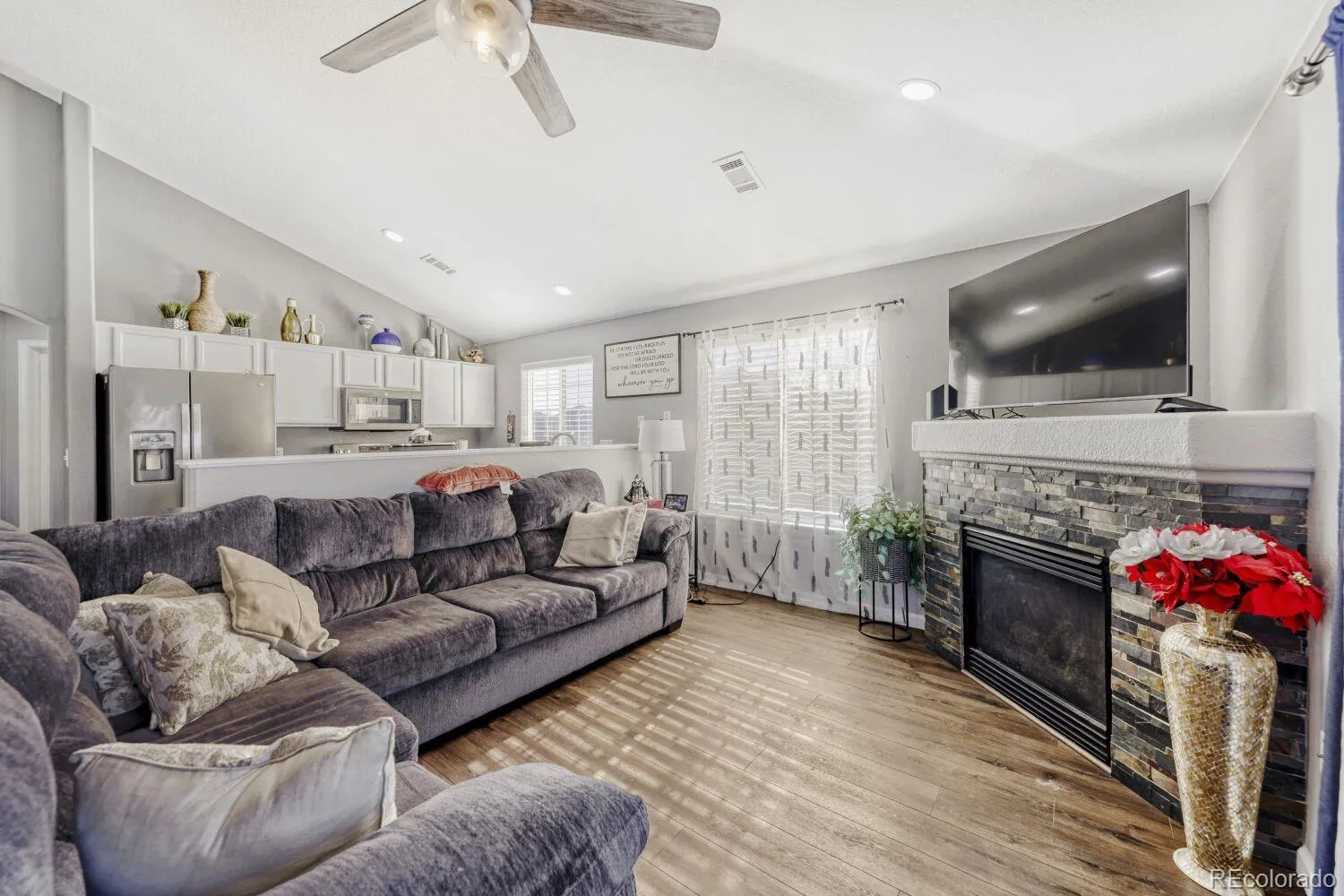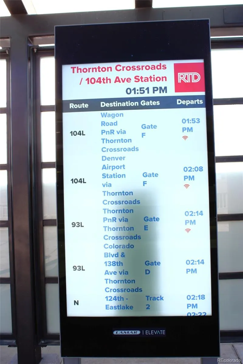 Location, location, location. This home checks all the boxes: Amazing commuter location, just a few blocks to the Thornton Crossroads / 104th Ave. Light-rail and RTD bus station for easy access to Downtown Denver, Union Station, DIA & the Tech Center. Spacious second-floor unit with no neighbors above or below & only one common wall. Clean, well-maintained, updated luxury vinyl flooring, freshly painted kitchen cabinets, updated bath. Nice floorplan with big rooms & an attached garage, with plenty of additional parking across from the garage. Quiet and convenient location. Light & bright with Southern exposure. Good location in the neighborhood, with no neighbors off the west-facing balcony or across the parking area. Community pool and clubhouse are just across from the unit, including weight-room / workout room, large clubhouse with kitchen, couches, game tables, gas-fireplace, great place for a party or gathering. Big seasonal outdoor pool, year-round hot tub, plus 2 saunas. For the outdoor lover, it’s only a few blocks to the Grandview Ponds and Riverdale Open Spaces with miles of trails. For other outdoor recreation, there’s a neighborhood basketball court. Plus, it’s less than a mile to the City of Thornton’s Carpenter Park & Recreation Center with tennis & pickleball courts, basketball courts, lake, huge playground, indoor pool with waterslide, miles of trails, & more. A grocery store just a few blocks away, along with restaurants & shopping centers close by. Check, check, check & check.