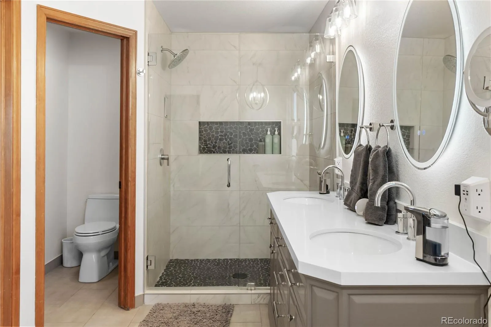 Welcome to this stunning two-story residence that perfectly captures the elevated Highlands Ranch lifestyle. From the moment you step inside, the dramatic vaulted ceilings create an immediate sense of grandeur and light, leading you through an open and inviting floor plan. This home features a meticulously remodeled primary suite bathroom that serves as a true sanctuary, complete with the ultimate luxury of heated floors for those crisp Colorado mornings. The layout is designed for effortless living, offering a full bathroom and two additional half-baths—one conveniently located on the main floor and another in the basement. Step outside to your private backyard oasis, where a large stamped concrete patio awaits, providing the perfect stage for summer BBQs or quiet evening relaxation. Located in a prime neighborhood near top-rated schools and miles of scenic trails, this home offers the perfect blend of modern comfort and functional design.