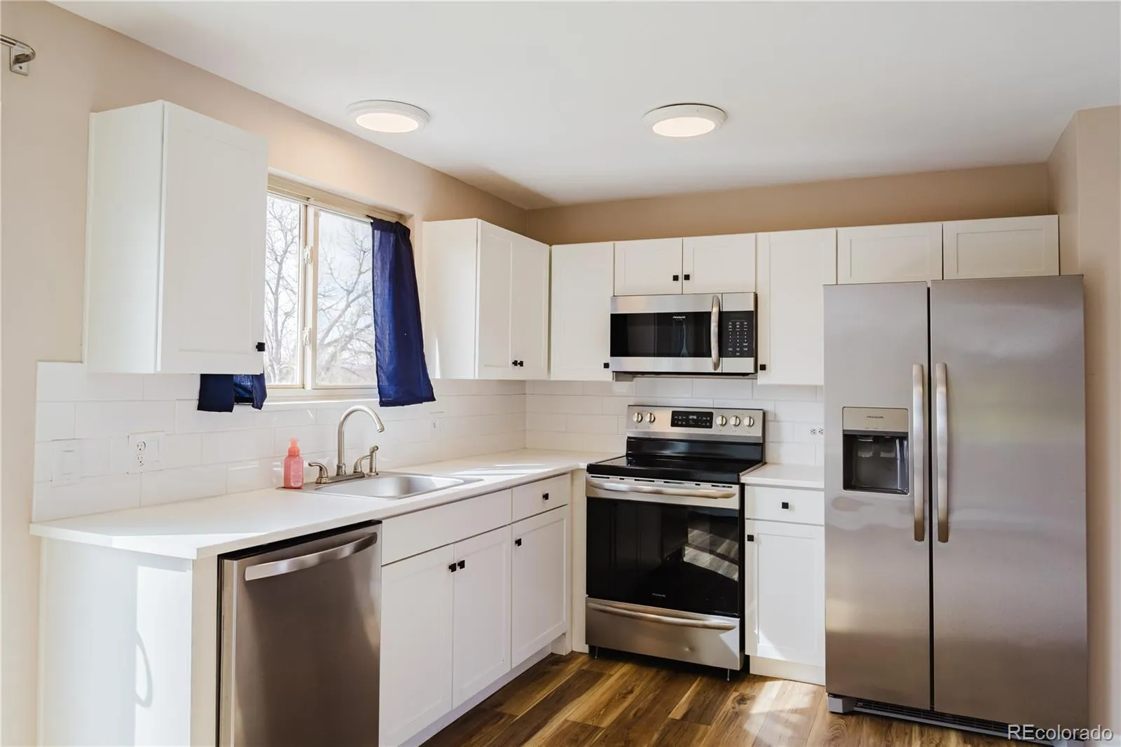 Enter an inviting tri-level design that creates an open, airy feel while maintaining distinct living spaces for comfort, flexibility, and functionality. Large windows throughout fill the home with natural light, enhancing the fresh interior paint and new carpet providing a crisp, modern backdrop, allowing you to move in and immediately enjoy the space. The updated kitchen features newer cabinets, appliances, and luxury vinyl flooring and flows seamlessly into the main living area, ideal for both everyday living and entertaining. Just a few steps down, the spacious family room provides a cozy yet expansive retreat, anchored by a charming fireplace that serves as a warm focal point. This home offers three spacious bedrooms (two with walk-in closets) and two updated bathrooms. The washer and dryer are conveniently located in the lower-level bathroom for added efficiency. Major system upgrades provide valuable peace of mind, including a newer roof (2021), newer electric panel (2023), and newer hot water heater (2023). A Tesla charging station further enhances the home’s modern appeal. A patio slider off the kitchen opens to a concrete patio, extending your living space outdoors. The spacious, flat backyard is a true highlight with mountain views and backs to a greenbelt with direct access to Rocky Ridge Park. Whether hosting gatherings, gardening, or simply relaxing at sunset, this setting is hard to match. Comfort, convenience, and scenic surroundings, this is Colorado living at its best. Schedule a showing today.