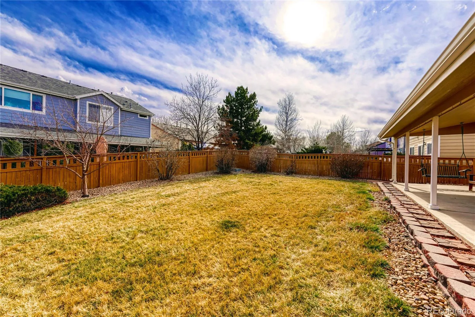 Step into this highly desirable one story ranch that blends comfort, style, and functionality in one of Brighton’s most inviting communities. This well maintained home offers 3 bedrooms and 2 baths, including a spacious primary suite designed for privacy and comfort. The primary bedroom features a large walk in closet and a fully remodeled three quarter bath with updated flooring, tiled shower, modern lighting, and double sinks with clean contemporary finishes. The second bedroom is generously sized with great natural light. The third bedroom offers flexibility for a home office, guest room, or creative space and includes French doors for added character. The open kitchen provides ample counter space and storage, making it ideal for daily living and entertaining. It flows directly into the backyard, where you will find a large covered patio perfect for gatherings throughout the year, a storage shed, an included backyard swing, and a dog house. The home includes a sprinkler system in both the front and back yards for easier landscape maintenance, and all trees were professionally trimmed in 2025. The living room features wood flooring, a fireplace, and classic window shutters that add warmth and definition to the space. Additional highlights include a two-car attached garage with a new garage door opener installed in 2023 and a dedicated laundry area with storage. Located in Bromley Park, the neighborhood offers tree-lined streets, front porches, pocket parks, and green spaces located close by. The community provides convenient access to shopping, restaurants, entertainment, Prairie Center, and major routes, including I-76, making commuting to Denver or DIA practical. This property reflects clear pride of ownership and presents a move-in-ready opportunity for buyers seeking main-level living, functional layout, outdoor enjoyment, and a strong community setting in Brighton.
