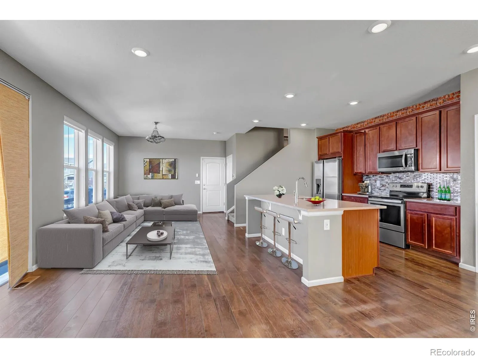 Discover effortless Colorado living in this beautifully updated 4-bedroom, 3.5-bath, two-story paired home with a fully finished basement and bonus room, all set against stunning mountain views. Thoughtfully designed with space, style, and functionality in mind, this home offers room to grow, relax, and entertain. Step inside to an open-concept main level highlighted by luxury plank flooring, modern recessed lighting, and abundant natural light. The chef’s kitchen is the heart of the home, featuring stainless steel appliances, a generous center island with casual bar seating, and seamless flow into the dining and living areas-perfect for everyday living or hosting guests. Rustic charm shines through with unique touches including a corrugated steel entry foyer, faux brick accent wallpaper, and added character throughout. Upstairs, retreat to your spacious primary suite complete with a private ensuite bath and walk-in closet. Two additional bedrooms, a versatile loft ideal for a media room, play space, or home gym, and convenient upstairs laundry complete the upper level. The finished basement expands your living space with a bonus room perfect for a home office, guest suite, or recreation area. Enjoy peaceful Colorado mornings and evenings on your private patio with a low-maintenance yard, ideal for BBQs, relaxing, or sipping coffee while taking in the views. Located in the amenity-rich Copperleaf Master Planned Community, you’ll enjoy over 100 acres of parks and open space, miles of scenic trails, and access to the Arboretum Pool and Clubhouse. Plus, you’re minutes from Aurora Reservoir, shopping, dining, light rail, major commuting routes, and Denver International Airport. All of this within the highly sought-after Cherry Creek School District, nationally recognized for academic excellence.