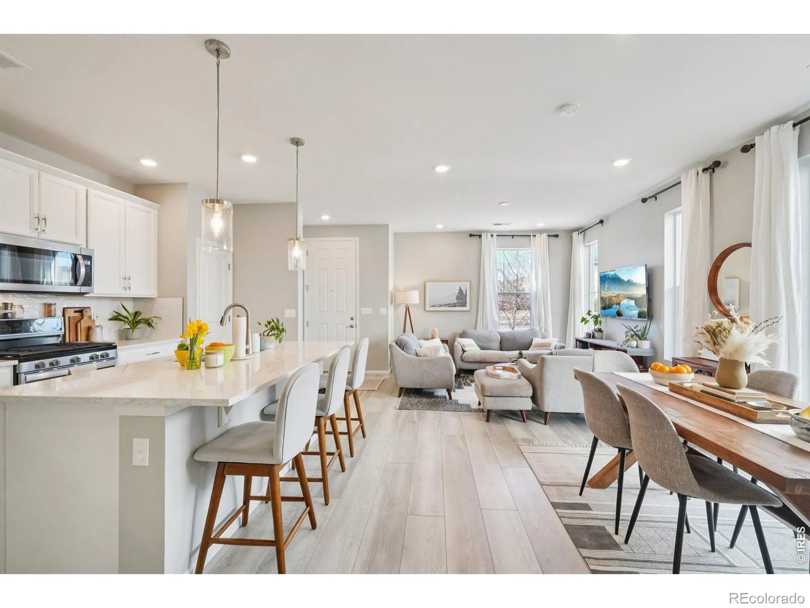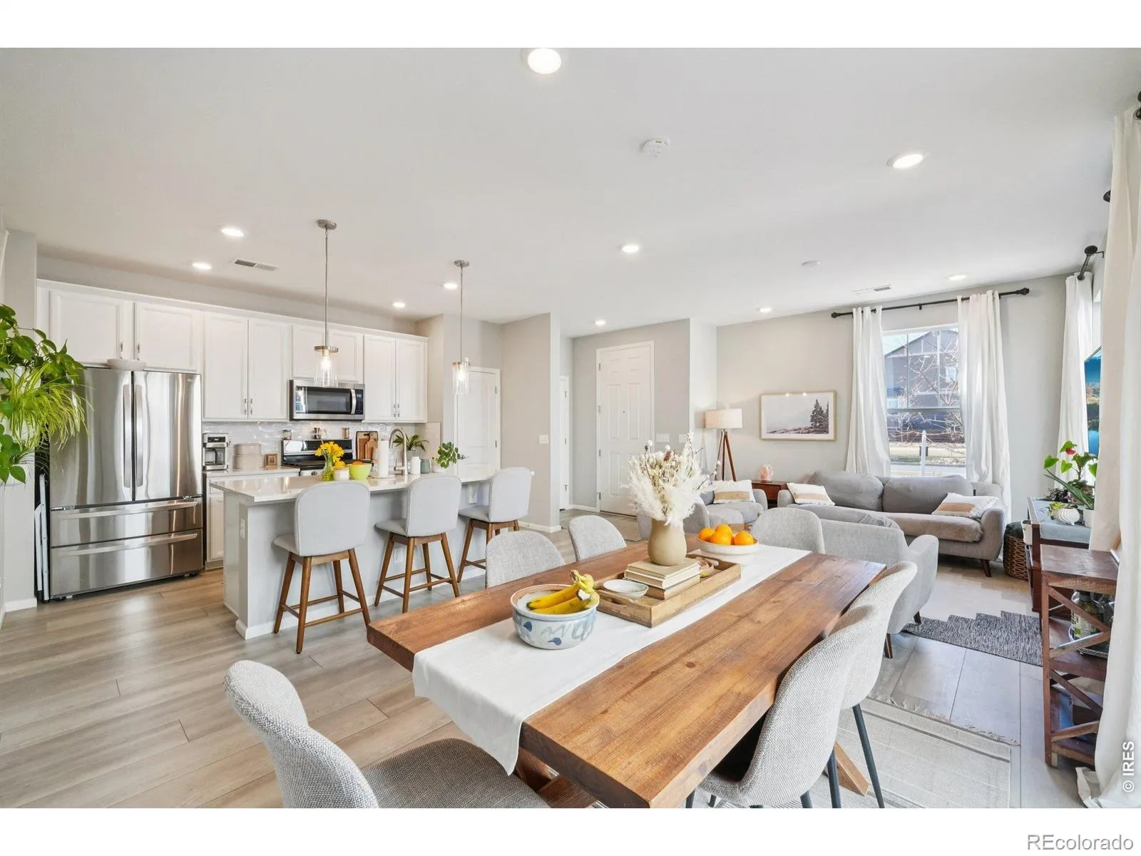 Welcome to the most affordable home available in the highly desirable Collier’s Hill neighborhood! This good-as-new ENERGY STAR certified home provides small town charm with easy access to town amenities. Enjoy an abundance of natural light, peekaboo mountain views and an open concept main level with plenty of room for cooking, dining and relaxing. With over $30k in builder upgrades, the built-in stainless steel Whirlpool appliances and large center island makes this space suitable for both everyday living and entertaining. Upstairs, the thoughtful layout includes two bedrooms, two bathrooms, convenient upstairs laundry and a versatile loft – offering flexible space for an office, home theatre, gym or additional bedroom. The primary suite is a lovely retreat, complete with a large window seat, generous walk-in closet. All of the upstairs windows have also been custom fit with wood blinds. Step outside your sliding glass door and fire up the grill on your perfect pocket patio complete with bistro lights and a spot for your furniture. There is also a hassle-free side yard for your dog to play. A two-car garage will keep your cars out of the snow in the winter months and provide ample storage year-round for your bikes and other toys. Need more storage? The crawlspace runs the entire length of the house providing ample space for any and everything you want to store away. A radon mitigation system is already installed. This home offers plenty of greenspace without the maintenance! With access to multiple community trails and parks. Your front xeriscape yard maintenance and snow removal are included with the HOA. Residents of Colliers Hill also enjoy two clubhouses, each with a resort-style pool and state-of-the-art gym equipment. An easy walk to the highly-rated elementary, middle and high schools just around the corner. Not to mention, Old Town Erie is just moments away — perfect for dining out, unique small town events and upcoming farmer’s markets. Welcome home!