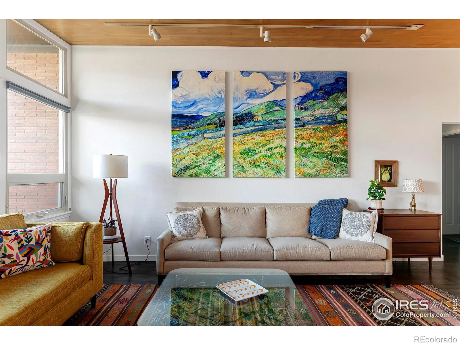 Timeless Design. Natural Light. Mid-Century Done Right. Tucked beneath mature trees, this authentic mid-century modern invites you into a world of light, texture, and architectural integrity. Expansive windows blur the line between indoors and out, while glowing wood ceilings and a dramatic brick fireplace anchor the space with warmth and character. The main living area is pure mid-century magic – exposed brick, warm hardwood floors, clean lines, and effortless indoor-outdoor sightlines. Cozy in winter by the fire and sun-drenched year-round, it’s a home where art feels at home – and so does conversation. The open living space flows seamlessly into a dedicated dining area, creating an easy rhythm for everyday meals and weekend gatherings alike. The kitchen connects naturally to the heart of the home, while a separate laundry room adds thoughtful functionality. With 3 bedrooms and 2 baths, the layout balances flexibility and privacy. The primary suite offers a calm, generous retreat at the end of the day. Outside, a fully fenced backyard framed by mature trees invites gardening, pets, play, or simply soaking in Colorado sunshine. A detached shed offers convenient storage for bikes, tools, and outdoor gear – keeping the yard open and the lifestyle easy. And the location? Hard to beat. Enjoy the rare ease of walking to the neighborhood golf course and public pool – summer just feels better here. Homes like this rarely come to market intact. Preserved architectural details, clean lines, and inviting updates make this mid-century living – done exactly right. Recent updates include: New Lennox furnace and heat pump (2026), new interior paint (2026), new engineered hardwood floors (2021), new refrigerator and dishwasher (2022) and new microwave (2026). The home also features a tankless water heater (2018). Enjoy the freedom of NO HOA in this sweet neighborhood in a great location. Welcome Home!