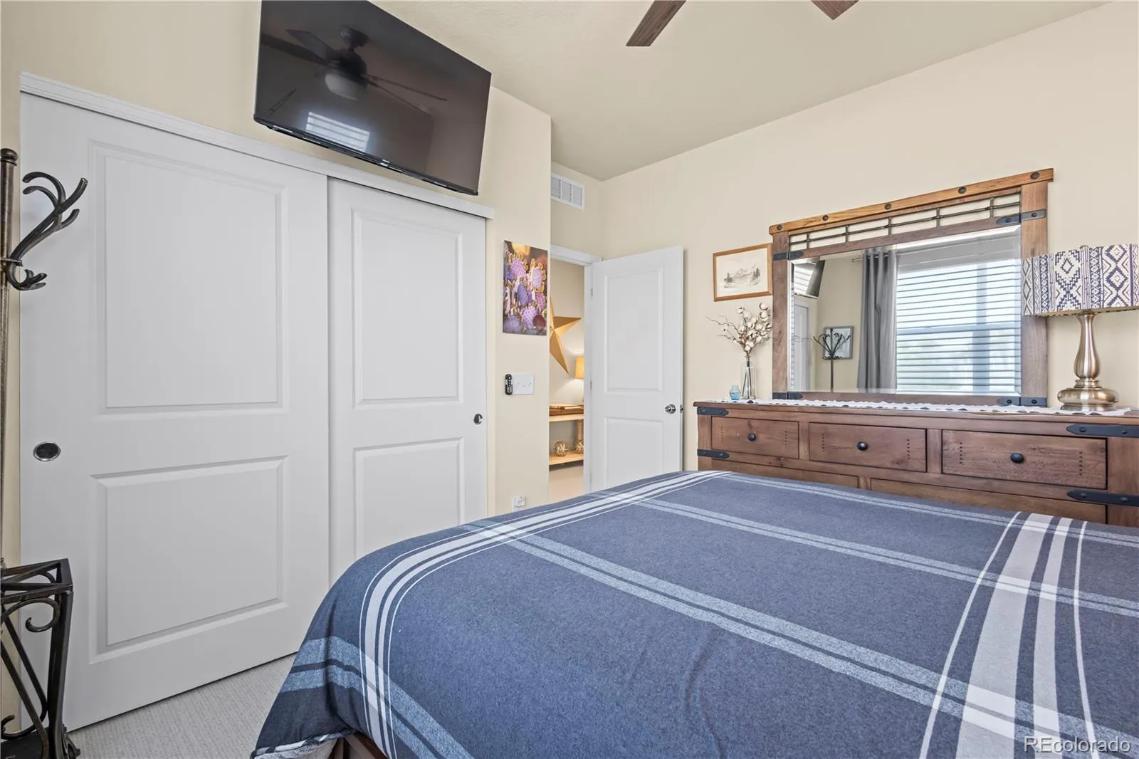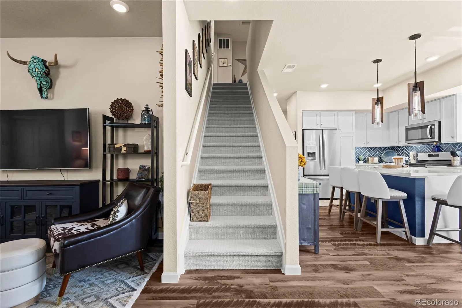 This exceptional townhome offers the ultimate blend of luxury, lifestyle and location. Every detail of this home has been thoughtfully designed and tastefully decorated. This desirable two-story floorplan townhome backs up to Sunset Park green space where you can enjoy evenings on your large private deck with views of the creek below. The open concept main floor has an upgraded kitchen layout with Quartz countertops, a large island, stainless steel appliances, low maintenance vinyl flooring and a glass tile backsplash. Your dinette has access to the new and very private Trex deck. This flows into the living room with dual coat closets for storage. You also have a three-quarter bath and a pantry conveniently located just off the garage. The second floor primary bedroom shines with two walk-in closets, an en-suite bath including a walk in shower and dual sinks. Two more bedrooms and a full bath with tub complete the second level with views of the green space and trickling creek from the windows. Two bedrooms have luxury wool carpet the third has high-end maple hardwood floors, all three bedrooms include ceiling fans. The upgraded garage is bright and clean with epoxy floors and additional celling storage. Location is ideal a short drive to Golden and only 10 minutes from Red Rocks. A quick walk to Oak St light rail gives you easy access to Golden, Ball Arena, Empower Field, and Union Station! You can’t beat this location.