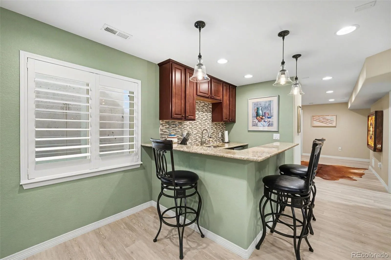 This home in the Heritage Todd Creek 55+ community offers a blend of luxury and functionality, specifically designed for active adult living. Residents have access to the Heritage Todd Creek clubhouse, which serves as the social hub of the community. Enjoy abundant amenities including a gorgeous clubhouse with a fitness center, library, billiards, indoor and outdoor swimming pools, a restaurant, an 18-hole golf course, tennis, pickle ball, and planned activities, all while you mingle and meet like-minded, active adults. Your new home is just a stroll or cart ride away. This gorgeous ranch floor plan will delight you with gleaming hardwood floors, 2 beds, 2 baths, an office, kitchen, living room, and a mud/laundry room on the main level. The fully finished basement is a bonus, adding 3 beds, 1 bath, a wet bar and large recreation room. You have space for guests, hobbies, fitness, or multi-generational living–whatever you need! The windows throughout are beautifully finished with Plantation Shutters. The attached 3-car tandem garage holds vehicles, a workshop and a golf cart. The professionally landscaped yard offers low-maintenance outdoor living and includes hard-wired lighting, flagstone patio, artificial turf and wrought iron fencing for the pups. Super private with no one directly behind you and lush trees for natural screening. The home’s mechanics include central air, 2 sump pumps, gas forced air heating and a GNC Water Filtration System and Charger Water Treatment System for conditioning. A rare opportunity to own a ranch home with a finished basement in one of Colorado’s premier active-adult communities.