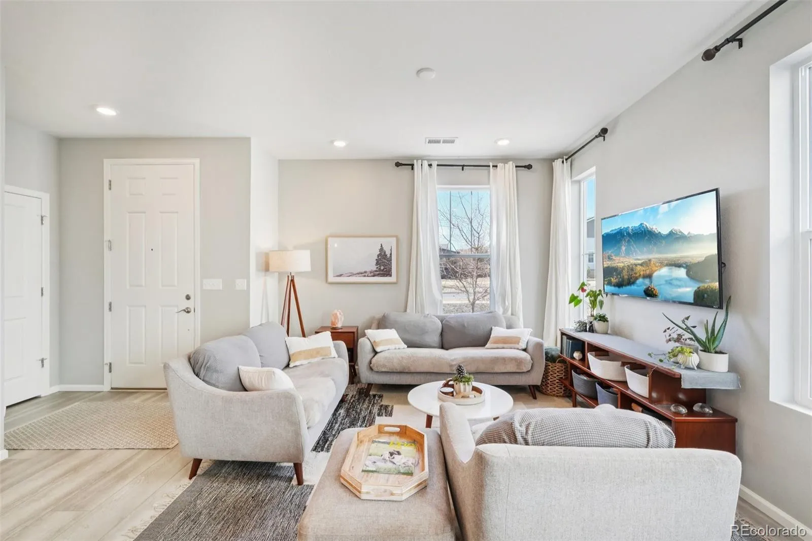 Welcome to the most affordable home available in the highly desirable Collier’s Hill neighborhood! This good-as-new ENERGY STAR certified home provides small town charm with easy access to town amenities. Enjoy an abundance of natural light, peekaboo mountain views and an open concept main level with plenty of room for cooking, dining and relaxing. With over $30k in builder upgrades, the built-in stainless steel Whirlpool appliances and large center island makes this space suitable for both everyday living and entertaining. Upstairs, the thoughtful layout includes two bedrooms, two bathrooms, convenient upstairs laundry and a versatile loft – offering flexible space for an office, home theatre, gym or additional bedroom. The primary suite is a lovely retreat, complete with a large window seat, generous walk-in closet. All of the upstairs windows have also been custom fit with wood blinds. Step outside your sliding glass door and fire up the grill on your perfect pocket patio, complete with bistro lights and a spot for your furniture. There is also a hassle-free side yard for your dog to play. A two-car garage will keep your cars out of the snow in the winter months and provide ample storage year-round for your bikes and other toys. Need more storage? The crawlspace runs the entire length of the house, providing ample space for any and everything you want to store away. A radon mitigation system is already installed. This home offers plenty of greenspace without the maintenance! With access to multiple community trails and parks. Your front xeriscape yard maintenance and snow removal are included with the HOA. Residents of Colliers Hill also enjoy two clubhouses, each with a resort-style pool and state-of-the-art gym equipment. An easy walk to the highly-rated elementary, middle and high schools just around the corner. Not to mention, Old Town Erie is just moments away — perfect for dining out, unique small town events and upcoming farmer’s markets. Welcome home!