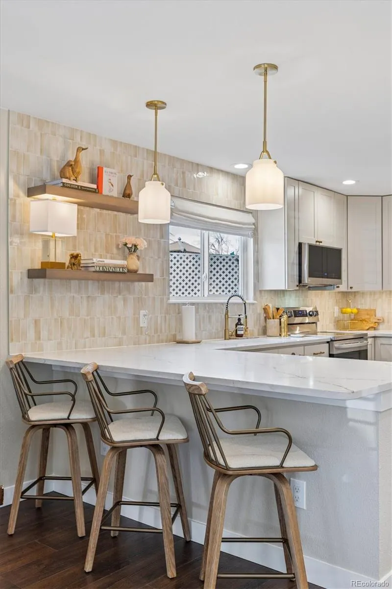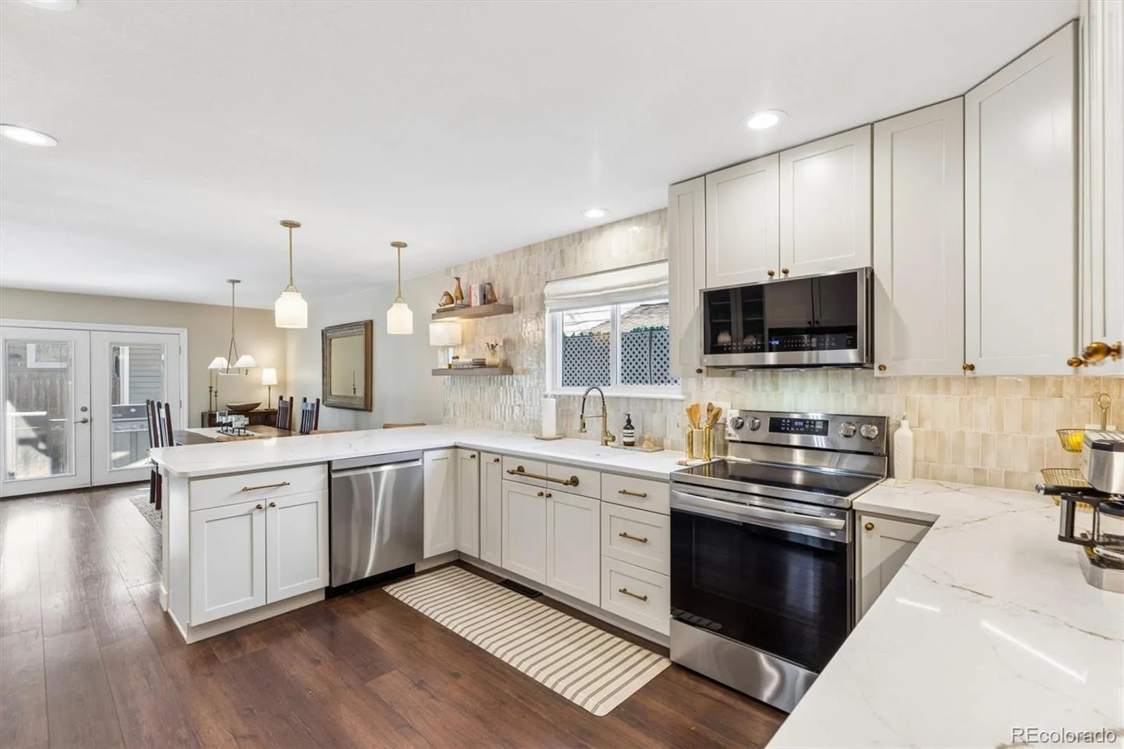 Don’t miss your chance to own this beautifully updated 3-bedroom, 3-bath home in the heart of Littleton’s highly sought-after Sherman Park neighborhood. This stunning residence features a brand-new, full kitchen remodel with all-new appliances, along with a new furnace and A/C, new carpet, new main-level flooring, an updated staircase railing, and a new garage door opener. The open-concept main level is flooded with natural light and designed for effortless living and entertaining, with a spacious dining area and double doors that open to a private, fenced backyard patio – the perfect space for relaxing or hosting gatherings. The full kitchen remodel features brand new quartz countertops, custom cabinetry, oversized sink, brass faucet and ample storage space. Upstairs, the versatile three-bedroom layout offers flexibility for space for bedrooms, home office, nursery, or guest room. The oversized primary suite is a true retreat, currently set as the home office, complete with a private balcony, a beautifully maintained bathroom with a subway tile walk-in shower and a generous walk-in closet. The finished basement adds even more functionality with a home gym area, laundry space, ample storage, and convenient access to the home’s mechanics. Easily walk and enjoy nearby greenbelts and open green space just steps from your door, plus the convenient location only minutes from Downtown Littleton’s restaurants, shops, parks, and trails. This is a rare opportunity to own a turnkey home in a location that truly offers the best of Littleton living. Welcome home!