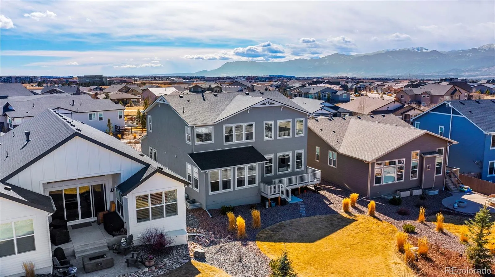 Positioned within the prestigious Cordera community and the acclaimed Academy School District 20, this exceptional residence offers an elevated Colorado lifestyle defined by light, scale, and breathtaking Front Range scenery. A dramatic two-story entry captivates with soaring ceilings, an elegant open staircase with wrought-iron balusters, and expansive picture windows that frame the surrounding landscape like living art. The main level unfolds into a luminous great room anchored by a sleek fireplace and refined architectural lines. The chef’s kitchen showcases crisp custom cabinetry, stunning quartz countertops, stainless appliances, a generous center island with seating, and a spacious walk-in pantry designed for seamless hosting, and is beautifully complemented by a dedicated dining area featuring a built-in coffee bar—creating a cohesive and sophisticated space for both elevated entertaining and everyday rituals. A private main-level office provides a polished work-from-home retreat. Upstairs, the primary suite serves as a serene sanctuary, accompanied by two additional bedrooms, a well-appointed bath, convenient upper-level laundry, and a versatile loft ideal for a secondary lounge or media space. The finished lower level further enhances flexibility with two additional bedrooms, a full bath, and an expansive secondary living area perfect for guests or recreation. An oversized three-car tandem garage offers exceptional storage and functionality, while the elevated composite deck creates an inviting setting for gatherings and quiet Colorado evenings. Thoughtfully designed with timeless finishes and architectural presence throughout, this Cordera home delivers refined luxury and extraordinary livability.