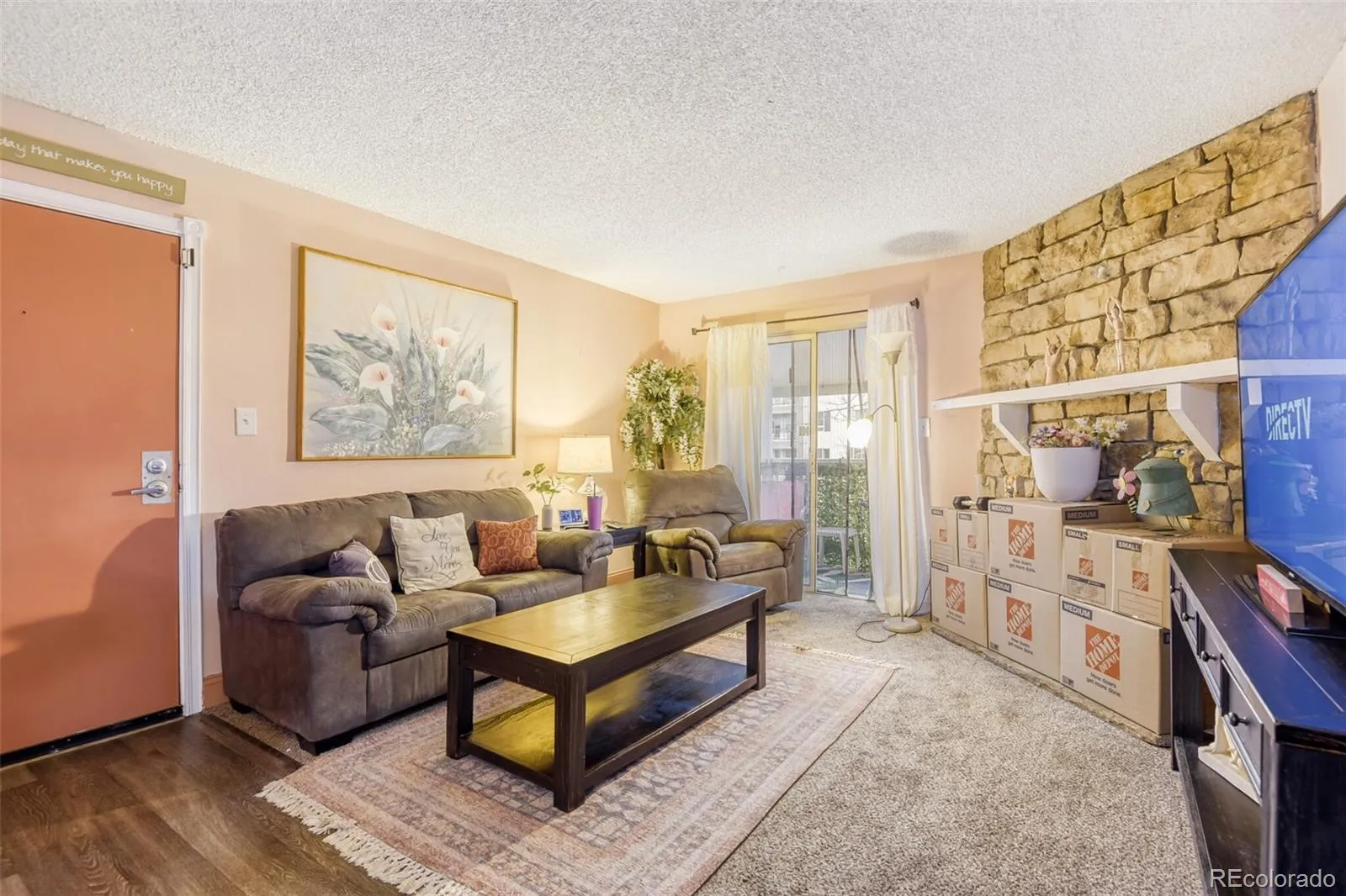 Welcome to this inviting condominium offering comfort, convenience, and a functional layout in a desirable Denver location. The living room features a cozy corner fireplace and direct access to a private deck, creating a warm and welcoming space to relax or entertain. The kitchen flows seamlessly into the dining area, making everyday living and hosting feel effortless. The primary bedroom includes an ensuite bath for added privacy, while an additional bedroom and full bathroom provide flexibility for guests, a roommate, or a home office. In-unit laundry adds everyday convenience to this well-designed home.