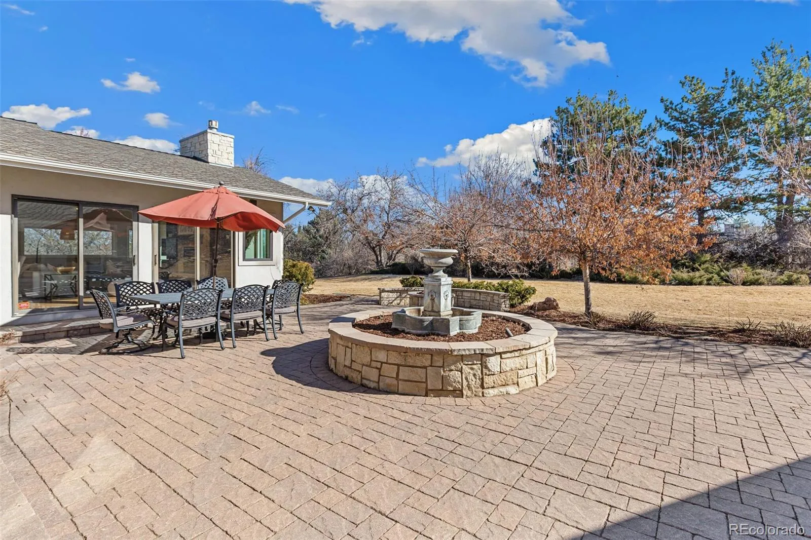Privately set on just shy of a full acre beneath a canopy of mature trees, this custom ranch makes a striking first impression with a circular drive and side-load garage. The rear courtyard unfolds as a secluded retreat, where an impressive fountain and expansive interlocking paver patio create a refined setting for outdoor entertaining.