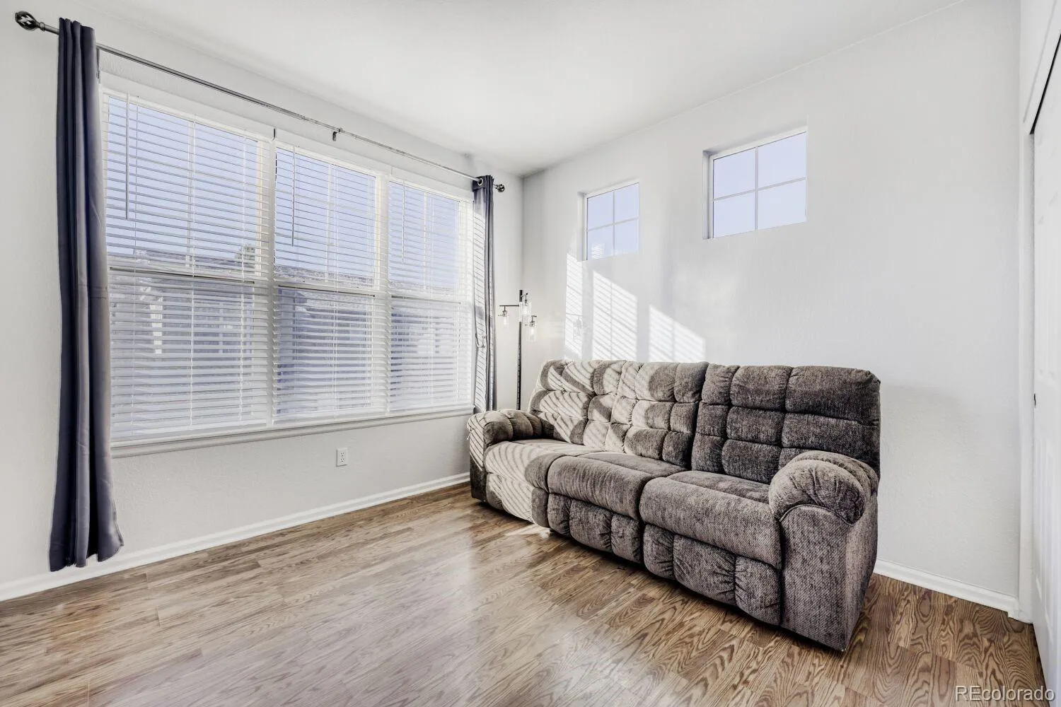 Rare open concept Penthouse with attached garage in gated community! Popular townhouse style condo with upgraded laminate flooring and fresh neutral paint * Open layout includes large family room with vaulted ceilings, gas fireplace and access large balcony overlooking courtyard* nice open kitchen * Large private master suite with walk in closet, second bedroom with full bath, and a laundry room – washer/dryer included! Parking includes one car attached garage. Short walk to community pool. Easy access to shopping, parks, light rail, highway, DTC, Cherry Creek, DIA and Downtown Denver. Showroom condition!