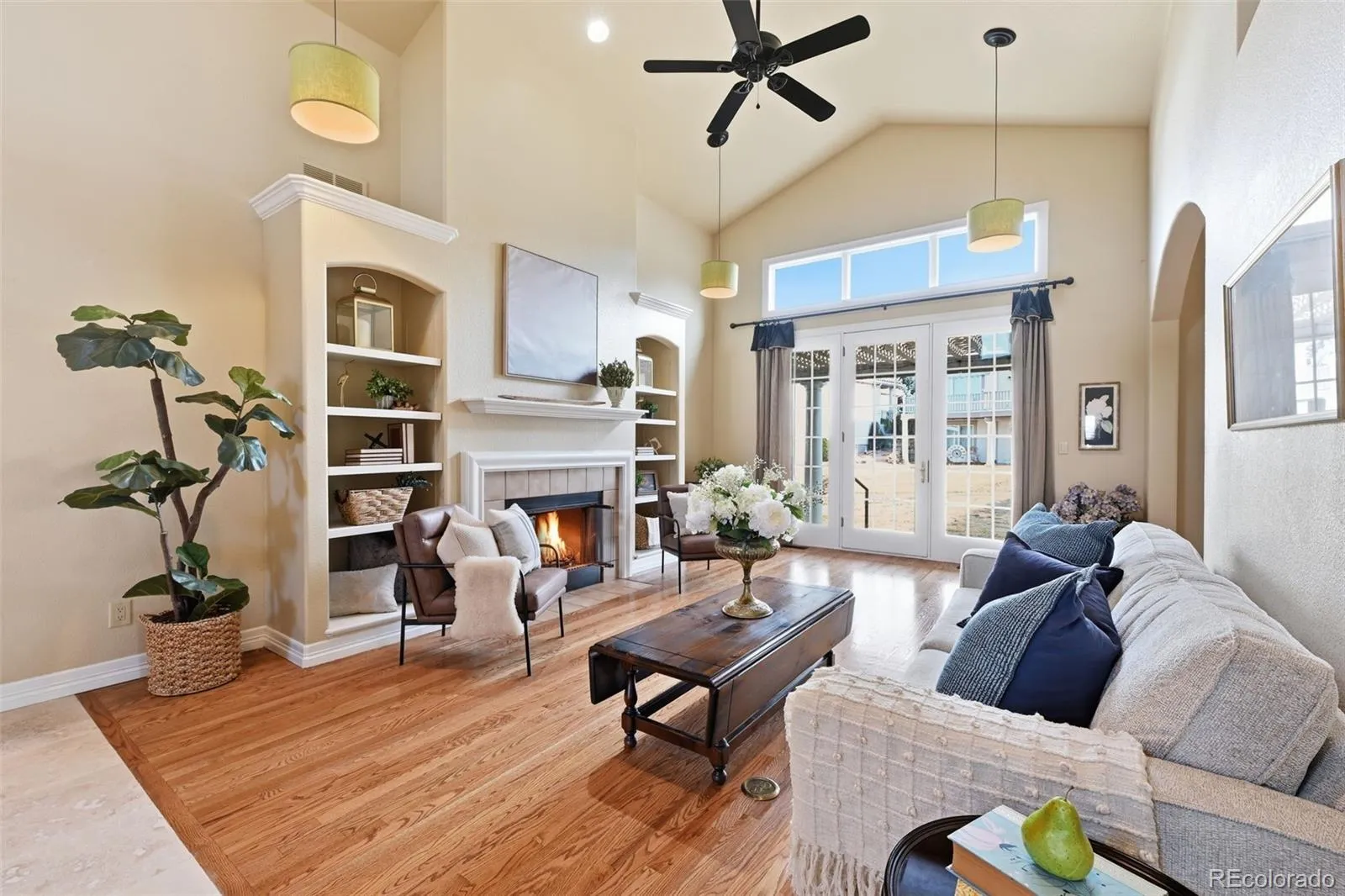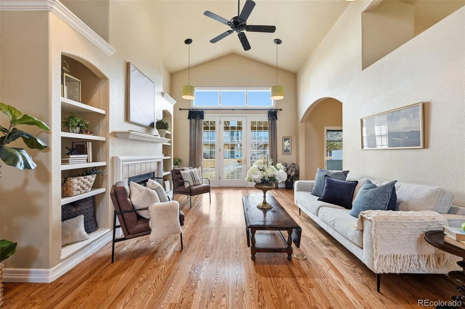This impeccably maintained ranch-style home is the one you’ve been waiting for. From the moment you step inside, elegant travertine tile sets a warm and sophisticated tone in the foyer. Vaulted ceilings soar into the spacious great room, where a cozy gas fireplace and custom built-in shelving create the perfect gathering space. Newly refinished hardwood floors flow seamlessly into the dining room, adding warmth and timeless charm. Step outside to your covered patio and unwind while enjoying peaceful views of the Cypress Ridge walking trail just beyond your backyard — a rare and serene backdrop. The open-concept kitchen connects beautifully to the dining area and features a breakfast bar, updated appliances, a pantry, and rich travertine flooring that ties the space together. The main-level primary suite is a true retreat, complete with a generous walk-in closet and a luxurious five-piece bath designed for relaxation. Private patio access from the primary bedroom adds an extra touch of comfort and convenience. A second main-level bedroom offers flexibility as a guest room or home office. Designed with privacy in mind, each of the four bedrooms includes its own dedicated bathroom — ideal for guests or multi-generational living. The finished basement expands your living space with a large family room and two additional spacious bedrooms. A substantial utility room and separate storage room ensure everything has its place. Offering over 3,200 square feet of beautifully designed living space, a two-car garage, and a prime location near shopping and the natural beauty of Briargate, this home delivers the perfect balance of style, comfort, and low-maintenance living.