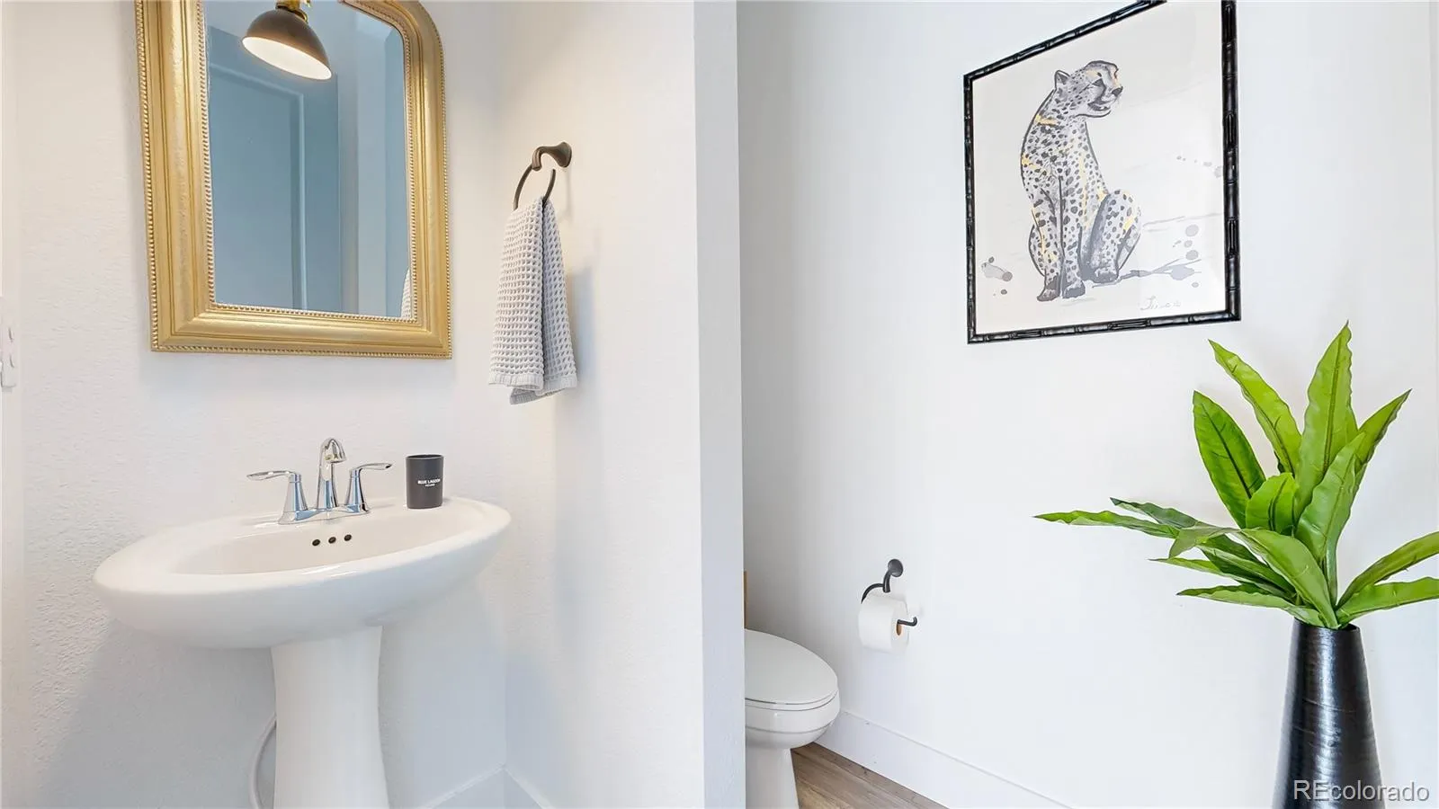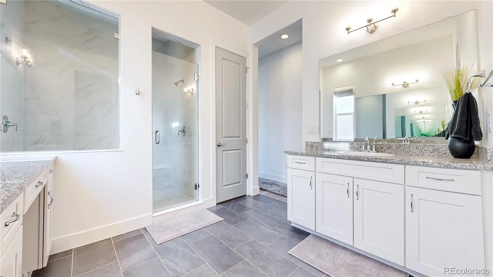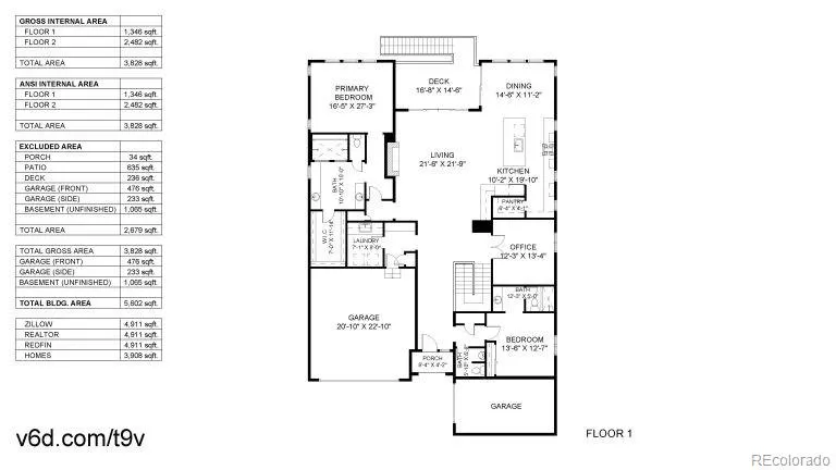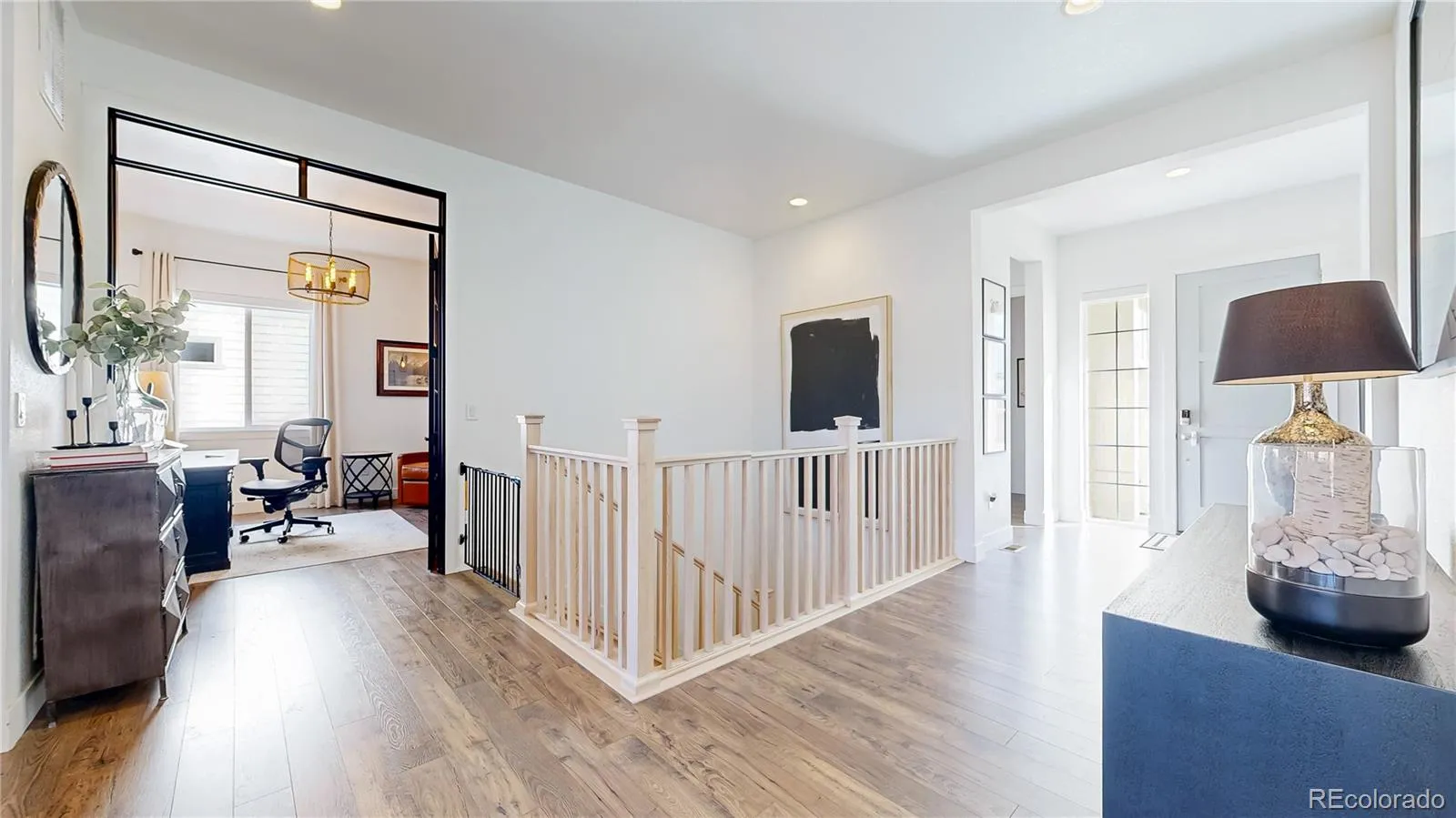Ranch living at its finest in an exquisite Castle Pines home with a modern farmhouse elevation, backing to open space with mountain views. Live in this newer home with all the custom upgrades and designer finishes already added. From high-end flooring to elegant fixtures, wood trim accents, marble backsplash and mont blanc quartz counters. The spacious, open floor plan with 10 foot ceilings allows for seamless flow and natural lighting flooding the space. The main floor has 2 bedrooms with two ensuite baths, including the the primary with an oversized stunning glass enclosed marble shower. In addition, a large modern office space with black steel modern French doors, mudroom with custom built-ins. The living room has a statement chandelier & modern black fireplace. The stunning kitchen features a 9 ft mont blanc quartz island, gourmet appliances, white shaker soft close tongue and groove cabinetry, striking gold pendant & sconce lights & white carrera marble backsplash to the ceiling. The dining space is just off the kitchen and overlooks the greenspace. All of the windows are shaded with custom Restoration Hardware drapery/window coverings. The large elegant master bedroom overlooks the private backyard and connects to the primary bathroom. Dual vanities, a built-in makeup counter, upgraded tile in the large walk-in shower with dual showerheads. The spacious walk in closet connects you to the laundry room, which showcases black and tan checkered tile. The walk out finished basement houses 2 additional bedrooms, a full bath, a living room with a beautifully designed dry bar, black shiplap, beverage fridge, & quartz counters. The most unique feature of all is the hidden additional basement space you’ll discover behind the armoire doors. Step outside into the landscaped yard with 15 ft pine trees, 2-tiered deck, large brick patio oasis. Throughout the year, large elk herds/deer gather in this open space, creating a remarkable sight paired with breathtaking sunrises.
