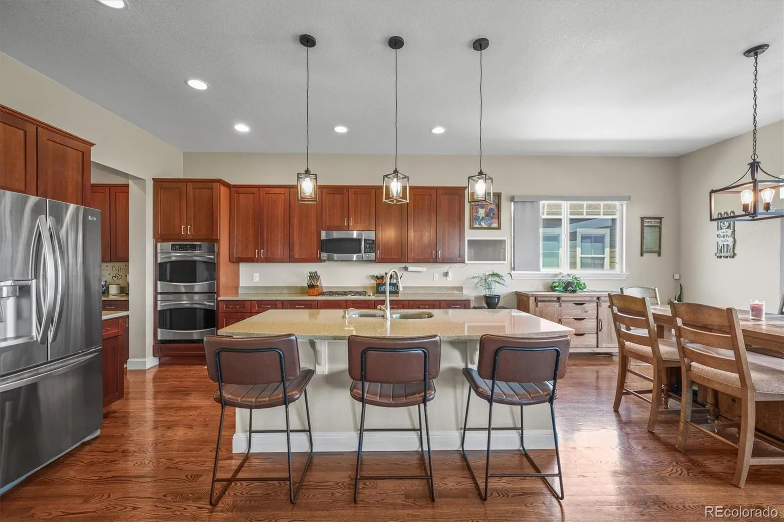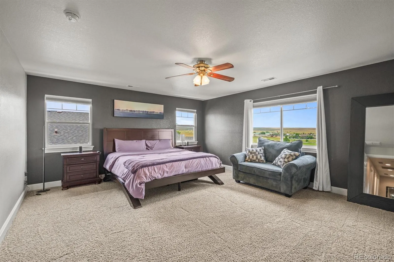 Come and experience a truly amazing property in the desirable Whisper Creek neighborhood of Arvada. This stunning 2 story property has unimpeded & sweeping views of the mountains & the plains providing the opportunity for glorious sunsets and awe inspiring sunrises. Peekaboo views of Standley Lake too! Peace and quiet will arrive as you sit yourself on the back deck to take in the birds and the sounds of silence. This property offers a blend of urban living and country tranquility. Close to shopping, dining and all the other amenities of Arvada and Denver Metro, yet calming and peaceful as you retreat home after a long work day. Thoughtfully designed and beautifully maintained, this 5-bed, 4-bath residence offers space, privacy, comfort and style. Step inside to find an open and flowing floor plan with numerous windows drenching the home in natural light and views. The spacious kitchen opens into the living room and dining area and offers a walk-in pantry, coffee bar, large island with bar-top seating, gas range and a double oven. The living areas flow effortlessly to outdoor spaces, including a main-level deck ideal for enjoying BBQ’s, entertaining or relaxing & melting into your chair as you stare off into the vast landscape. Upstairs, you’ll find 3 generously sized bedrooms, one with an en-suite and a grand primary bedroom with a 5 piece bathroom, boundless views and a roomy walk-in closet with built-ins for organizing. A walk-out basement provides even more options for diverse living situations & the ability to spread out with flex space for a rec room, guest suite, movie/entertainment area, storage or home gym. Enjoy downtime in the backyard with space to garden, play lawn games or just chill. Additional highlights include a tandem 3-car garage, backyard patio and access to all of Whisper Creek’s sought-after amenities—parks, playground and a pool. This is urban living, in the Front Range of Colorado, at its finest—peaceful, panoramic, and perfectly located.