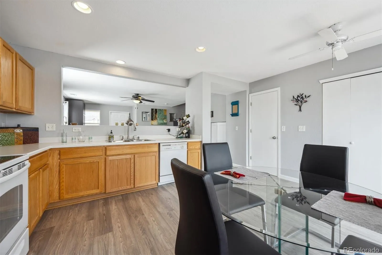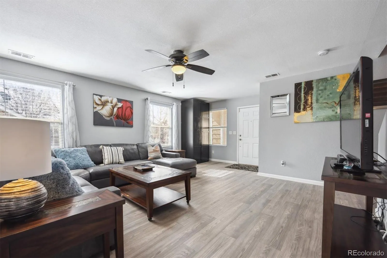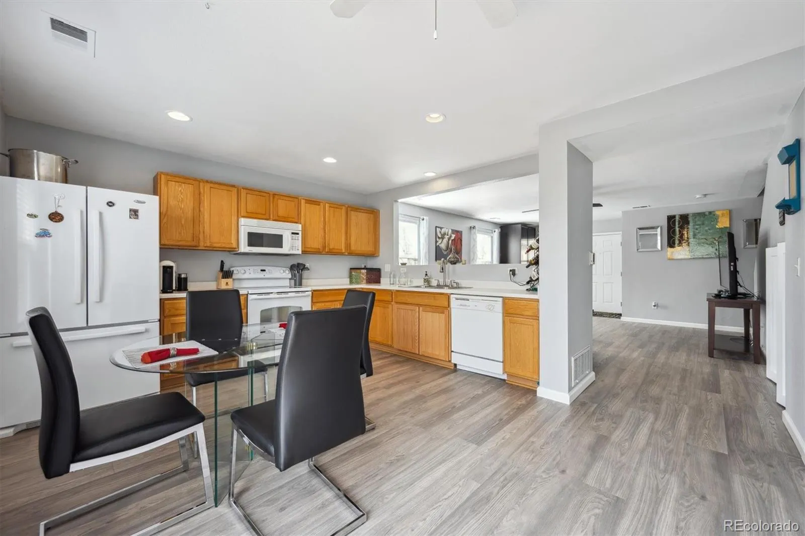 PREFERRED LENDER OFFERING UP TO $6,000 IN LENDER CREDITS. Situated on a large corner lot backing to open space and offering serene views, 7840 Ogden Court is a turnkey, light-and-bright duplex in the centrally located quiet neighborhood High Point Village. Brand-new luxury vinyl plank flooring (2025), abundant natural light, and a neutral palette with new paint complement the open floor plan, featuring over 1,200 sq ft of functional everyday living space. The inviting eat-in kitchen features oak cabinetry, ample counter space, a white appliance package, and a walk-in pantry. Upstairs, the private living quarters include a large primary suite with an ensuite bath, a generously sized secondary bedroom, and a full bath. Step outside to a fenced-in private yard with a paver patio, the perfect spot for summer BBQs or relaxing in the warmer weather, overlooking serene open space views. With easy access to the paved trail system and Rotella Park, outdoor activity and entertainment just outside your door, 7840 Ogden Court is a turnkey residence in an ideal location, including neighborhood schools, public transportation, shopping, dining, and major roadways. This home is ready for its next chapter; all it needs is you!