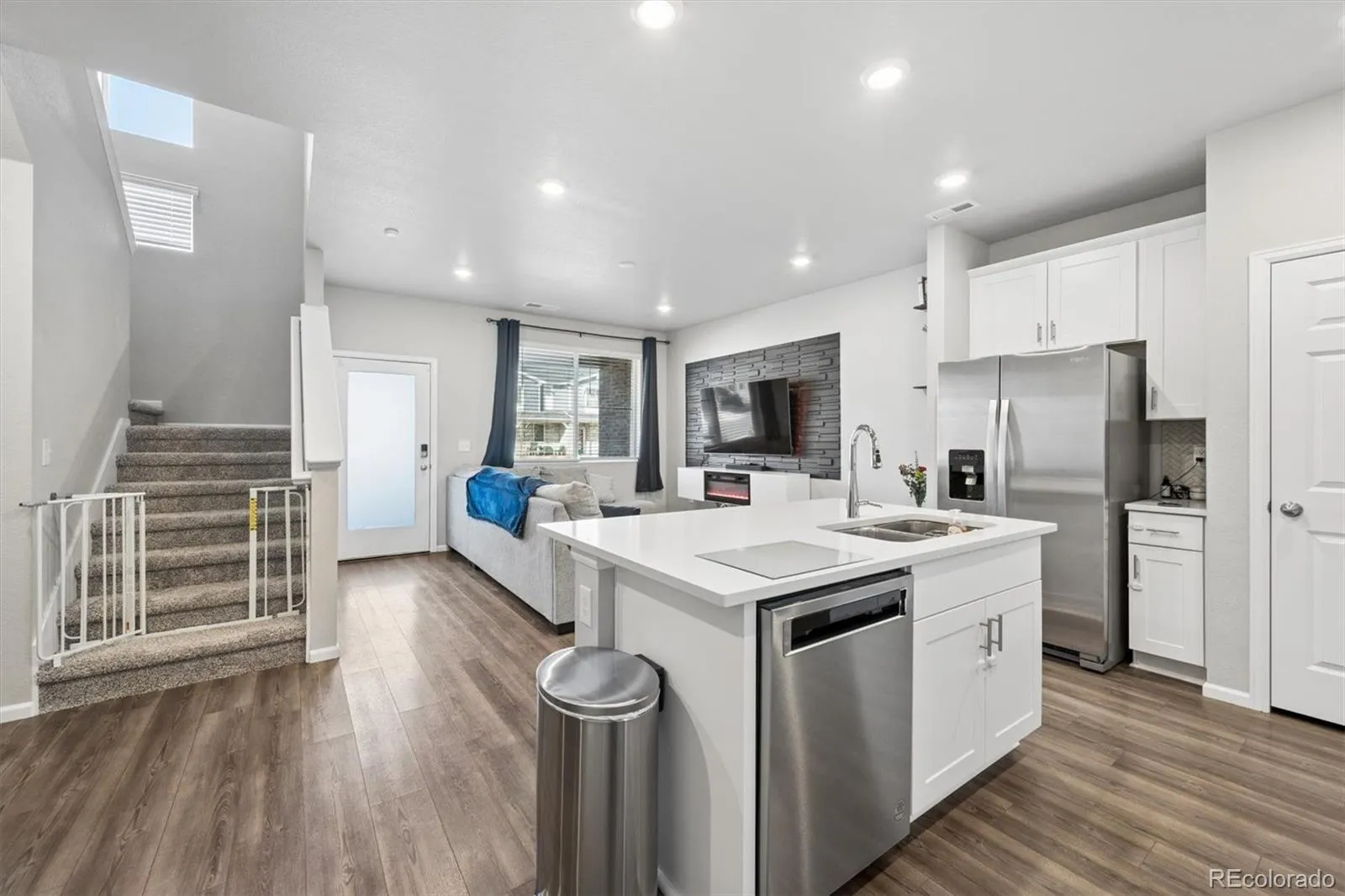 Great Newer 2023 Contemporary open-concept 3 bedroom 3 bath townhome with attached two car garage and covered front porch. This beautiful home is in immaculate condition and well cared for by original owner. The living space downstairs is spacious and perfect for entertaining including a half bathroom for guest use while the upstairs features all bedrooms, two full baths, upper level laundry for convenience and lots of closet storage throughout the home. This 2023 home was built to above average standards and quality by Meritage Homes with their energy-efficient features designed to help you enjoy savings and convenience including two Honeywell smart thermostats as well as a tankless hot water heater. Home includes all the kitchen appliances, washer, dryer, security system panel & video doorbell, wall shelves in LR & Upstairs Office/bedroom, barstools and other furniture items including silver bunk beds, wood book shelf in secondary bedroom, black tile backdrop on LR wall, all TV wall mounts (not TVs), window coverings and rods. Conveniently and centrally located in Northglenn just a short distance from parks, shopping, dining, and entertainment. Extremely easy access to I25 or the nearby light rail for your commute to downtown Denver or if you want to head up North. Home is move in ready and ready to be called HOME! ** LISTING AGENT IS ALSO A LICENSED LENDER IN COLORADO. NMLS 2721776