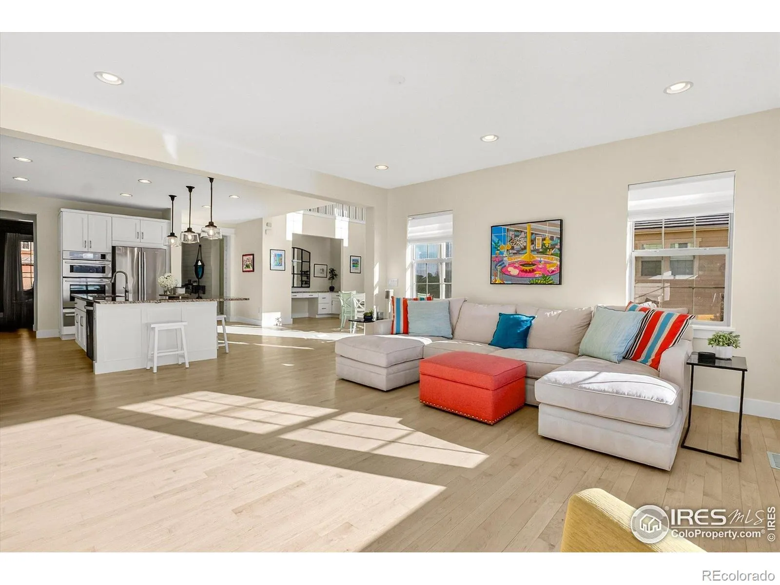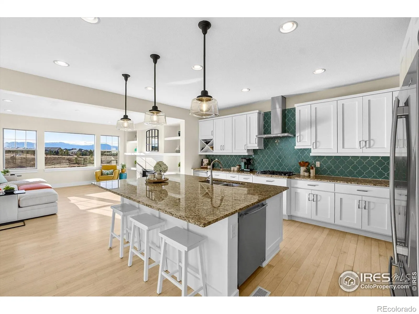Experience unparalleled mountain views and glowing sunsets from this exceptional home in the coveted Anthem community. Set on a premium lot backing to open space, a pond, and scenic trails, it offers a walk-out basement, heated pool and, multiple outdoor living areas so you can take in the scenery from morning to night. This beautifully remodeled home is flooded with natural light and impresses with an open floor plan, soaring ceilings, custom lighting, and thoughtful upgrades. The main level is anchored by a modern kitchen with gorgeous cabinetry, granite countertops, an expansive island, and a nice pantry. The open dining area flows into the living room and out to the large deck, perfectly sized for taking in the views. A butler’s pantry connects the kitchen to a versatile front room, ideal as a second living area, dining room, or office. You will also love a spacious main-floor office with double doors, plus a large mudroom off the garage with a utility sink. Upstairs, the primary suite is a peaceful sanctuary with breathtaking mountain views and a fully remodeled spa-inspired bath featuring a soaking tub, beautiful shower, and dual closets. A spacious loft offers flexible bonus space, and the generously sized laundry room includes a utility sink. Three additional bedrooms complete the upper level, including one with a remodeled ensuite bath, plus a beautifully updated secondary bath. Fresh interior paint and brand-new carpet make the home feel truly move-in ready. The custom finished walk-out basement adds incredible living space, including a fitness room, additional bedroom, and a 3/4 bath. Step outside to the lower patio and into your private backyard with a heated outdoor pool, multiple seating areas, and unforgettable mountain views. Enjoy the Anthem lifestyle with a resort-style community center, pools, fitness center, parks, and miles of trails. Come see this amazing home. See the video here https://iframe.videodelivery.net/ca2069fa988e489e97d608d51ddba768