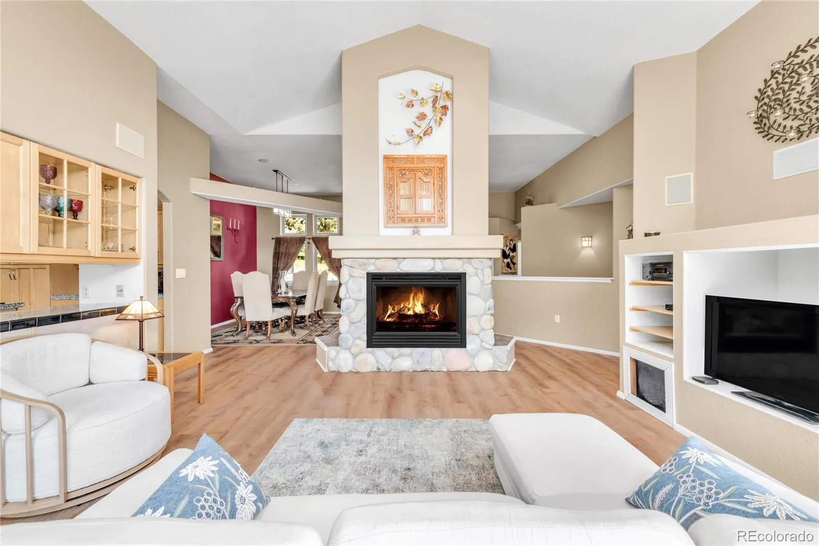 From the moment you arrive, a peaceful water feature greets you, setting the tone for this custom-designed mountain retreat. This stunning 3-bedroom, 2-bath ranch home radiates warmth and elegance, with vaulted ceilings, abundant natural light, and thoughtful architectural details throughout.