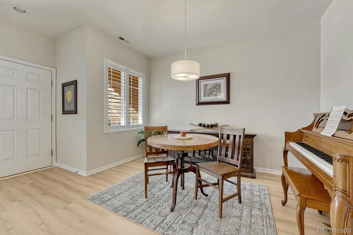 VA ASSUMABLE MORTGAGE with NO GAP. Sunny townhome across from Gold Hill Mesa community center is meticulously maintained and features new hard flooring throughout, rare luxurious double primary bedroom layout, and ample storage space. There is no carpet except in the closets. With mountain views and high ceilings, this one will feel like Home! Enjoy low-maintenance living where the HOA shovels the snow, provides trash and recycling service, insures and upkeeps the exterior, plows the alley, and mows the grass. Just walk across the street for access to the full gym, fitness classes, mail room, event space, shops, and more. Open kitchen features granite counters, stainless steel appliances, undermount sink, pantry, and island with bartop seating and pendant lighting. Beautiful new luxury vinyl plank flooring and upscale shutters add a special touch. Each bedroom has a mountain view, walk-in closet, and private attached bathroom with decorative tile floor, granite counter, and double vanity. Oversized primary suite includes a spacious sitting area. Security system is included for your peace of mind. Central air conditioning will keep you comfortable all summer. Ample storage area available within spacious two car attached garage including built-in cabinets, plus you get two-car parking in the full-sized driveway. This home has the perfect location! Enjoy Gold Hill Mesa’s popular Summer Concert Series across the street. Bear Creek Park is minutes away for dog park, tennis, pickleball, archery, basketball, trails, community garden, and more. Close to Downtown and Old Colorado City, you’ll have quick access to Hwy 24, and I-25. The Broadmoor and Manitou Springs are only a few minutes away. Hike or bike nearby Red Rock Canyon Open Space, Intemann Trail, Garden of the Gods, and The Incline. Very convenient to Fort Carson with a drive time of only 13 minutes to Gate 3, 15 minutes to Gate 1, and 19 minutes to Gate 6.