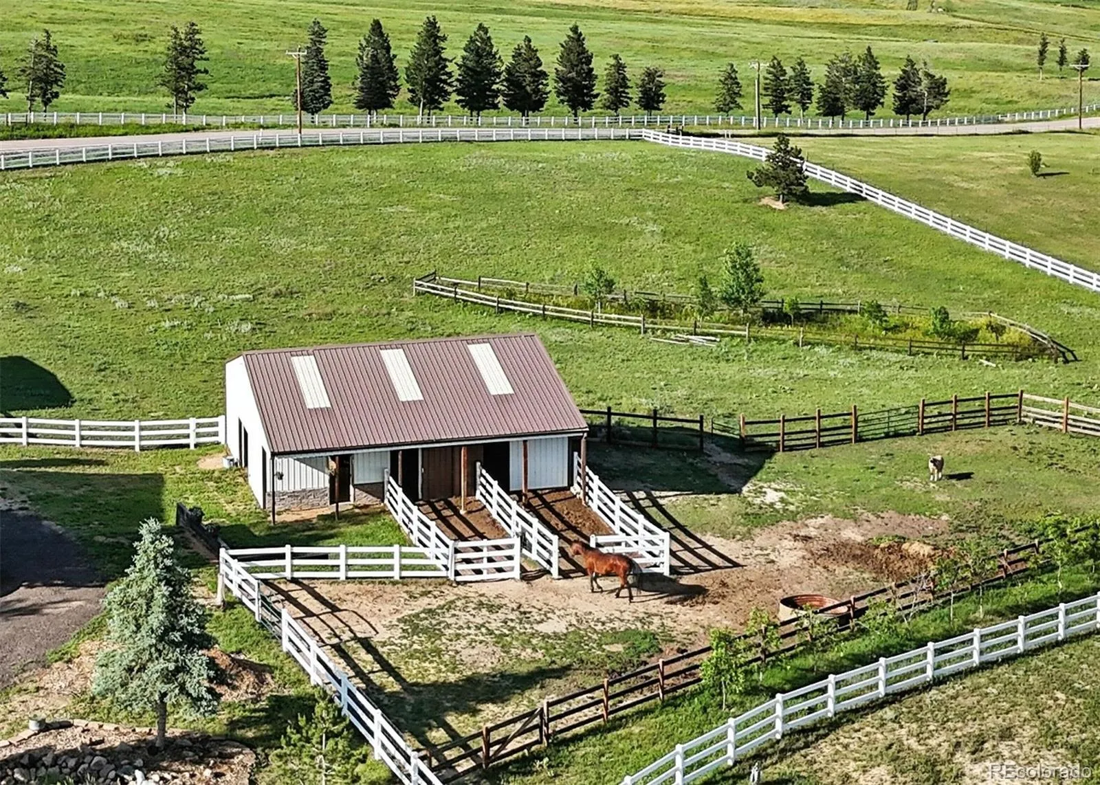 This stunning Black Forest property goes above and beyond—checking every box, including a few you didn’t even know you had! Nestled on 5.15 serene acres on a quiet cul-de-sac, this is a hobby farmer’s paradise. The expansive 30×40 barn is fully equipped with two Priefert horse stalls, water and electric, a tack room, workshop, horse paddocks, and fenced pastures. Don’t miss the RV 30-amp plug on the exterior of the barn with easy access to water hookups. Two additional animal enclosures are ideal for dogs, goats, or other animals, and the property also includes a chicken coop, greenhouse, garden, and two storage sheds—everything a dedicated homesteader could ask for. The beautifully updated ranch-style home features a bright and spacious main level with a cozy gas fireplace in the living room, a formal dining area, and a convenient main-level laundry. The kitchen is a chef’s delight, boasting hickory cabinets, new quartz countertops, stainless steel appliances, and a breakfast nook with walkout access to a large deck. The main-level primary suite offers a peaceful retreat with a luxurious 5-piece ensuite bath and walk-in closet. Two additional bedrooms and a newly updated full bath complete the main level. Downstairs, the walk-out basement impresses with 10’ ceilings, a large family room with a wet bar, two generously sized bedrooms, a full bath, ample storage, library, and a versatile bonus room—ideal for a home theater, gym, or hobby space. The home’s low-maintenance stucco exterior and durable metal roof add to its appeal and longevity. If you’re ready to escape the hustle of the city and embrace the tranquility of country life, this exceptional property is a must-see!