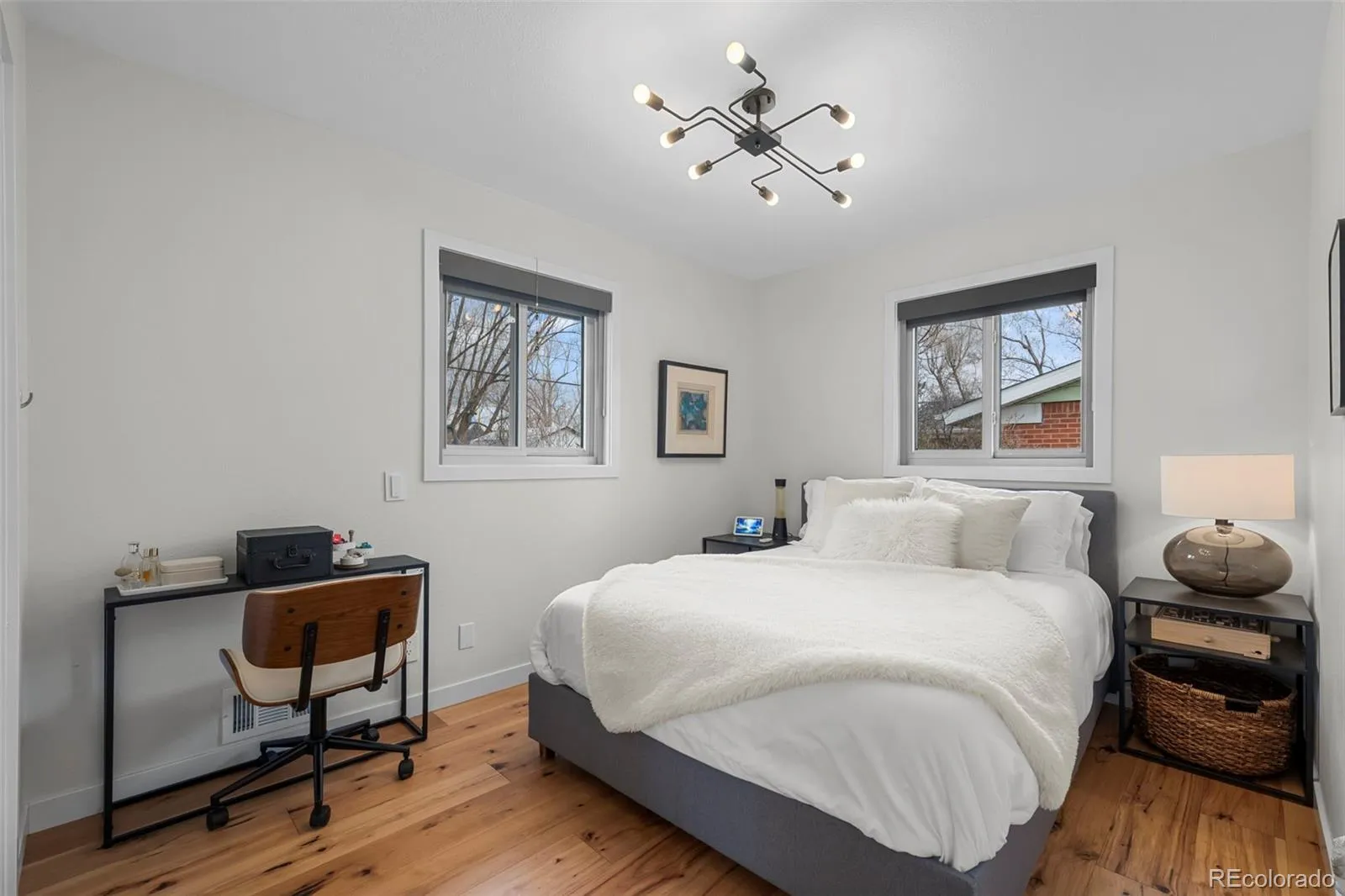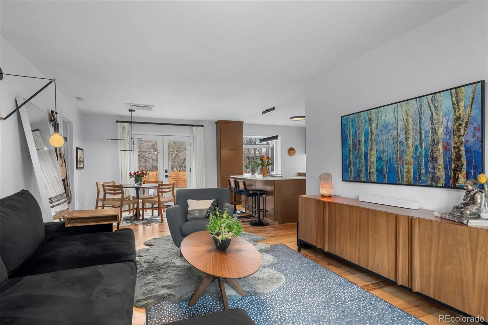 Love Where You Live in this beautifully updated mid-century modern, ranch-style home, offering exceptional value in Boulder. With striking modern curb appeal featuring a sleek black brick exterior and new front and garage doors, this home makes a memorable first impression. Perfectly situated on one of the neighborhood’s premier lots, the property backs to Martin Park and the Bear Creek Path, showcasing stunning west-facing Flatiron views and just a short walk to top-rated Creekside Elementary. Inside, the extensively renovated main-level shines with new hickory wood flooring & a thoughtfully redesigned chef’s kitchen complete with rich walnut-toned soft-close cabinetry, quartz countertops, center island with seating, and high-end appliances including a Bosch induction cooktop and Samsung Smart Refrigerator. The inviting living room features a stylish electric fireplace and custom designer lighting thru-out. Three well-sized bedrooms on the main-level, along with an expanded and beautifully updated full bath offering a double-sink vanity & additional storage. Step outside to a fully fenced backyard retreat with a spacious flagstone patio – perfect for relaxing or entertaining while enjoying the views. The fully finished basement adds valuable living space, including a family room, flexible exercise/bonus room, powder bath, 4th bedroom, a spacious work from home space/5th bedroom, and updated bath with double sinks and walk-in shower. Additional updates include a newer roof and windows. Unbeatable location within walking distance to Martin Park, Creekside Elementary, Under the Sun, Southern Sun Brewery, Whole Foods, King Soopers, Sweet Cow, and more. Easy access to Pearl Street, CU Boulder, and a convenient commute to Denver. Don’t miss this opportunity to enjoy the very best of Boulder living!