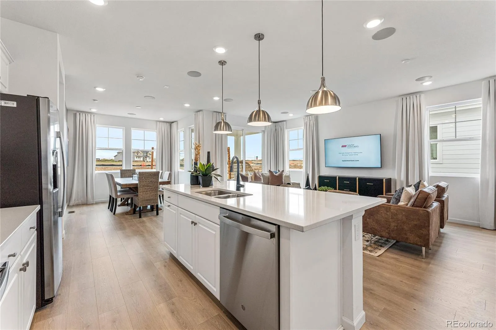 What’s Special: Close to Park | Large Kitchen Island | Main Floor Bedroom | Close to Amenities | West Facing Lot. New Construction – May Completion! Built by America’s Most Trusted Home Builder. Welcome to the Rocky Mountain at 3328 N Duquesne Way in Aurora Highlands! Experience easy, single-level living in the Rocky Mountain home design. A spacious foyer leads into an open kitchen, great room and dining area—perfect for everyday living and hosting guests. Toward the front of the home, you’ll find a convenient laundry room plus an additional bedroom and full bath. When it’s time to unwind, the secluded primary suite offers a peaceful retreat with a 4-piece bath and a large walk-in closet. Come home to The Aurora Highlands, a vibrant community in Aurora, CO. Enjoy scenic trails, parks, an outdoor pool, and an on-site school, with future retail and dining on the way. With its own E-470 entrance, you’re just 10 miles from DIA and close to downtown Denver and the Tech Center. Explore 21 miles of trails or relax in your private backyard—life here is full of connection. Additional highlights include: 42-inch cabinets, extended luxury vinyl plank flooring and upgraded lighting package. Photos are for representative purposes only. MLS#8776755