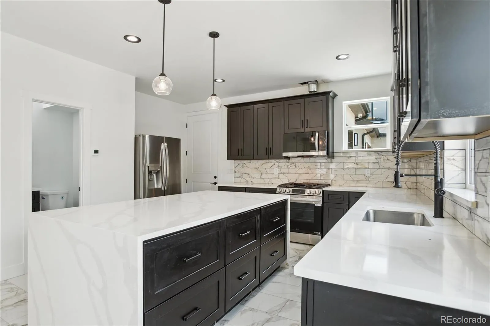 Brand New Construction at 3226 W Dakota Ave in Denver. This thoughtfully designed 3 bedroom 4 bathroom home blends modern style with everyday functionality in a prime central location. The main level offers an open layout filled with natural light, featuring a spacious living area and a sleek kitchen complete with a large island, perfect for entertaining and daily living. The main floor primary suite provides comfort and privacy with a walk in closet and a well appointed en suite bath featuring dual sinks. Upstairs, you will find two additional bedrooms, each with its own private en suite bathroom, creating ideal separation of space for guests or family. A conveniently located upper level laundry area adds ease and efficiency. An attached one car garage and shared driveway offer practical parking and storage solutions while supporting a low maintenance lifestyle. Ideally situated just minutes from downtown Denver, this home provides quick access to popular dining, shopping, parks, schools, and entertainment, along with convenient routes for commuting or heading to the mountains.Take advantage of this opportunity to own a newly built home in a highly accessible Denver location.