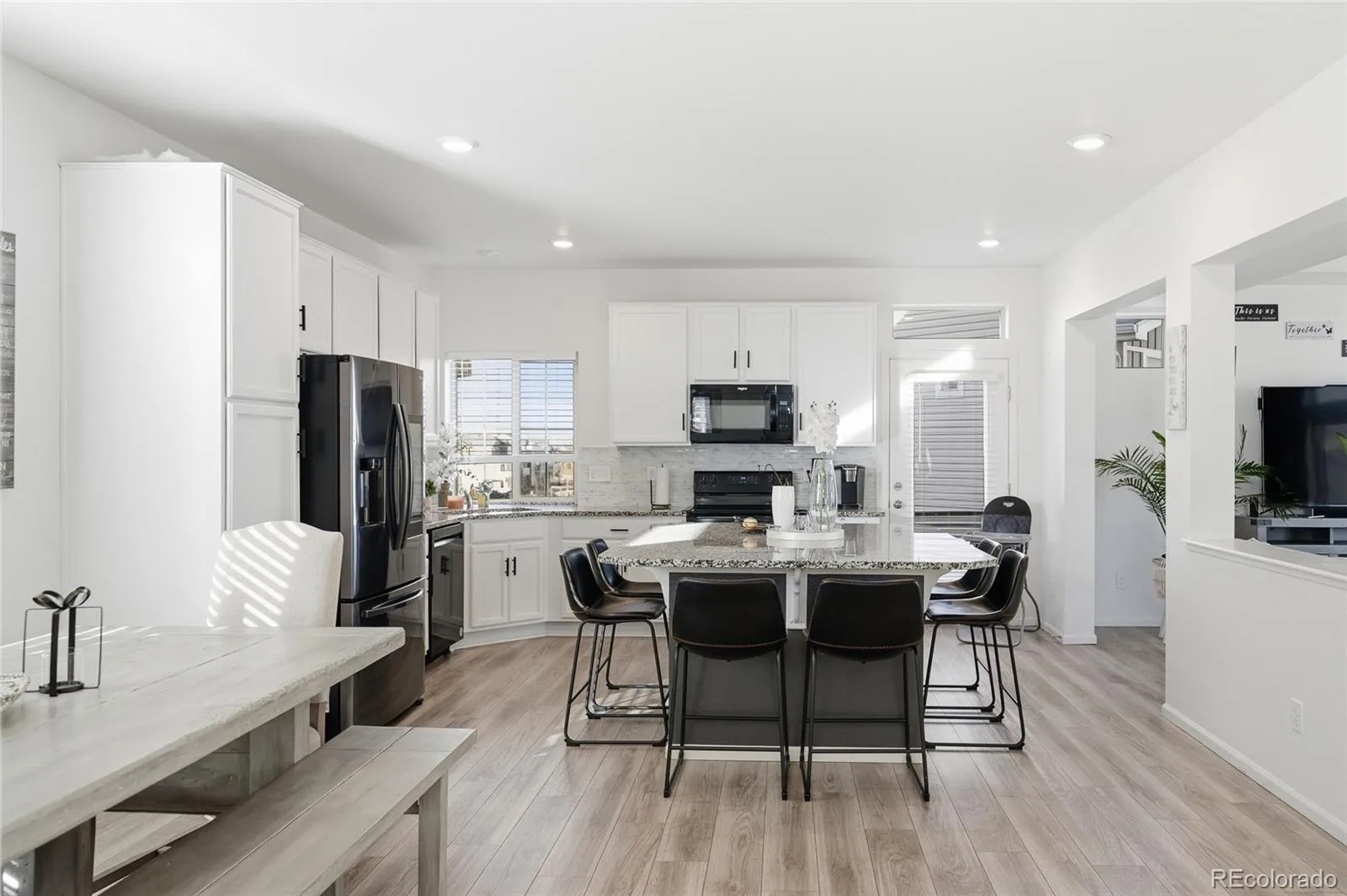 Featuring 3 bedrooms, 3 full bathrooms, and a half bath, this home showcases a bright open-concept layout designed for both everyday living and entertaining. The heart of the home is the stunning kitchen, complete with sleek modern finishes, ample cabinetry, stainless steel appliances, and a spacious island that flows seamlessly into the dining and living areas.