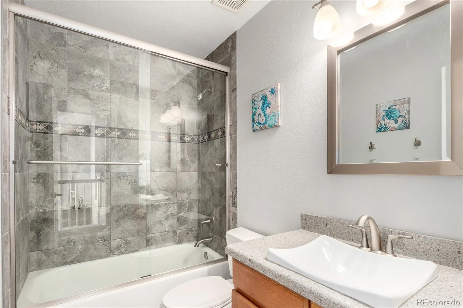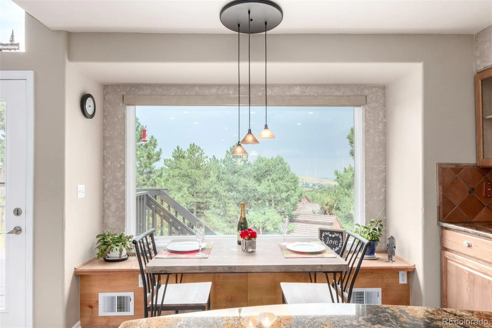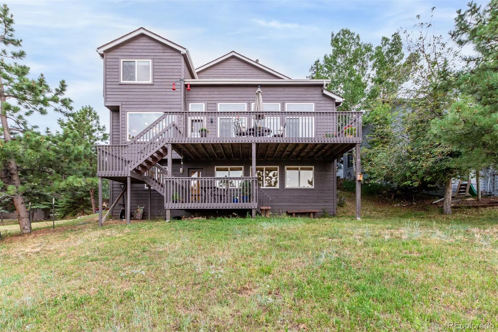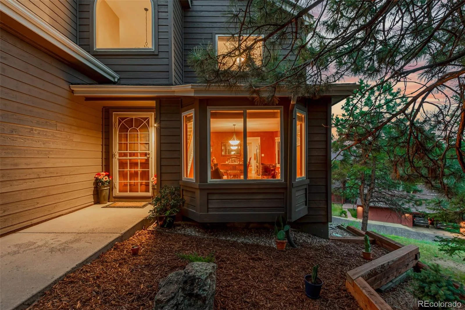 Experience the pinnacle of Colorado living in this exquisitely remodeled home, perfectly blending mountain tranquility with refined modern comfort. Nestled in the sought-after Genesee community, this residence welcomes you with mature trees, a 2-car garage, and panoramic views that stretch from the Denver skyline to the Rocky Mountains. Inside, discover tall ceilings, rich wood-look flooring, and expansive windows that flood every room with natural light. The inviting living/dining room has custom warm paint and has mountain views. The spacious family room features a soaring ceiling and an elegant fireplace. The kitchen boasts granite countertops, stainless steel appliances, recessed lighting, tile backsplash, a central island, and a two-tier peninsula with a breakfast bar. A versatile den offers the perfect space for a home office or quiet study. The primary suite has a cozy sitting nook, plush carpeting, an immaculate ensuite bathroom with dual sinks, a jetted tub, and a walk-in closet. The expansive basement is designed for relaxation and entertainment, featuring a large family area with a fireplace, additional bedrooms, and ample storage. Enjoy a seamless indoor-outdoor lifestyle with a balcony and deck overlooking the lush nature. Smart sustainability meets timeless elegance with a paid-off solar system. Residents enjoy exclusive HOA amenities including a clubhouse, pool, fitness center, neighborhood trails, and a picturesque pond with a gazebo. Located just minutes from dining, shopping, and both downtown Denver and ski areas, this home embodies a lifestyle where nature’s grandeur meets everyday sophistication.