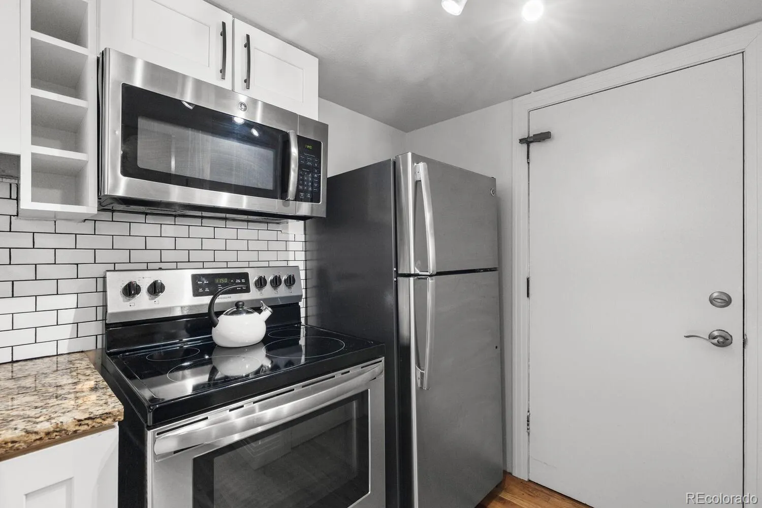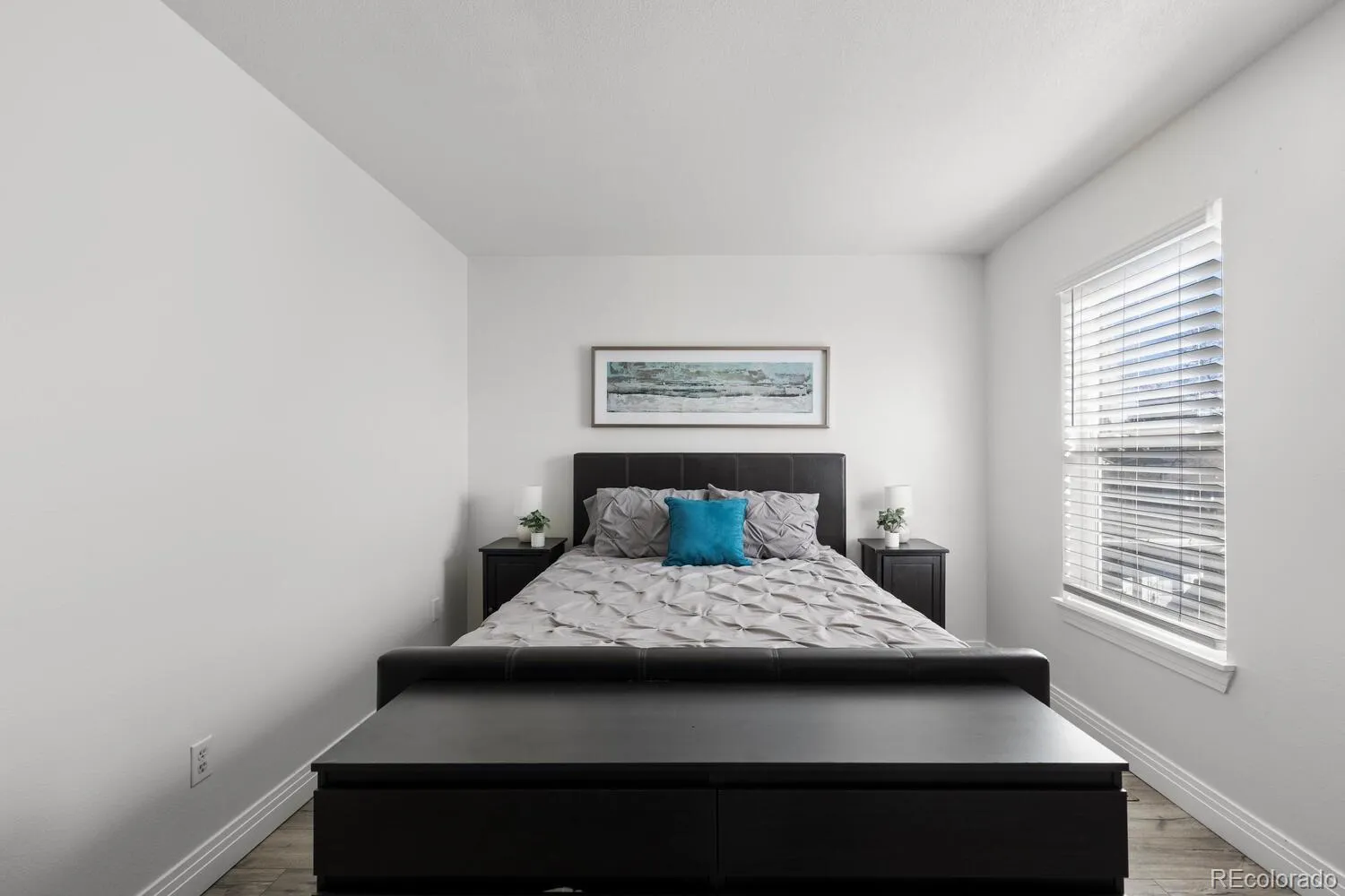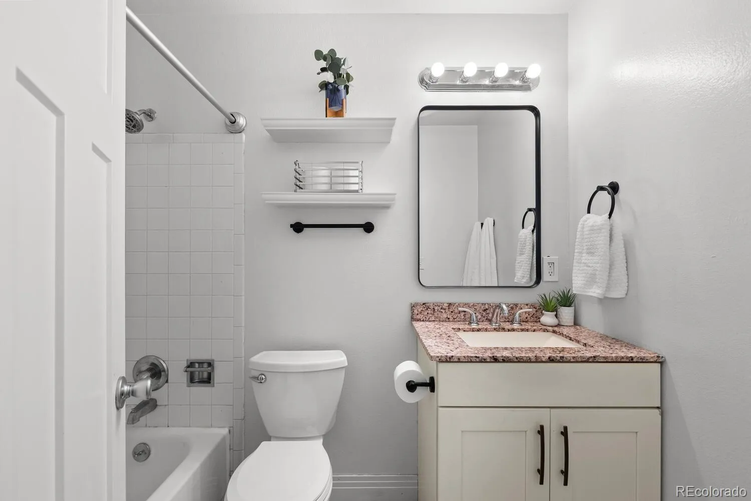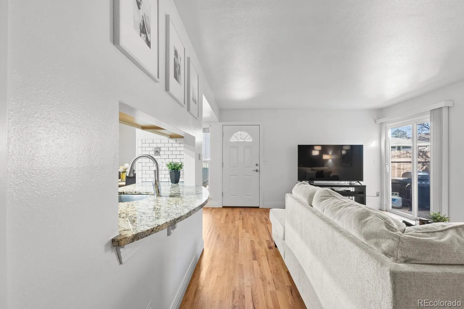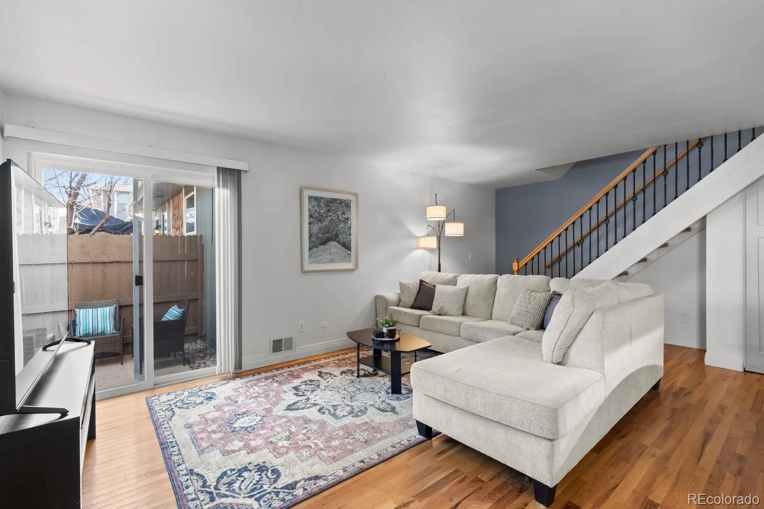 Beautifully updated two-story, 2-bedroom, 2-bath townhome in the lovely Raintree East Aurora community w/ a pool, tennis courts, clubhouse, and ample resident & guest parking. The main level features rich hardwood flooring, a spacious living room, & formal dining area—perfect for everyday living or entertaining. The updated kitchen opens seamlessly to the living space & includes granite countertops, eat-in bar, soft-close shaker-style cabinetry, classic subway tile backsplash, stainless steel refrigerator, electric range/oven, microwave, single-basin stainless steel sink w/ a new gooseneck faucet, garbage disposal, & a convenient pantry. Direct access to the shared enclosed garage with one dedicated parking space, provides extra storage and everyday convenience. Step outside to your private, fenced patio—an ideal spot for grilling, relaxing, or enjoying Colorado’s sunshine. The main floor also includes a 1/2 bath with a pedestal sink, in-unit laundry, a convenient coat closet, updated baseboards and trim, and a programmable thermostat. Upstairs, you’ll find two generously sized bedrooms, including a primary bedroom with a large walk-in closet and view of the courtyard area. The full bathroom has been refreshed w/ new paint, new flooring & baseboards, granite countertop with undermount sink, open shelving, modern black fixtures, a tub/shower combination, and an exhaust fan. A surprisingly large linen closet on the upstairs landing adds even more storage. Conveniently located within the highly regarded Cherry Creek School District and just minutes to shopping, dining, parks, and commuter routes, this home offers an unmatched living experience at an exceptional price point, making it an ideal choice for first-time buyers, downsizers, or investors. With stylish updates throughout, a smart layout, and access to fantastic community amenities, this condo is a wonderful opportunity to enjoy low-maintenance living in a desirable Aurora location.