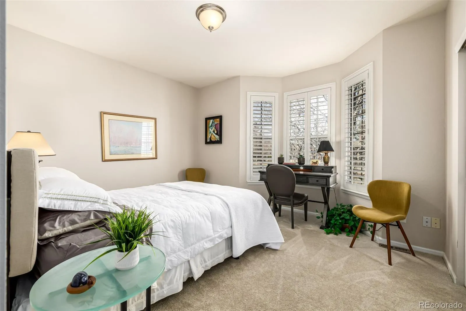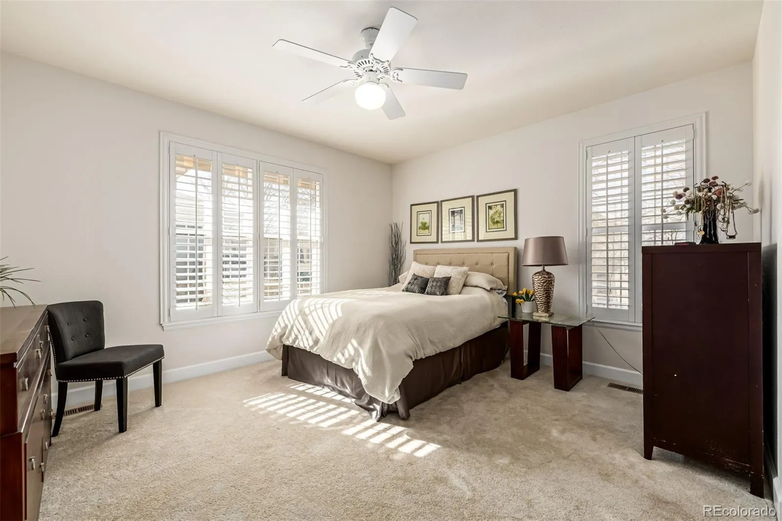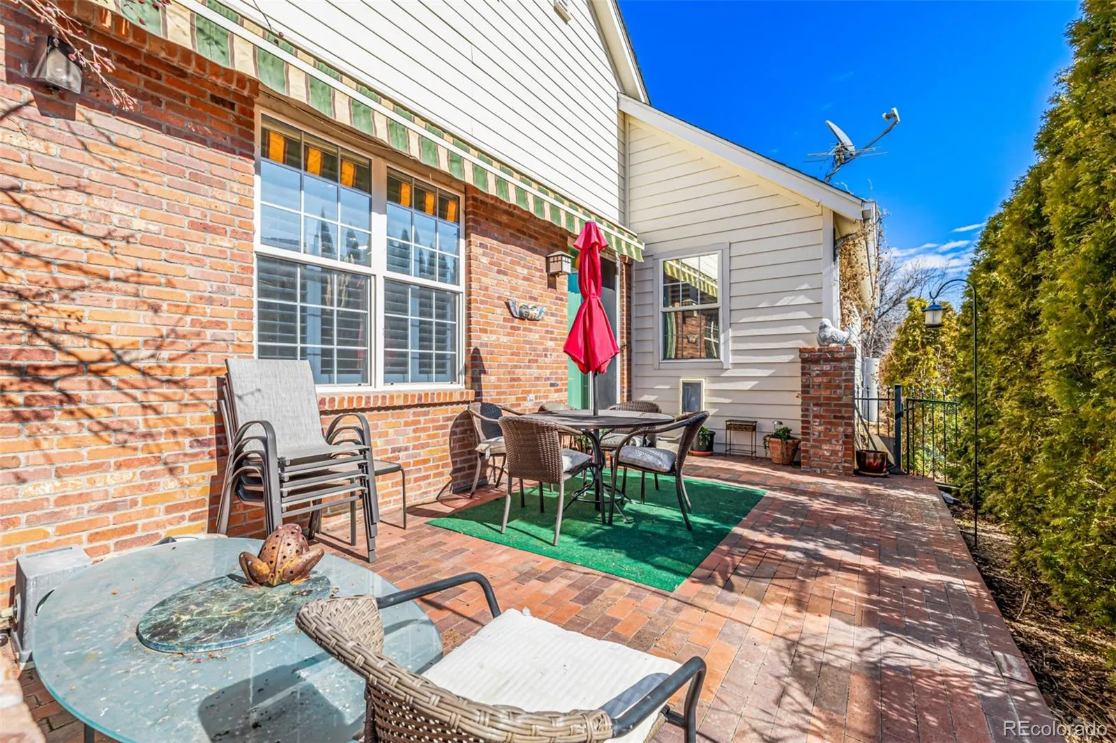 Looking for a home with a main floor primary suite, with plenty of space to host, and close to all that Denver has to offer? This is the home for you! Perfectly situated on a corner lot, this beautifully maintained home offers the perfect balance of style, comfort, and thoughtful updates. With fresh interior paint and new carpet (2024), this home is move-in ready and shines with modern appeal. The open-concept layout is filled with natural light, and the wood floors add warmth and sophistication throughout the main level. The kitchen features custom designer soft-close cabinets with pull-out organizers, quartz countertops, a designer backsplash, a breakfast peninsula, and high-end appliances: a Samsung 4-door refrigerator with a beverage drawer and a Kenmore Elite induction stove. The main floor primary suite offers a peaceful retreat with wood shutters for added privacy, a walk-in closet, and a 5-piece bathroom. The main level has 3 bedrooms. One can be used as a bedroom or an office. In the finished basement, you’ll find a bedroom, a ¾ bath, a large living area, a bonus room, and an unfinished storage or workshop space. Enjoy warm Colorado days on your brick patio beneath a switch-activated retractable awning, surrounded by a fully fenced yard. Sprinklers in the front and side yards make maintenance a breeze. The home includes a 1-car garage with exterior access plus a 2-car garage with direct entry into the home, offering convenience, storage, and security. Additional updates include two Bradford Hicks water heaters (2024), a Samsung top-load washer, a Maytag dryer, quality interior wood shutters, and maintenance items such as roof repairs, a raised garage floor, and a reconditioned electrical panel for peace of mind. Walkable to Lowry’s town center, best parks, trails, dining, shopping, and top-rated schools, this is your opportunity to own a thoughtfully updated home in one of Denver’s most sought-after communities.