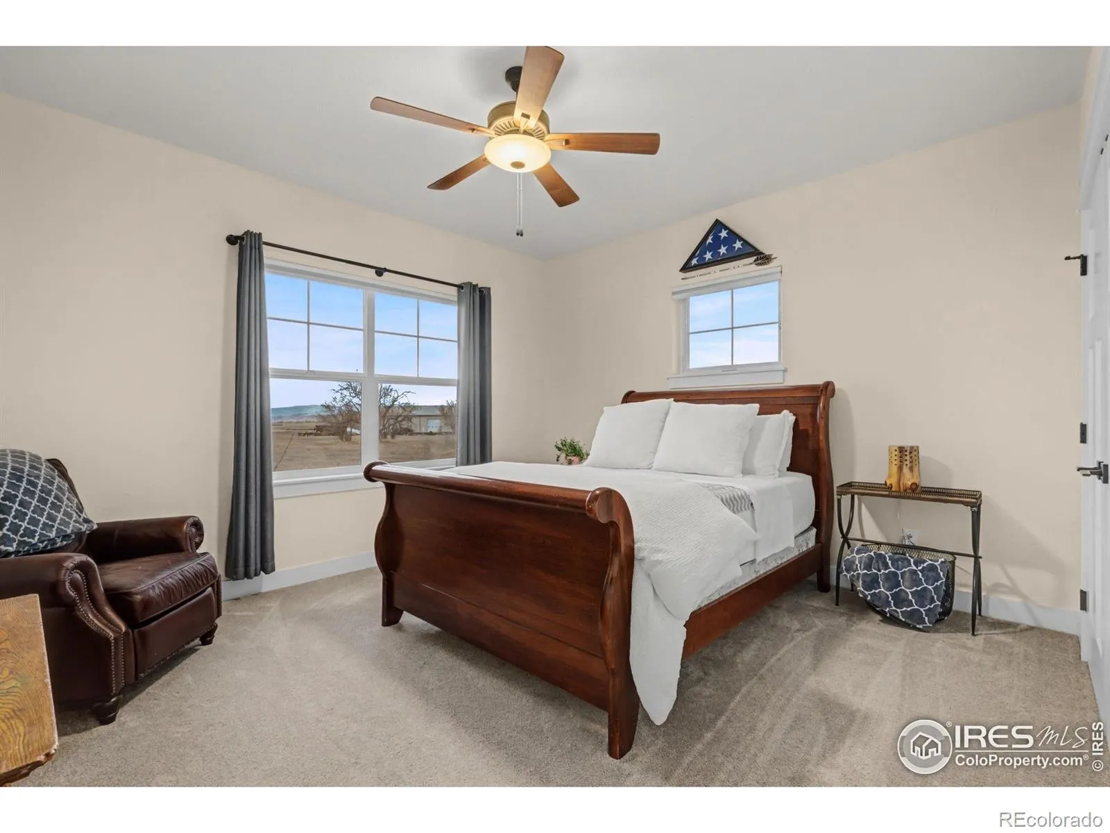Welcome to 939 W County Road 74 in Wellington – a semi-custom home situated on 3.36 acres with expansive mountain views and a peaceful rural setting, conveniently located approximately 15 minutes from Wellington and about 20 minutes from downtown Fort Collins. The covered front porch provides a welcoming entrance into a home filled with natural light and thoughtful design. The main level features a wide-open floor plan with soaring ceilings throughout the kitchen, dining area, and family room, creating a bright and spacious atmosphere. The kitchen is well-appointed with a large island, stainless steel appliances, and a gas range, offering generous space for meal preparation and gathering. The dining area flows seamlessly from the kitchen, and the family room centers around a beautiful wood burning fireplace. A barn door off the kitchen leads to a combined mudroom and laundry room, which also offers a separate entrance from the covered front porch for added convenience. The primary bedroom is located on the main level and includes sliding glass doors that open to the covered back patio. The en-suite bathroom features a soaking tub, a large walk-in shower with built-in seating, and a spacious walk-in closet. Two additional bedrooms and a full bathroom complete the main floor. Upstairs, two additional bedrooms are connected by a Jack-and-Jill bathroom, providing flexible living arrangements. The backyard includes a large patio, partially covered, with an amazing built-in kitchen and gas fire pit. The outdoor spaces are positioned to take advantage of the surrounding mountain views and open landscape. An oversized three-car garage offers ample room for vehicles and storage. This home combines modern features, open space, and convenient access to nearby amenities in a desirable Northern Colorado location.