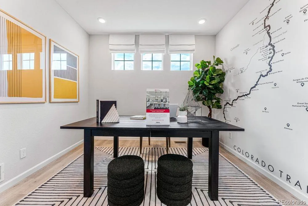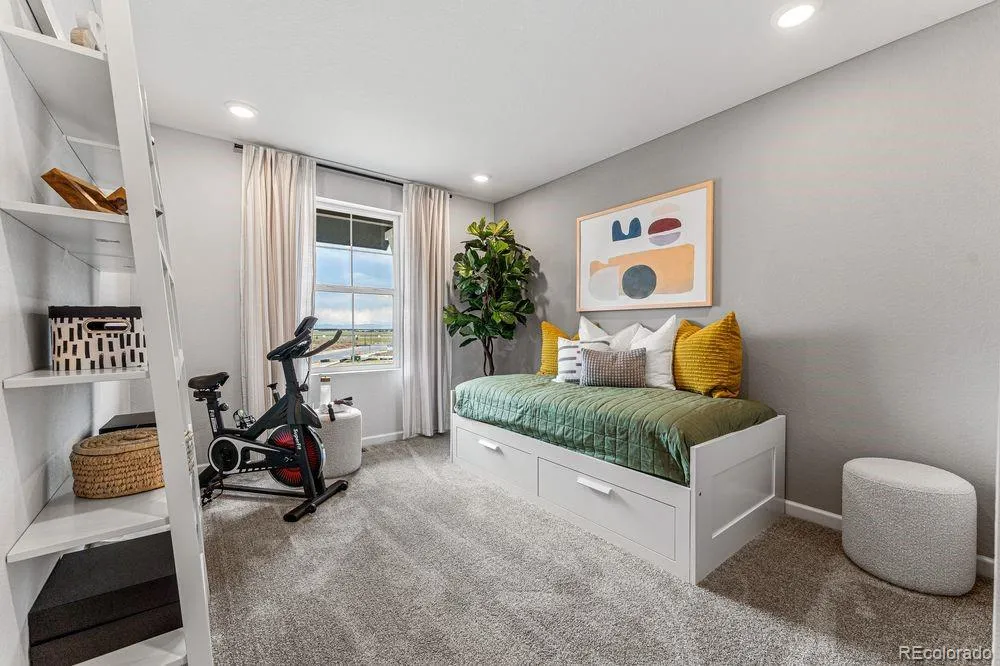 What’s Special: Corner Lot | Larger Lot | Flex Room | Finished Basement. New Construction – April Completion! Built by America’s Most Trusted Home Builder. Welcome to the Stella at 3285 N Coolidge Way in Aurora Highlands! The Stella welcomes you with a grand two-story foyer filled with natural light and a private study just off the entrance. Upstairs, you’ll find three secondary bedrooms, a full bathroom and a convenient laundry room. At the end of the hall, the primary suite offers a peaceful, private retreat after a long day. Need even more room? The finished basement adds an additional bedroom and bathroom for extra comfort and flexibility. Come home to The Aurora Highlands, a vibrant community in Aurora, CO. Enjoy scenic trails, parks, an outdoor pool, and an onsite school, with future retail and dining on the way. With its own E-470 entrance, you’re just 10 miles from DIA and close to downtown Denver and the Tech Center. Explore 21 miles of trails or relax in your private backyard—life here is full of connection. Additional Highlights Include: 42-inch upper cabinets, built-in kitchen trash bin, extended flooring on main level and finished basement with private bedroom and bath. Photos are for representative purposes only. MLS#9037625