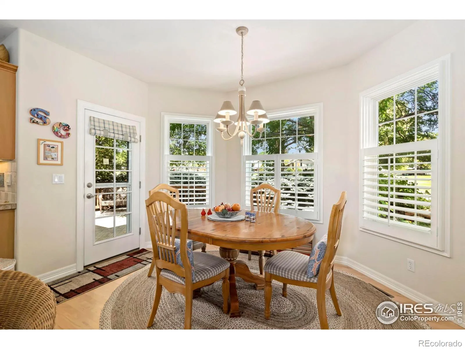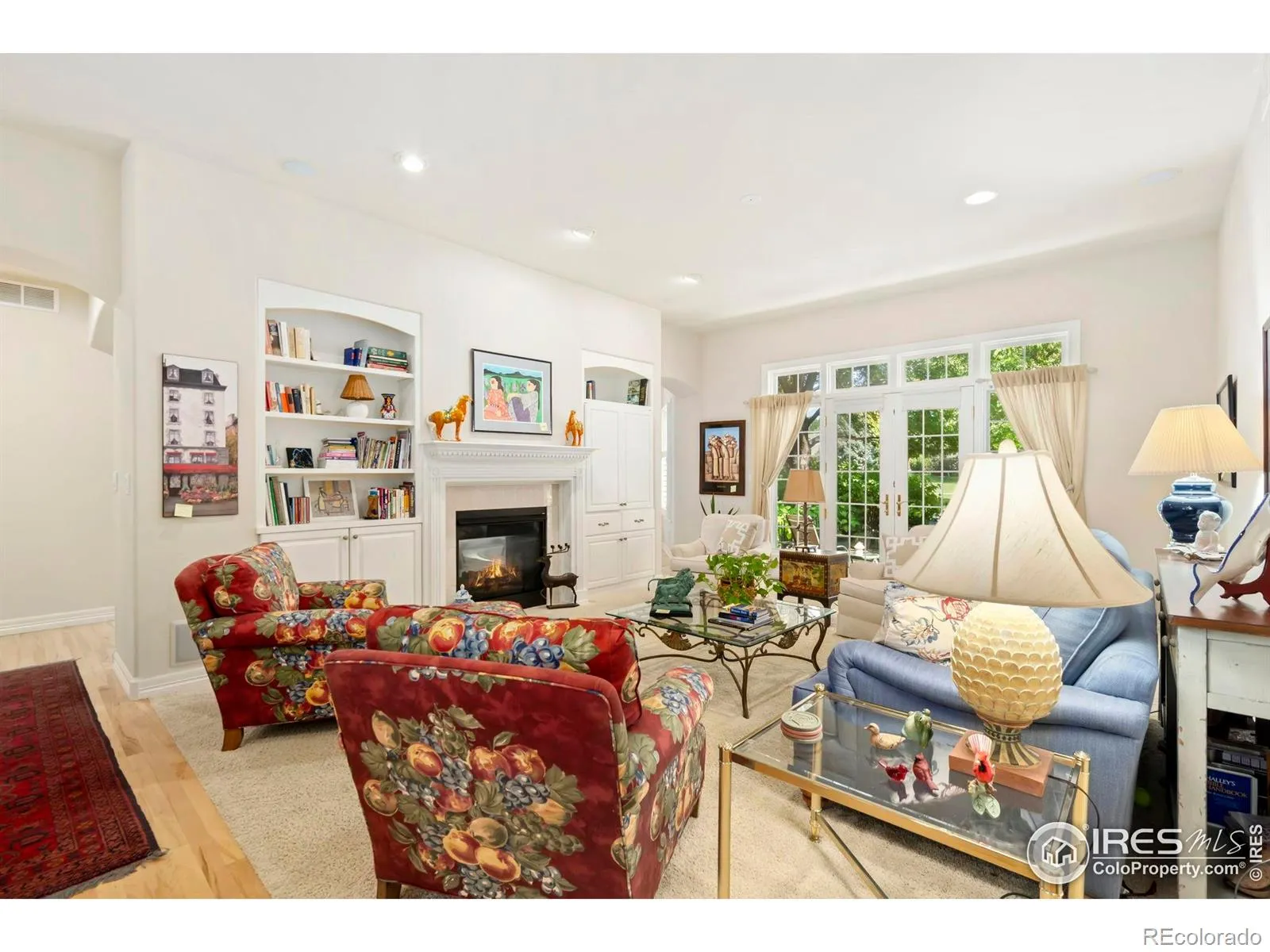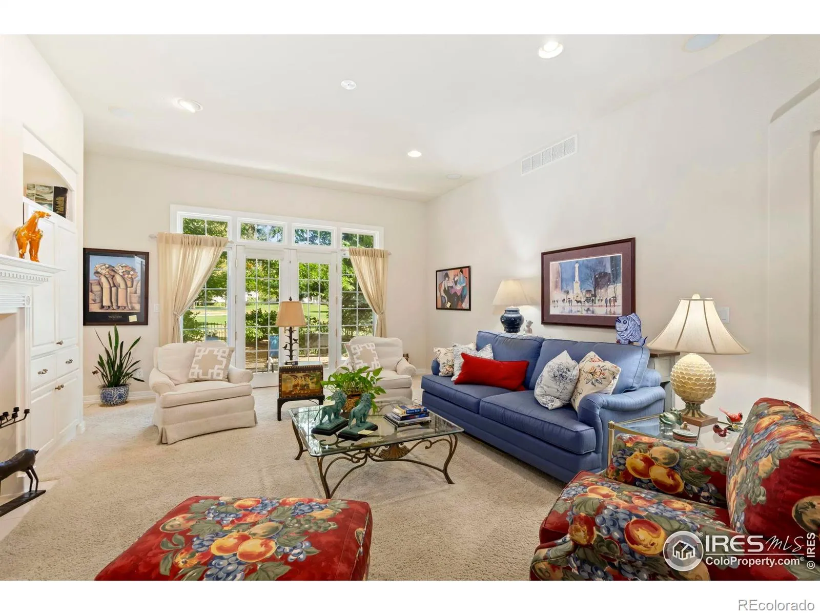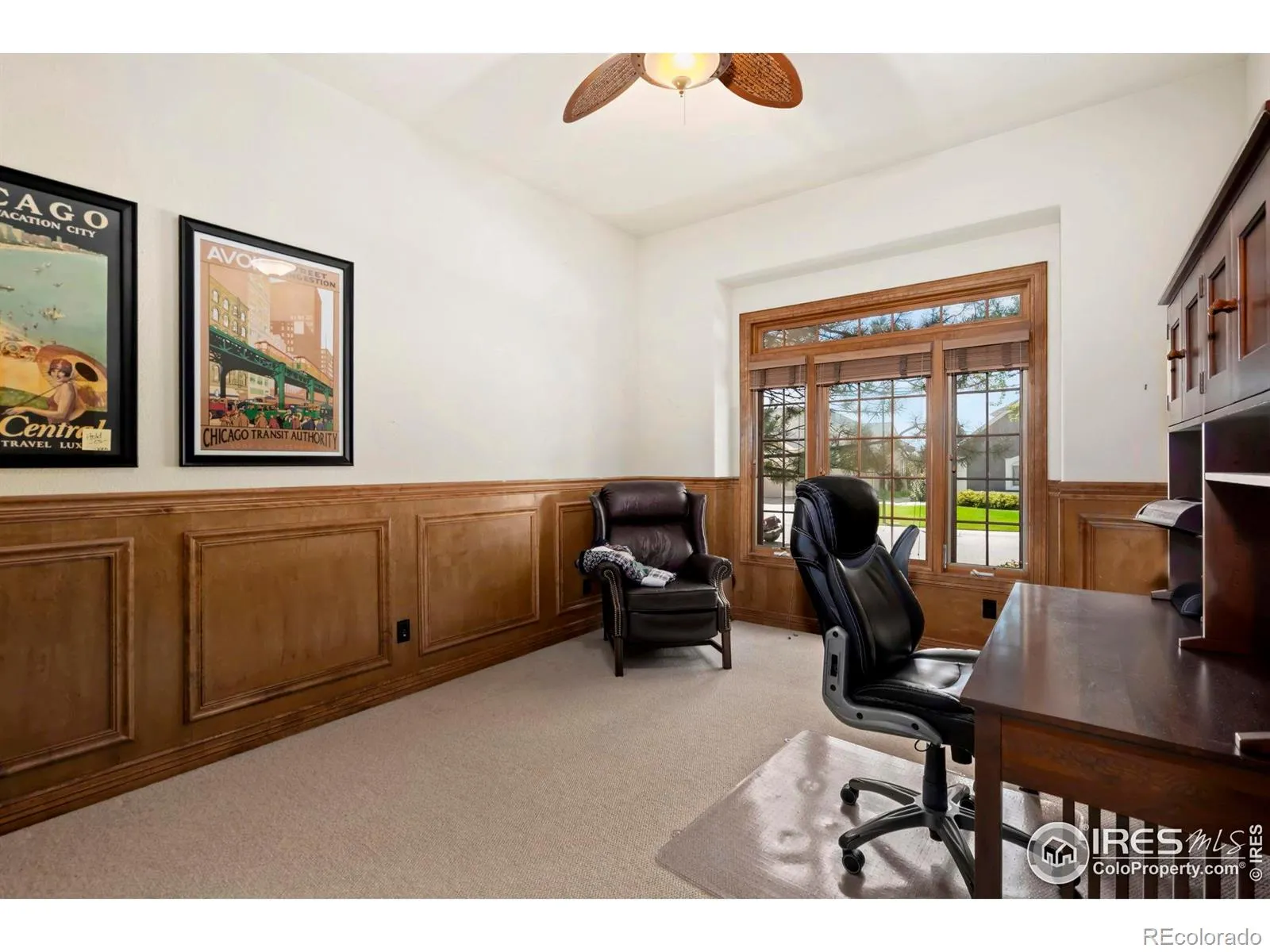 Situated on the 8th fairway of Southridge Golf Course, this custom home sits in a quiet cul-de-sac with beautiful finishes throughout. The main level features a spacious primary suite, private office, and a library-style great room with walkout patio. The kitchen offers a large island and hearth-side seating with a see-through fireplace. Plantation shutters add elegance. Enjoy Southridge Greens living near trails and top Fort Collins amenities. Meticulously maintained and move-in ready.