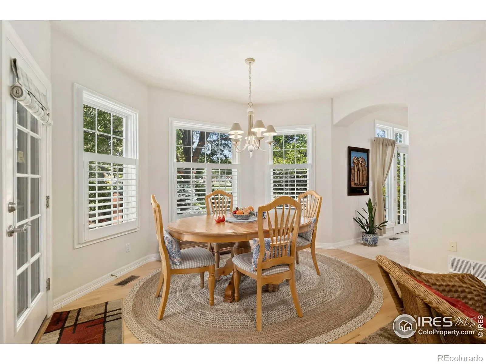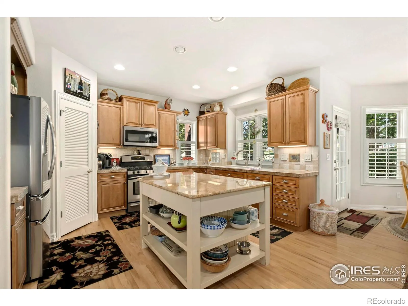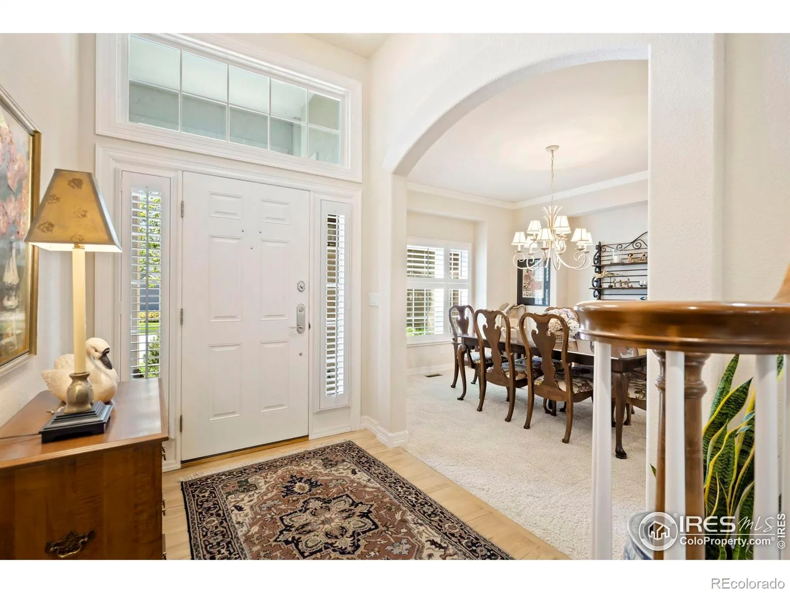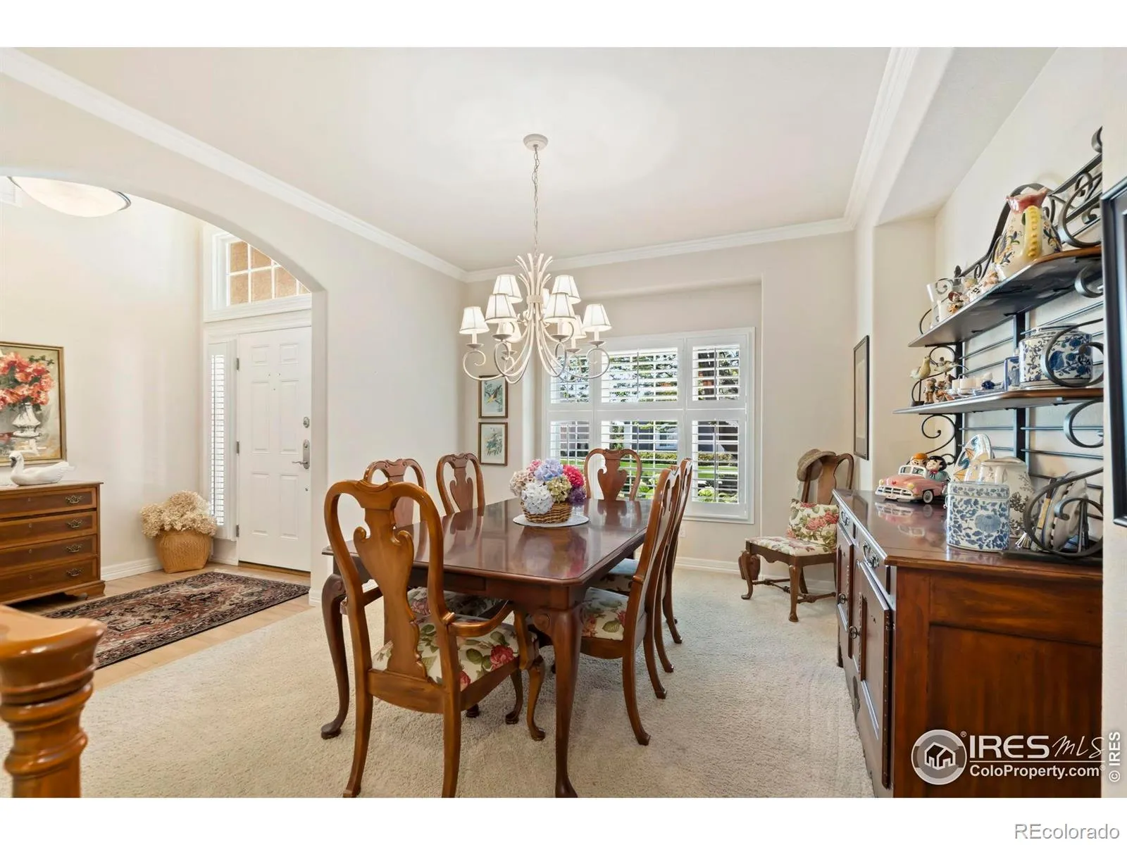 Situated on the 8th fairway of Southridge Golf Course, this custom home sits in a quiet cul-de-sac with beautiful finishes throughout. The main level features a spacious primary suite, private office, and a library-style great room with walkout patio. The kitchen offers a large island and hearth-side seating with a see-through fireplace. Plantation shutters add elegance. Enjoy Southridge Greens living near trails and top Fort Collins amenities. Meticulously maintained and move-in ready.