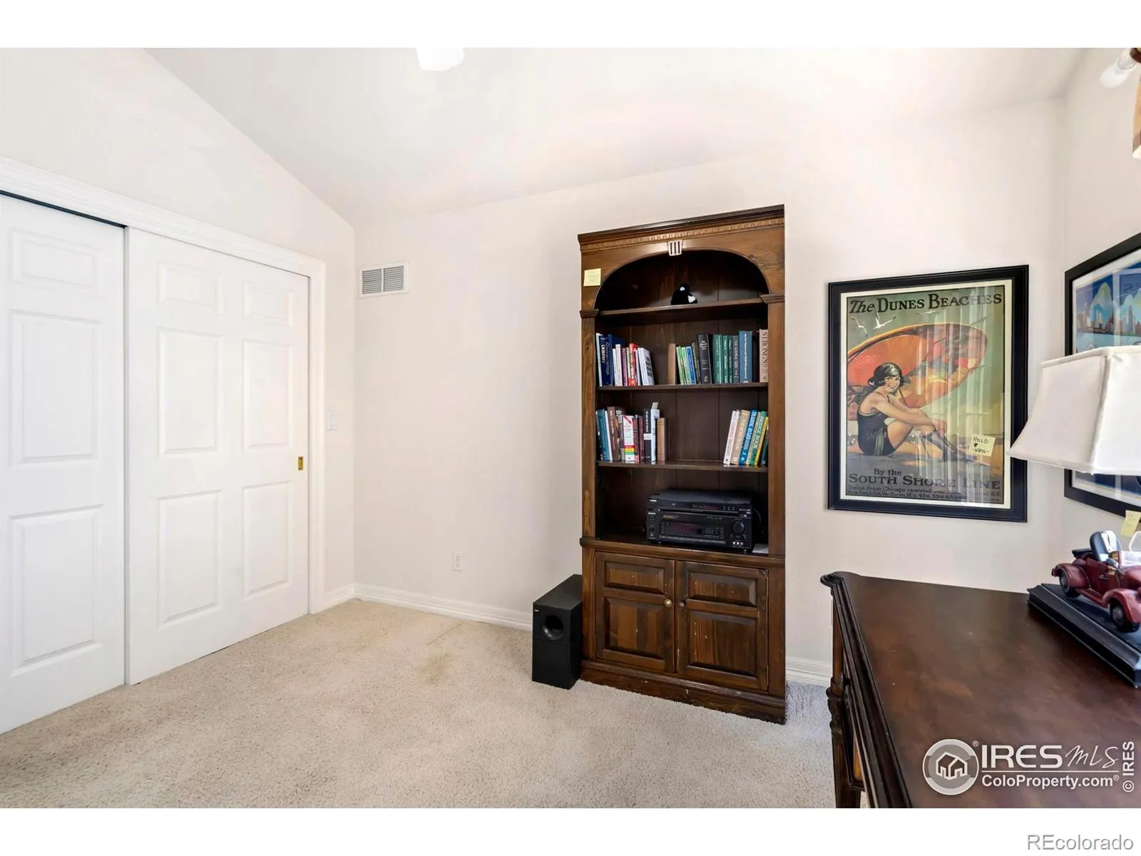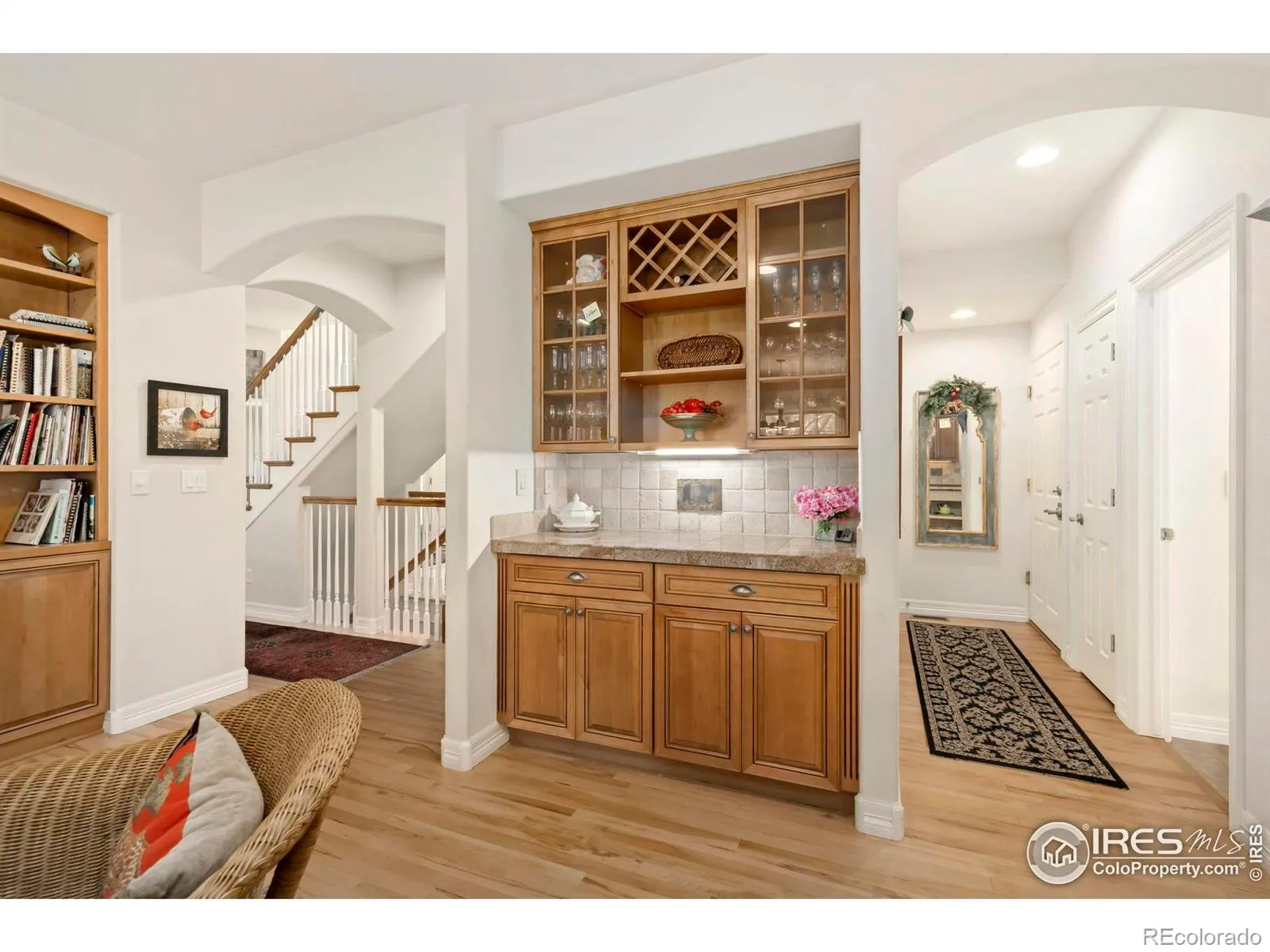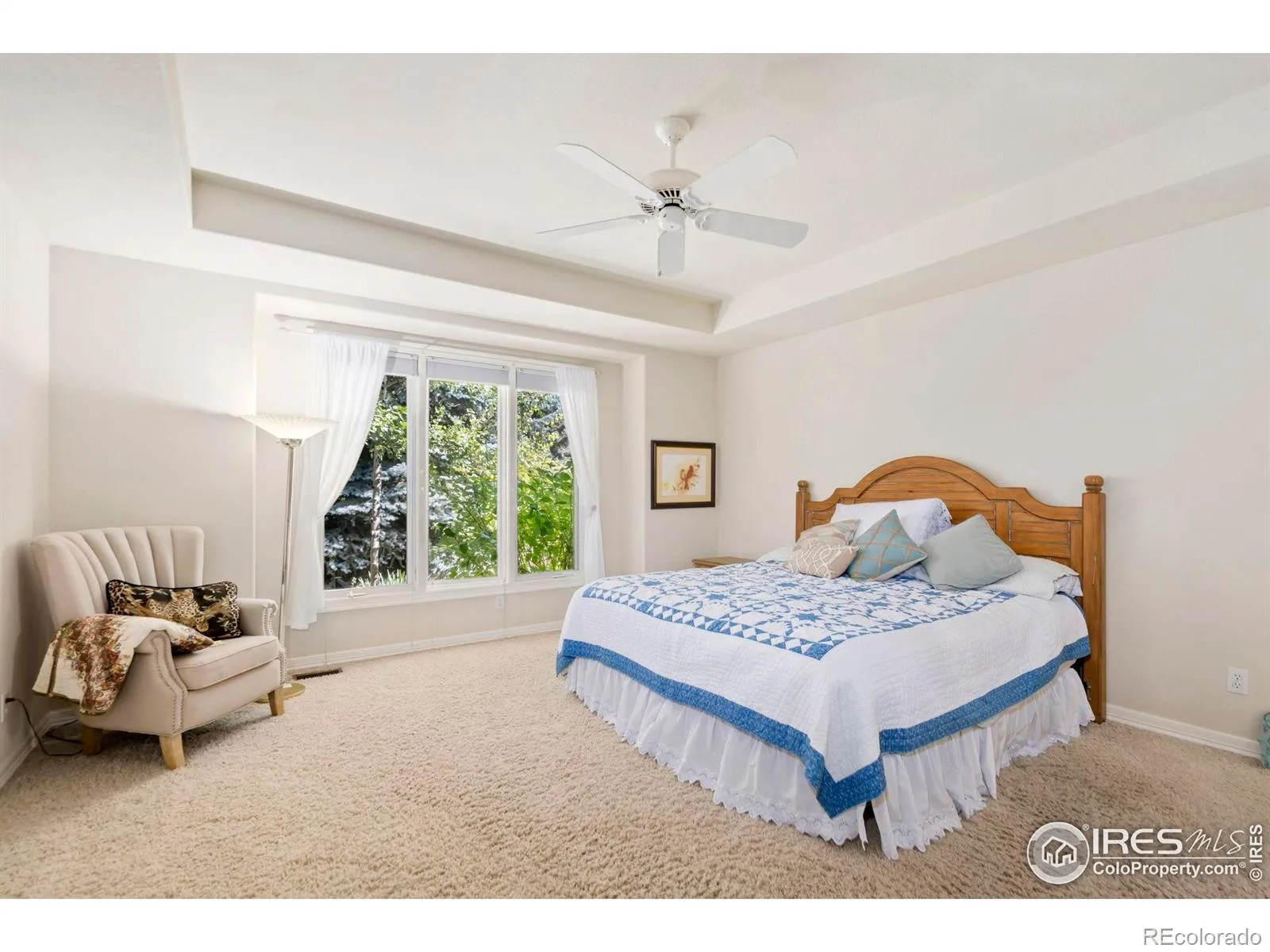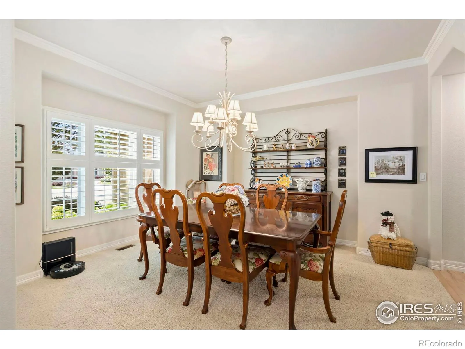Situated on the 8th fairway of Southridge Golf Course, this custom home sits in a quiet cul-de-sac with beautiful finishes throughout. The main level features a spacious primary suite, private office, and a library-style great room with walkout patio. The kitchen offers a large island and hearth-side seating with a see-through fireplace. Plantation shutters add elegance. Enjoy Southridge Greens living near trails and top Fort Collins amenities. Meticulously maintained and move-in ready.