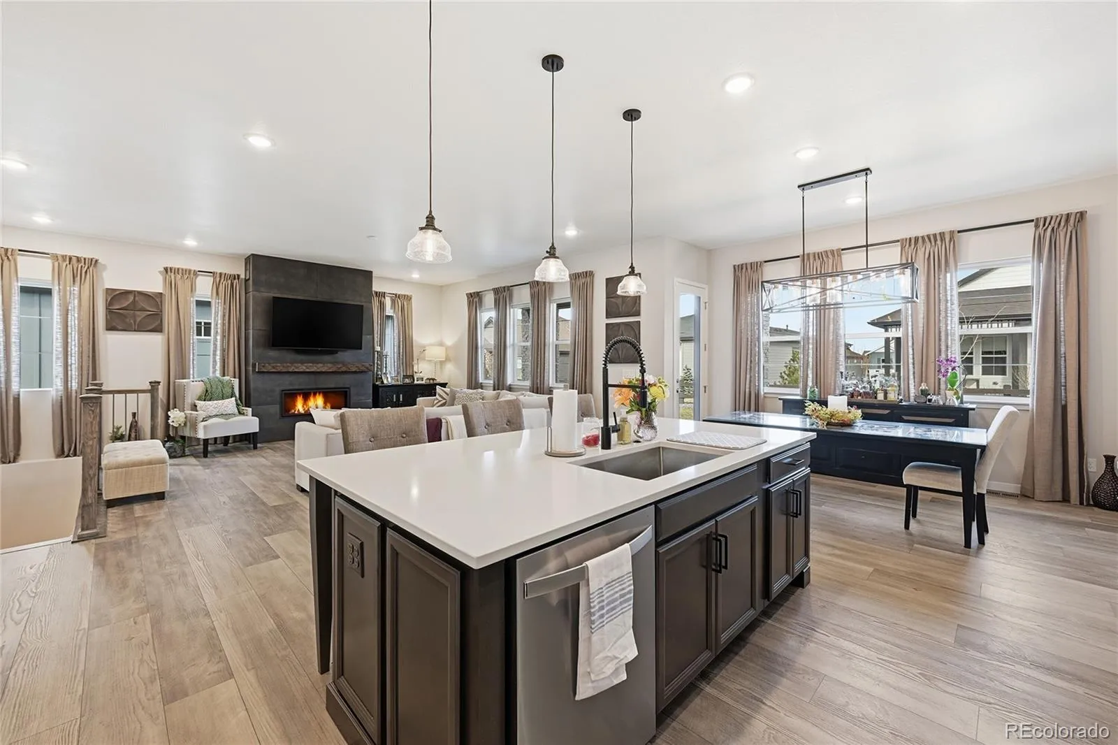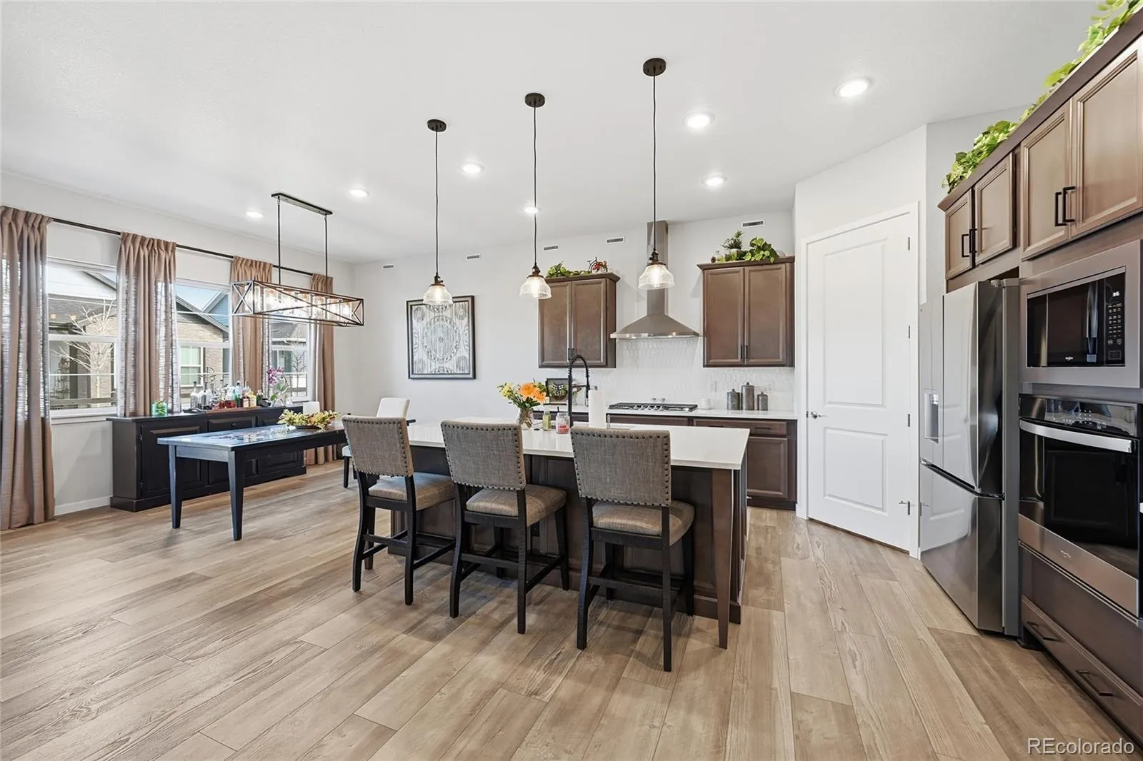 Welcome to refined, elevated living in a premier new 55+ community, Hilltop @ Inspiration! This award winning community is ideally situated along the border of Douglas County and Arapahoe County in breathtaking Colorado. This exceptional residence offers an unparalleled blend of sophistication, comfort, and vibrant community lifestyle — all framed by sweeping mountain views that grace the neighborhood throughout. Designed for both elegance and ease, this expansive home offers 4,376 total square feet with three beautifully appointed bedrooms and two luxurious baths. The open-concept layout creates a seamless flow between living, dining, and entertaining spaces, enhanced by abundant natural light and thoughtfully curated finishes. At the heart of the home, the gourmet kitchen impresses with quartz countertops, premium appliances, and designer details that elevate everyday living into a culinary experience. Custom tile work in the bathrooms adds a bespoke touch of artistry and refinement, reflecting quality craftsmanship at every turn. Beyond the home itself, residents enjoy scenic community trails, beautifully maintained parks, and the Hilltop Club complete with pickleball and tennis courts, swimming pool, weight room, and community areas for game nights, activities & even outdoor concerts! All amenities contributing to an active, connected, and resort-inspired lifestyle. This is more than a home; it is an invitation to experience elevated luxury in a community designed for both comfort and distinction! Seven minutes to Costco, Whole Foods, Trader Joe’s, King Soopers, Parker Adventist Hospital, Southlands Mall, Parker Arts, Culture & Events Center, charming downtown Parker, incredible dining, breweries & Poulette Bakeshop! 30 Minutes to DIA!