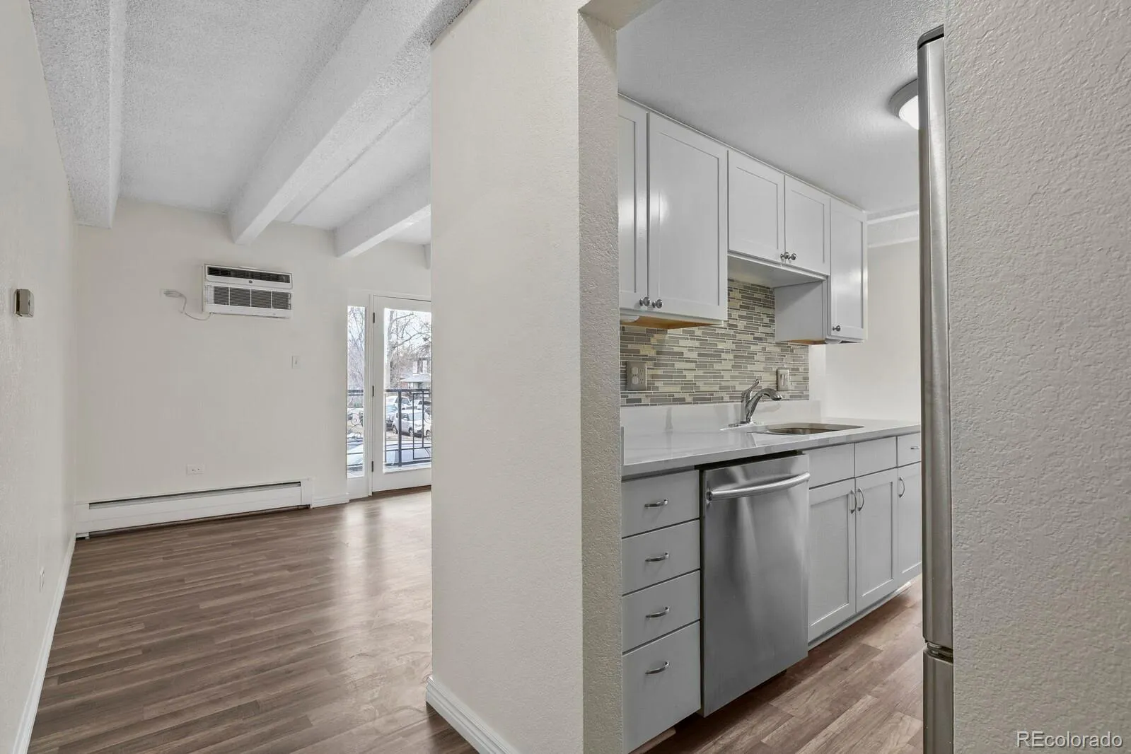 Excellent neighborhood for this 2 bedroom condo with huge balcony and deeded parking! Secure building in very walkable, desirable West Wash Park with restaurants, parks, Cherry Creek shopping district and Cherry Creek bike path all nearby. Freshly painted with new kitchen and dining room updates. This well laid out 2 bedroom condo has a full bathroom with a bonus vanity area that has an additional sink and generous counter space. Ample closets throughout including a storage closet in the hallway that can fit a stackable washer/dryer plus more. Large balcony that stretches the length of the unit and has access to every bedroom. Incredible central location with quick access to downtown. Fun community pool that’s great for hot summer days. Available street parking is easier than many other neighborhoods. FHA spot approval may be possible. Heat and water included in the HOA. Great home and fantastic location!