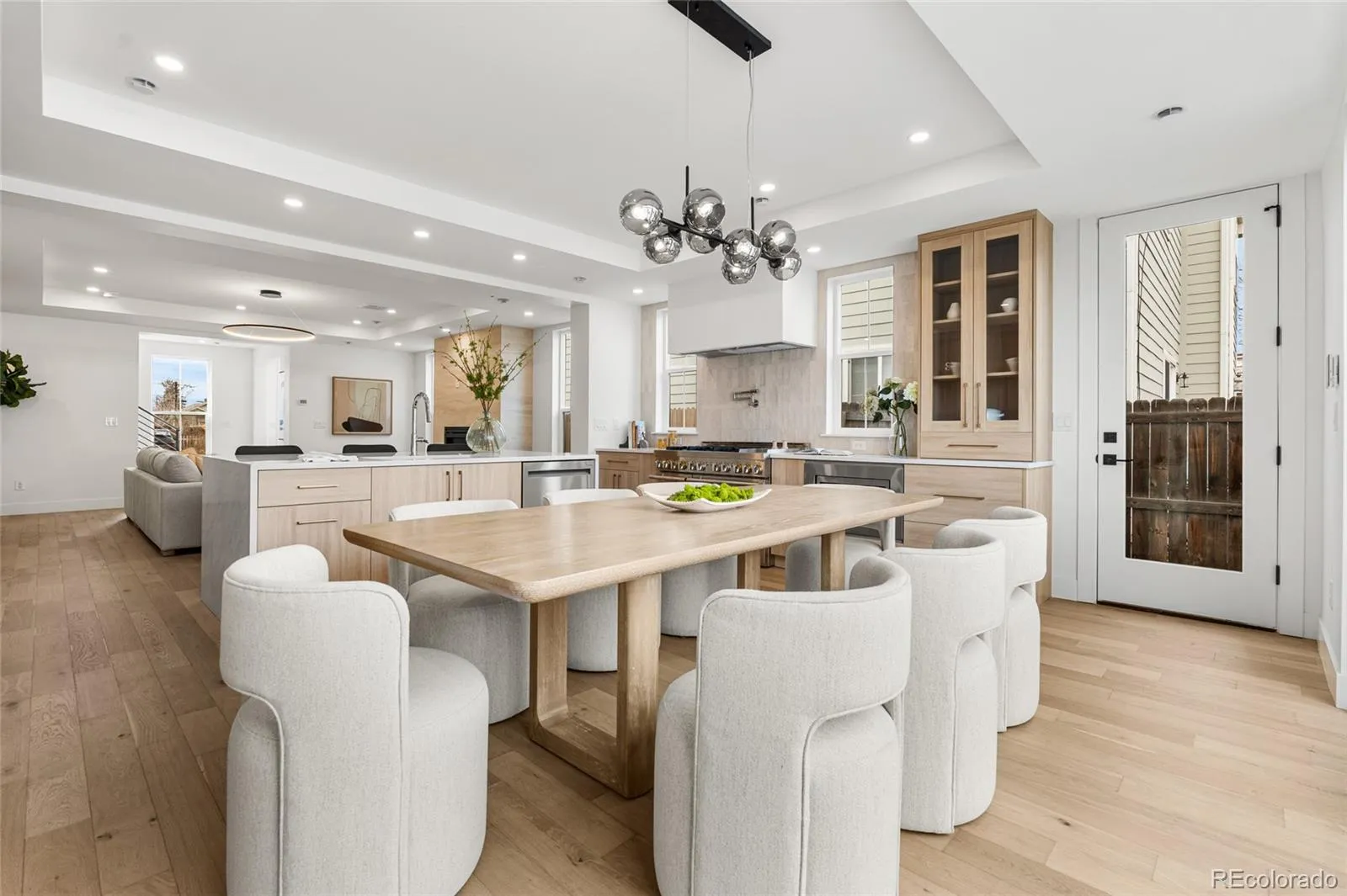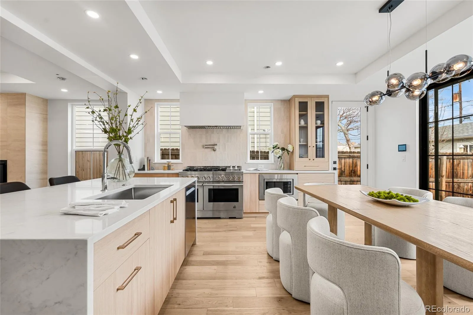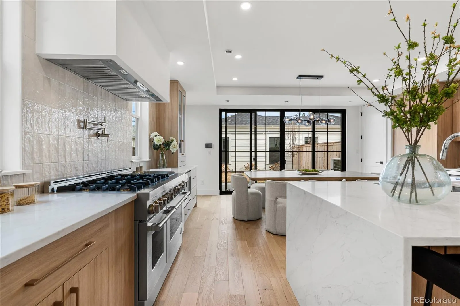 An oversized sliding door extends living outdoors to a landscaped backyard with hydrangeas and a generous patio designed for seamless entertaining. Upstairs, the primary suite offers mountain views, a private balcony, dual closets, and a spa-caliber 5-piece bath with an oversized walk-in shower, complemented by an additional bedroom and full bath. The top level provides exceptional flexibility with a den, third bedroom, wet bar, and rooftop deck capturing sweeping Downtown Denver views. Complete with a 2-car garage, abundant storage, builder warranty, and no HOA. Ideally located one block from Broadway and moments to Overland Golf Course, DU, Safeway, and SoBo’s vibrant restaurants, music venues, and parks—with convenient access to the mountains and Red Rocks Amphitheatre.