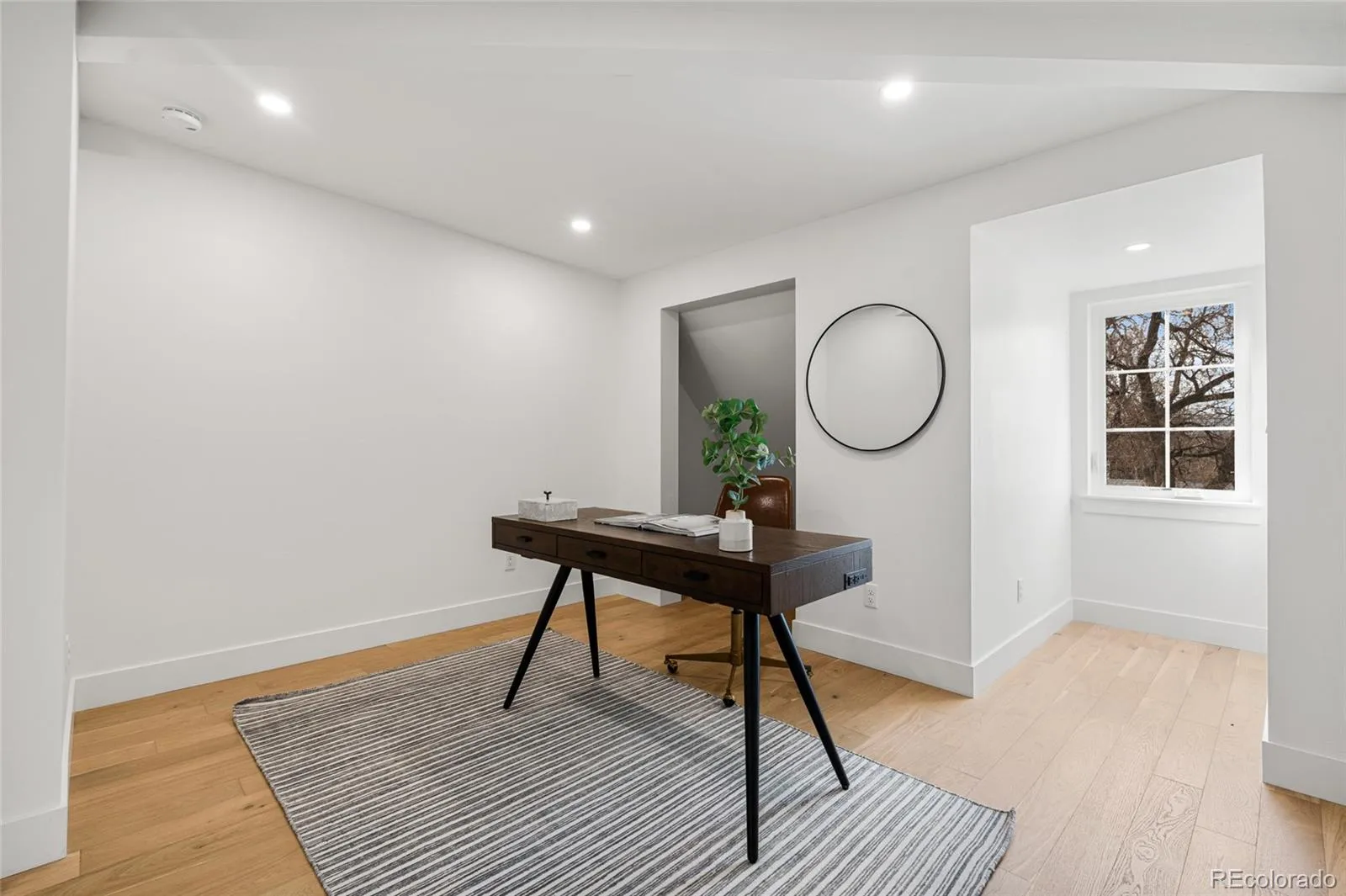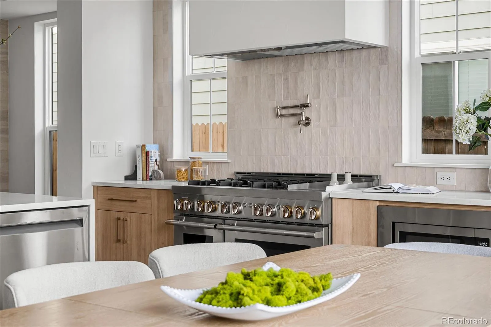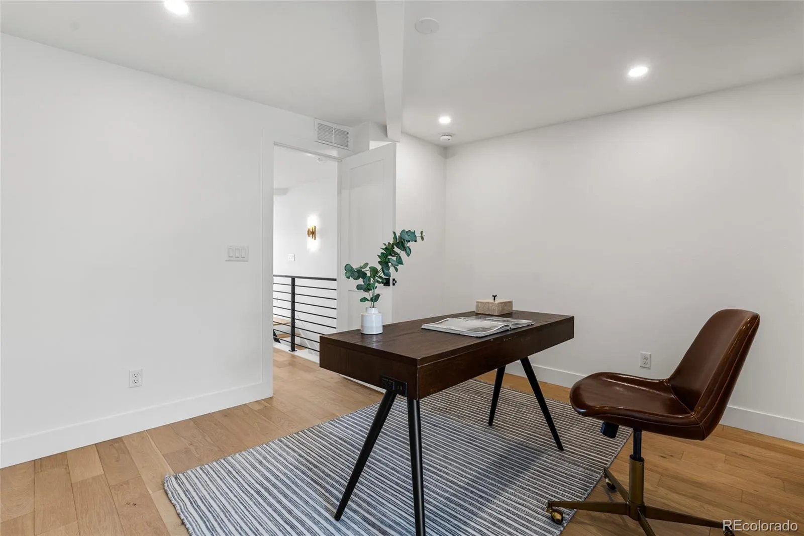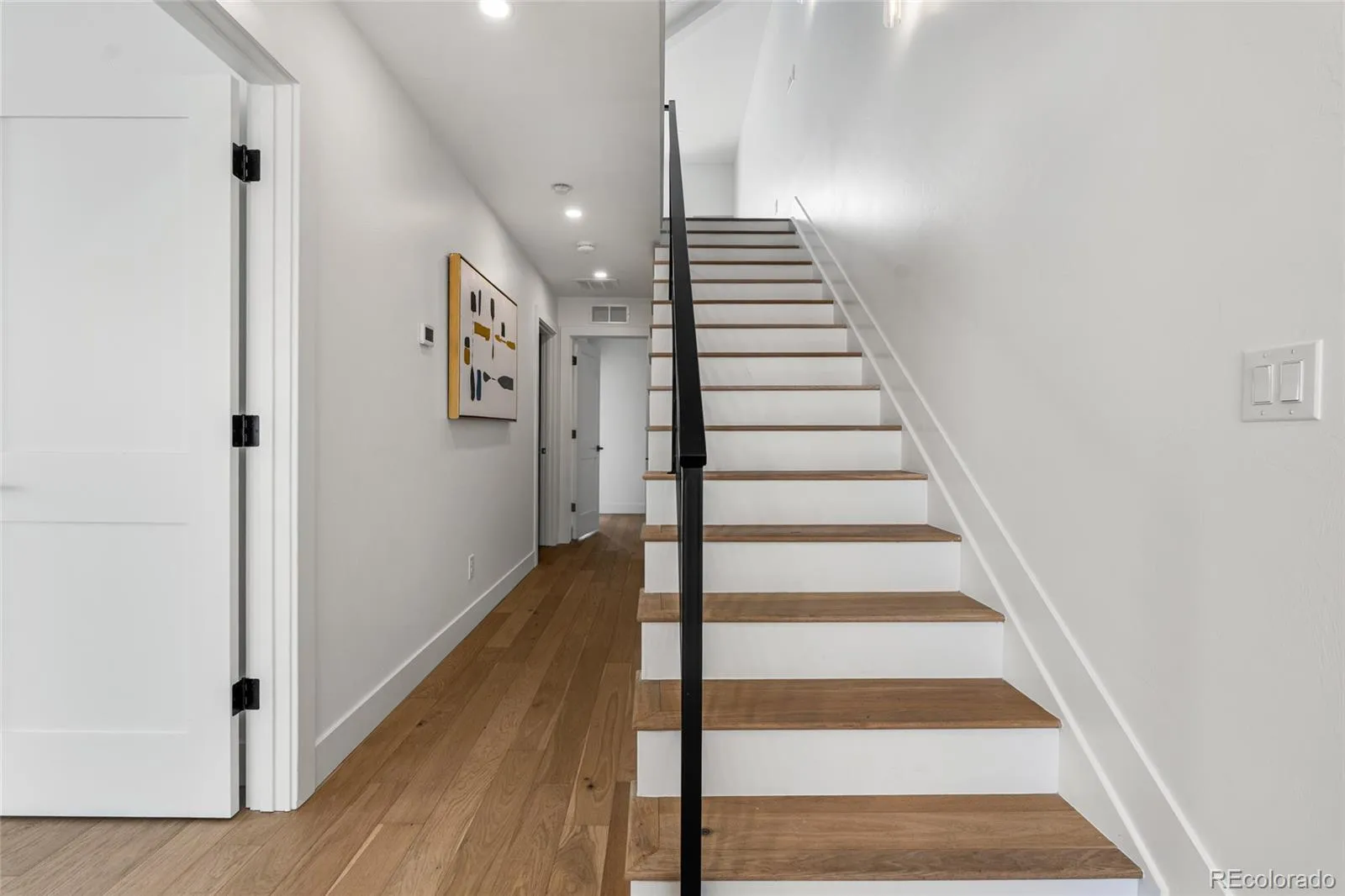 An oversized sliding door extends living outdoors to a landscaped backyard with hydrangeas and a generous patio designed for seamless entertaining. Upstairs, the primary suite offers mountain views, a private balcony, dual closets, and a spa-caliber 5-piece bath with an oversized walk-in shower, complemented by an additional bedroom and full bath. The top level provides exceptional flexibility with a den, third bedroom, wet bar, and rooftop deck capturing sweeping Downtown Denver views. Complete with a 2-car garage, abundant storage, builder warranty, and no HOA. Ideally located one block from Broadway and moments to Overland Golf Course, DU, Safeway, and SoBo’s vibrant restaurants, music venues, and parks—with convenient access to the mountains and Red Rocks Amphitheatre.