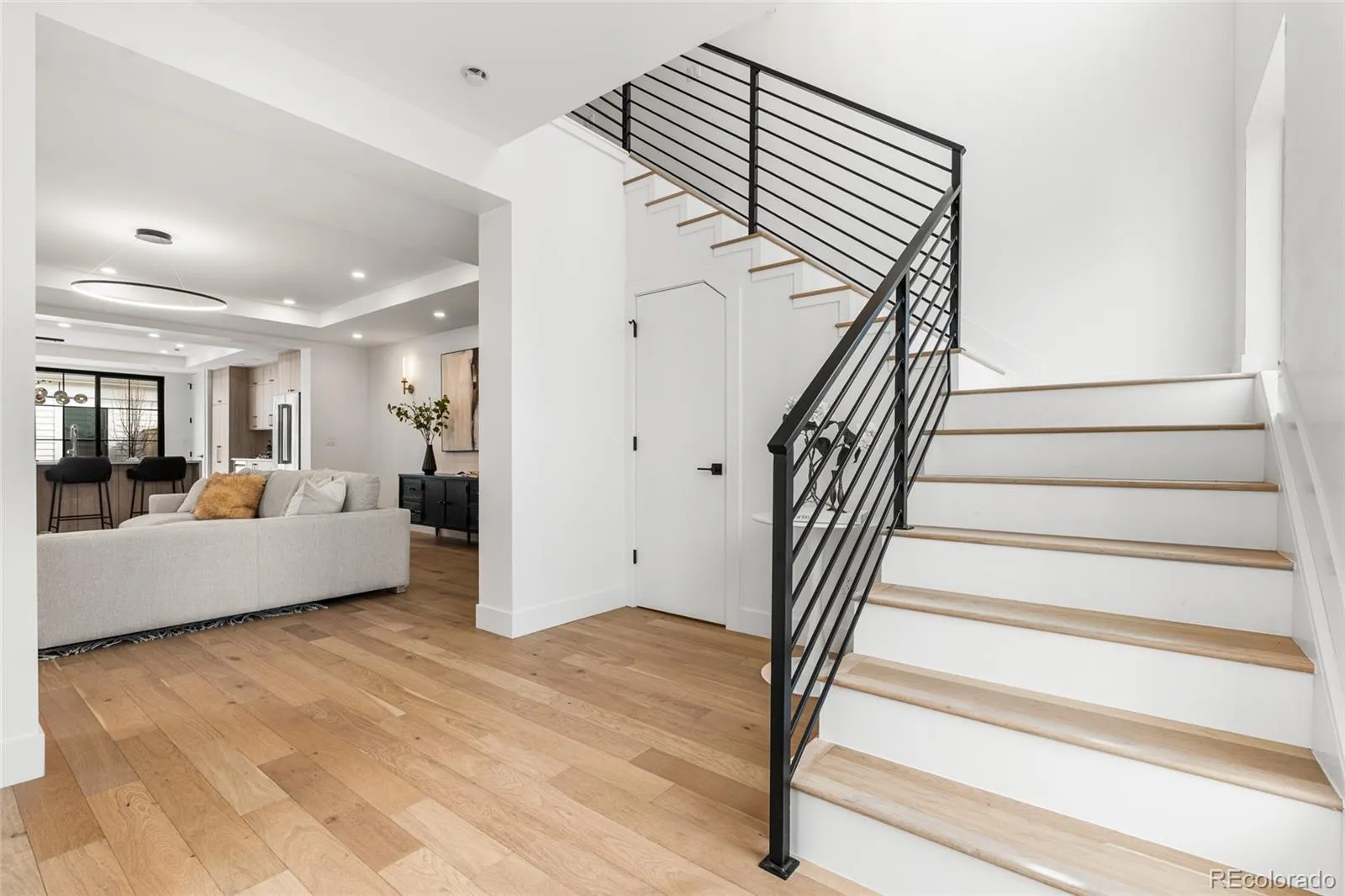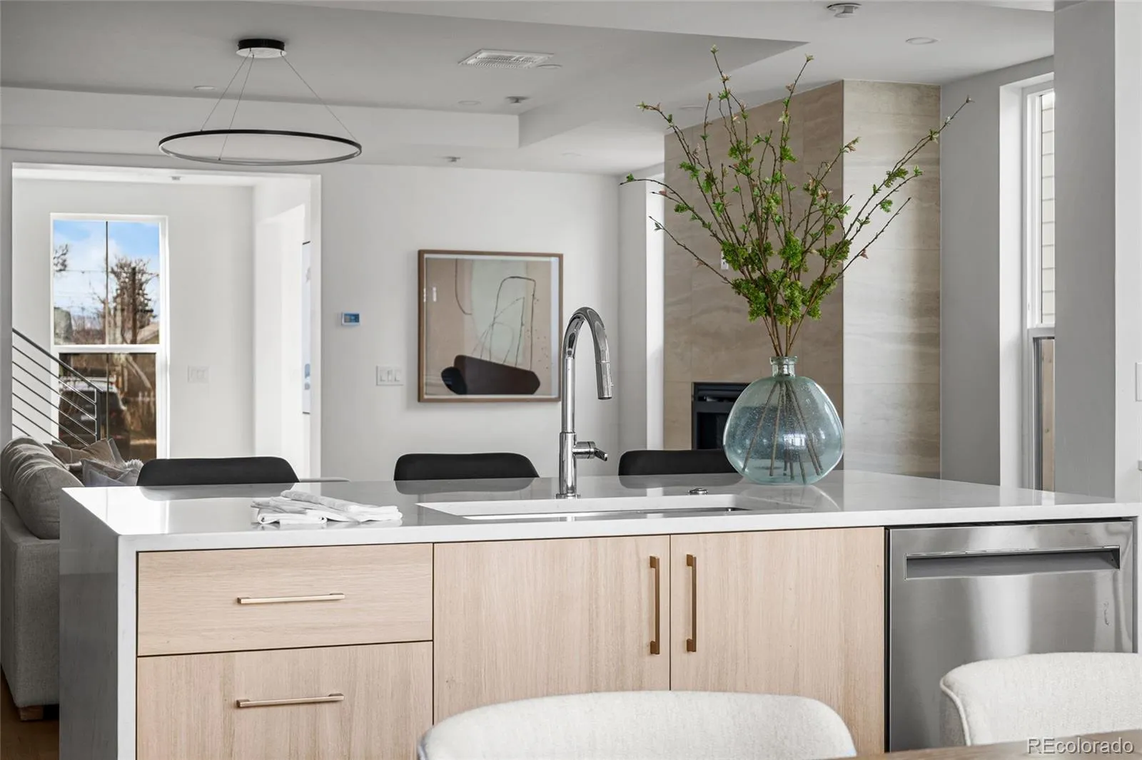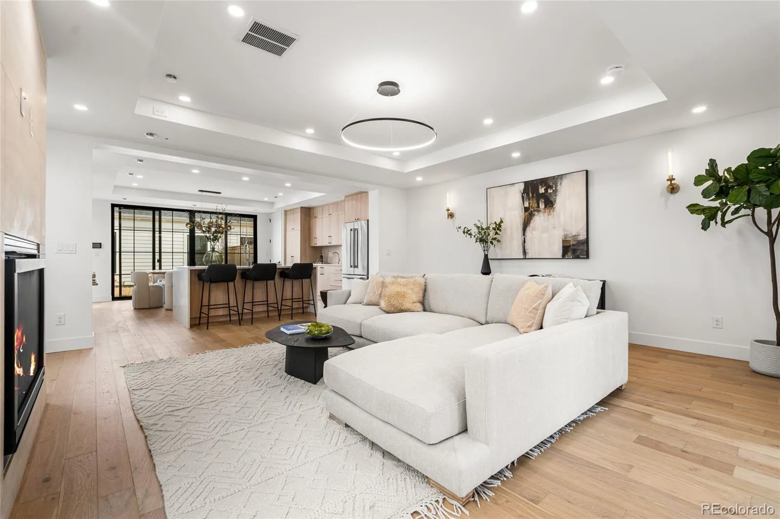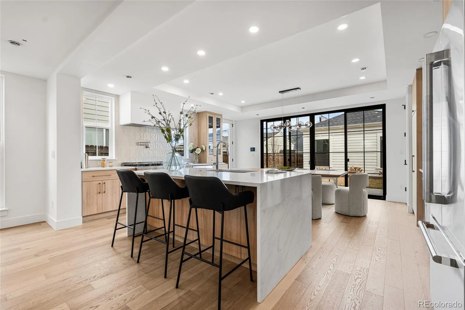 OPEN HOUSE – Sat. Feb 28th 11-1 PM Sun. March 1st 11-1 PM. Introducing 2360 Acoma St, an exceptional brand-new 3-bedroom, 4-bath, three-story residence in the heart of SoBo. Inspired by East Coast Colonial and Greek Revival architecture, this home blends timeless design with elevated modern finishes. The open-concept main level offers wide-plank hardwood floors, coffered ceilings, a gas fireplace, and expansive 8-foot windows that flood the space with natural light. A front-positioned staircase maximizes the footprint, creating a wider, more open feel rarely found in multi-level homes. The chef’s kitchen is appointed with a full JennAir appliance suite, custom white oak cabinetry, a substantial quartz island, and floor-to-ceiling storage.