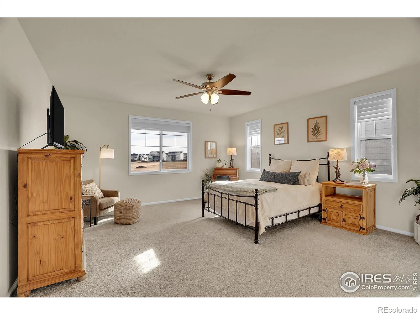 This stunning 5-bedroom, 3-bathroom ranch style home in Erie offers an unbeatable lifestyle. The expansive open floorplan flows seamlessly from the kitchen featuring sleek quartz countertops, high-end appliances including a sought-after double oven, into the cozy family room, perfect for everyday living and entertaining with surround sound installed. Step outside to the generous covered patio, which opens to open space and a walking trail, you can soak in breathtaking sunrises over the front range and watch colorful hot air balloons drift across the sky. It truly is an amazing sight. The spacious primary bedroom serves as a private retreat, while the finished basement will provide additional living space with its own surround sound set up and includes a wet bar offering flexibility for multiple entertainment areas. Additional highlights include and electric underground fence along with a heated garage. This is truly a must see! All information is deemed reliable, but is not guaranteed * Buyer & Buyer’s Agent are responsible for verification of all information including, but not limited to information about HOA, schools, square footage etc.