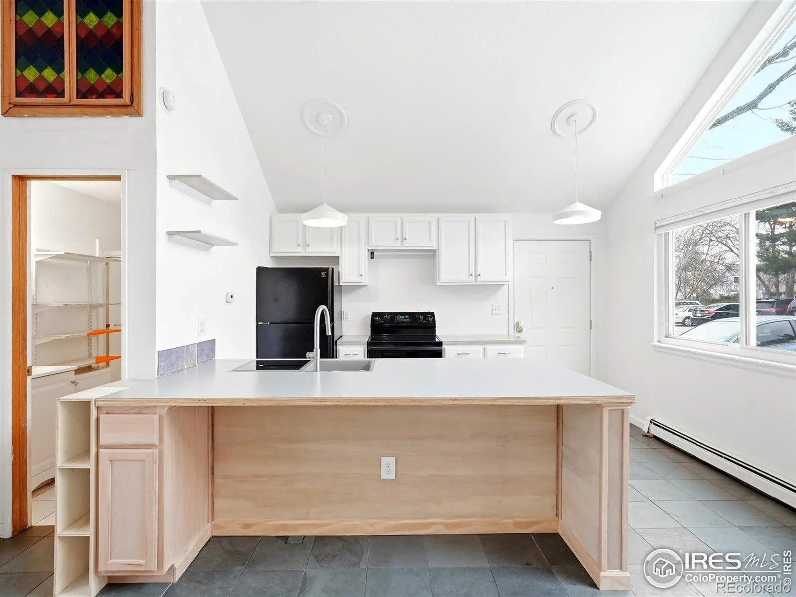 Affordable housing opportunity through Thistle Community Housing. Buyer must complete and receive approval through the Thistle application process prior to submitting an offer. Small in size. Big in intention.Welcome to this thoughtfully reimagined 361 sq ft studio in Sunnypoint Condominiums, located in the Kings Ridge neighborhood of Boulder, where every inch has been designed to live beautifully and efficiently.Flooded with natural light from expansive south-facing windows, this bright ground-floor corner residence feels open yet grounded. Tucked quietly into the corner of the building, it offers a unique sense of privacy while maintaining a strong connection to the outdoors.The true showpiece is a one-of-a-kind, hand-built cabinet wall custom designed by the owner after living in the space. This artisan installation seamlessly integrates a Murphy bed that transforms the studio from bedroom to living room in seconds, highly efficient clothing storage, open shelving, and a built-in desk that keeps work and home life neatly contained. The newly added kitchen island functions as prep space, dining area, laundry hub, and storage center all in one. A compact ventless washer/dryer combo and a discreet built-in dishwasher elevate daily living while preserving precious square footage. Every feature serves a purpose. Every element works double-duty. Beyond the walls, the lifestyle is equally compelling. The Goose Creek Bike Path and Greenway are just out the back, with a neighborhood park down the street. The building offers a shared community garden space exclusively for residents, along with garden beds near the unit and by the assigned parking space. The small size of the property fosters an easy sense of connection, and neighbors describe the community as welcoming and delightful. Whether you’re seeking your perfect starter home or a financially stable, low-maintenance foothold in Boulder, this residence offers simplicity without compromise.