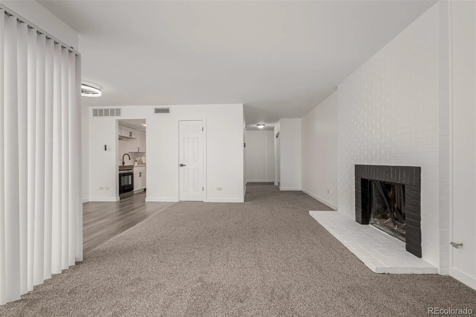 The open-concept layout flows effortlessly from the updated kitchen into the dining and living areas, anchored by a cozy wood-burning fireplace. Sliding doors lead to your private patio—perfect for morning coffee or unwinding after a long day.