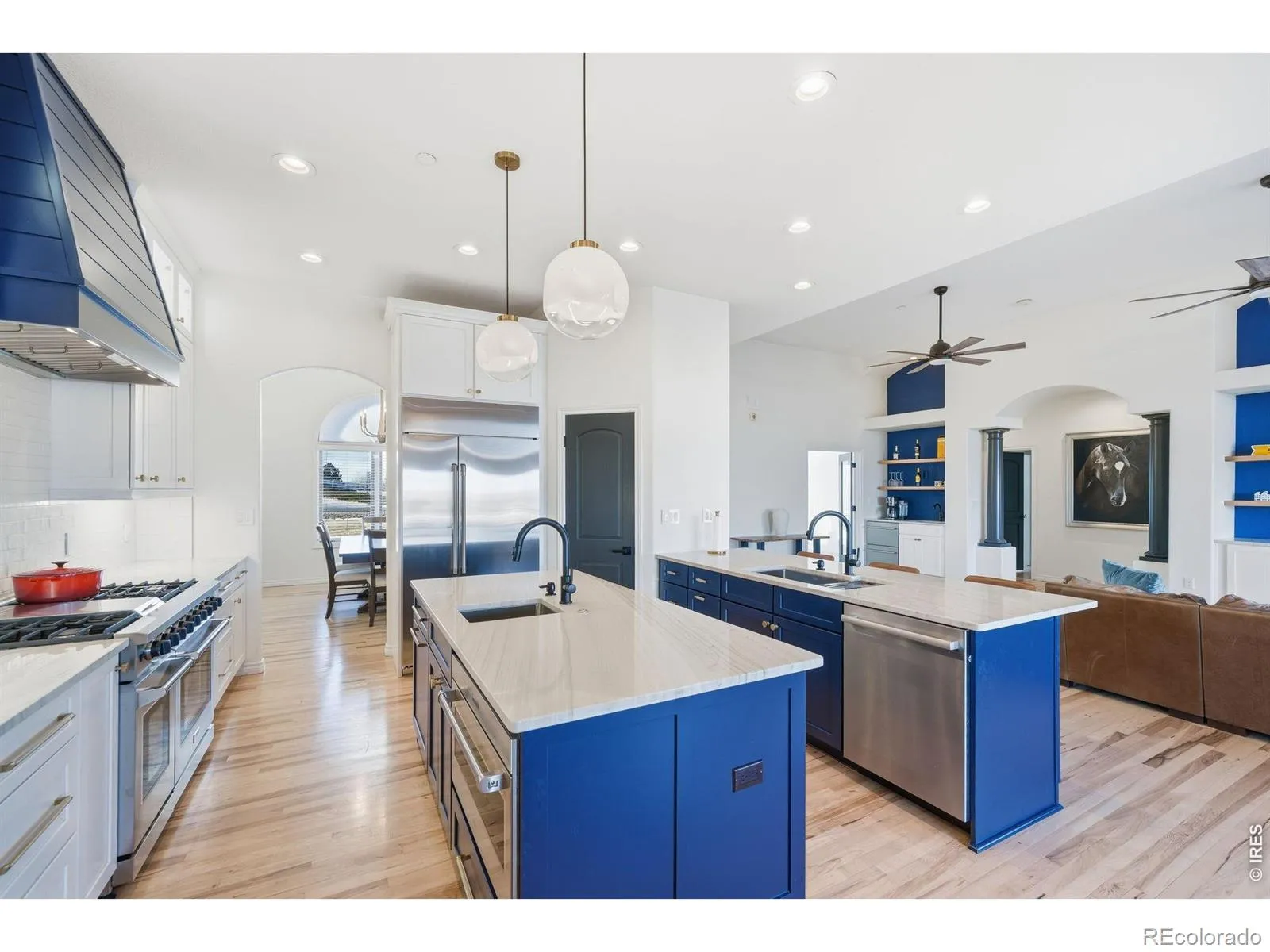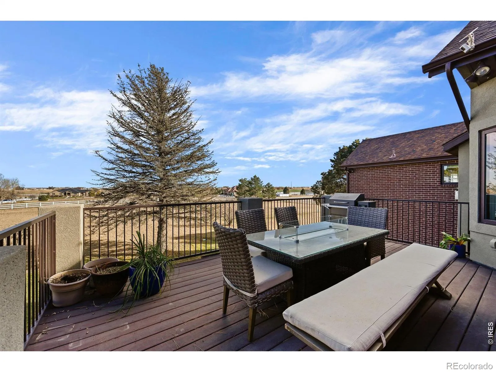 OVER 200K IN UPGRADES! Welcome home to contemporary country living in this reimagined and renovated sprawling ranch, situated on 2.3 acres in Brighton’s sought-after, Box Elder Estates. Modern luxury meets functional living with all-new scratch-resistant hardwood floors, new interior paint, vaulted ceilings, and refined finishes throughout. The formal living and dining spaces are ideal for entertaining with a custom-built-in wet bar which seamlessly connects to the fully renovated chef’s kitchen. Enjoy preparing a meal in the FULLY RENOVATED kitchen featuring dual islands and sinks & custom cabinetry. BRAND NEW 42″ GE Built-in Refrigerator and 48″ Thor gas range, Bosch Dishwasher. Steps off the kitchen is the inviting den, complete with an oversized picture window and cozy gas fireplace. Retreat to your main-floor primary suite. This sanctuary features a fully renovated 5-piece ensuite bath with a show-stopping 10-head walk-in spa shower, free-standing tub, and radiant heat flooring. The opposite wing features two bedrooms with ensuite bathrooms, and the third is an ideal home office or playroom. The expansive composite deck is ready for al fresco dining or summer entertaining with endless easterly views. Additional features of this turnkey residence include integrated smart home technology, custom remote-controlled window treatments in the primary bedroom, and gorgeous new light fixtures throughout. Plus, Class 4 Impact Resistant Roof, 3-car HEATED GARAGE, main floor laundry with custom cabinetry, and updated main floor powder bath. Options are endless with a full unfinished walk-out basement with R/I plumbing ready for you to finish exactly how you like! Enjoy the serene tranquility of country living with the ability to have horses and the convenience of modern amenities only moments away. Box Elder Estates is ideally located near major roadways, DIA, and multiple shopping and dining options at Reunion Marketplace and Brighton Pavilions. Book your showing today!