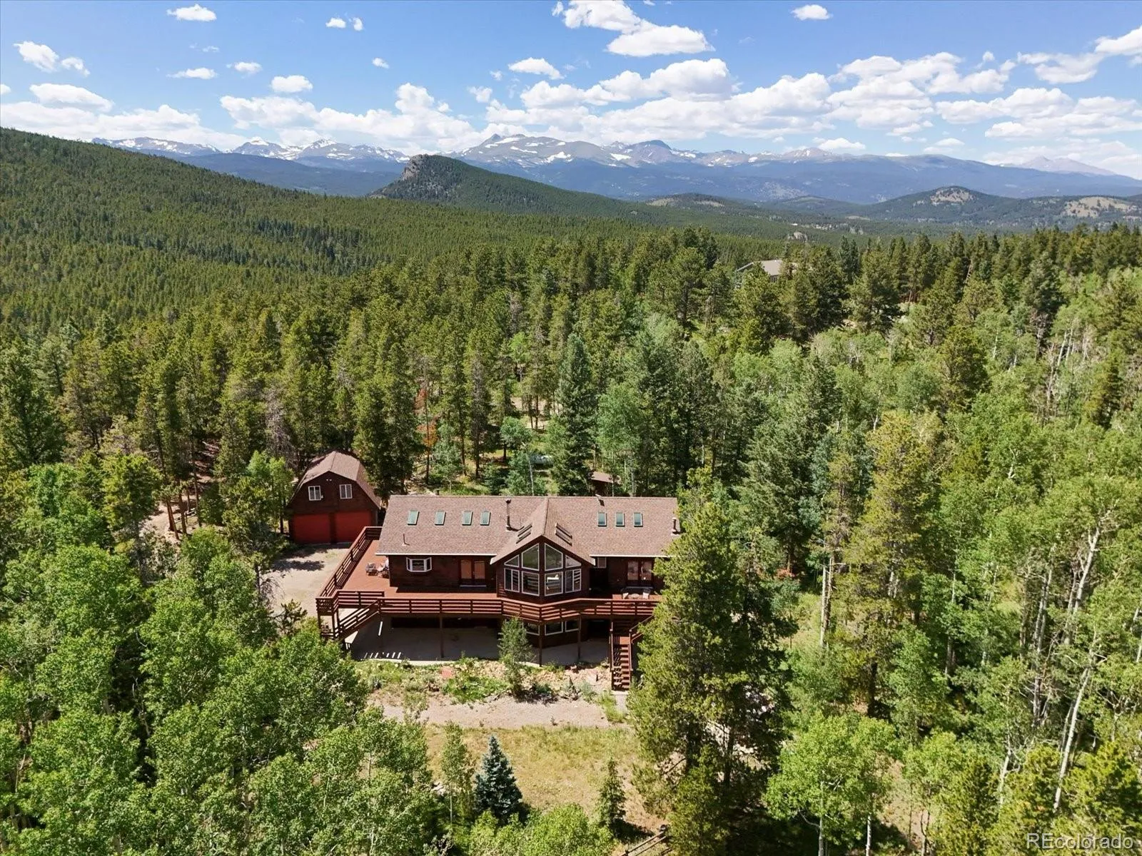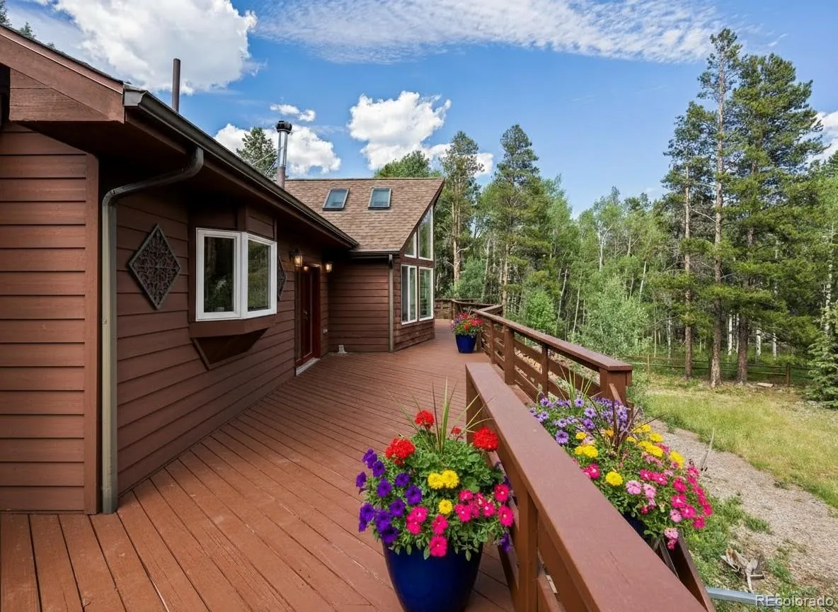 INCREDIBLE VALUE for this mountain perfection on just over 2.5 tree-filled acres surrounded by towering pines, aspens, and evergreens. This is the mountain home you’ve been waiting for, thoughtfully updated, private, and effortlessly stylish. The showstopping wraparound cedar deck is the heart of it all: perfect for morning coffee, sunset dinners, or hosting friends under the stars, all framed by nature and pristine mountain views. Inside, vaulted ceilings, skylights, and massive floor-to-ceiling windows fill the space with light and views. The kitchen features hardwood floors, granite counters, high-end appliances, and a generous island for gathering. The renovated primary suite offers a spa-like bathroom, large walk in closet, and plenty of space to relax and unwind while taking in the incredible views. Enjoy private access to the wrap around deck and enjoy your morning coffee. On the main level, you’ll find a spacious living room filled with natural light, plus an additional bedroom and full bathroom- ideal for hosting guests, creating a home office, gym, or media room. There is an oversized heated two-car garage attached to the home, plus a large detached two car garage with an insulated loft- perfect for a workshop, art studio, guest retreat, the possibilities are endless! You’ll enjoy the beauty of all four seasons here, with frequent visits from local wildlife including elk, deer, moose, and foxes passing through! From peaceful wildlife and views by day to dining, entertainment, and city conveniences just a short drive away, this home offers the best of both worlds. Just minutes to local restaurants, coffee shops, and the rec center, with easy highway access. Only 20 minutes to Central City’s casinos, dining, spas, live music, and entertainment. A rare find that truly has it all! Welcome home!