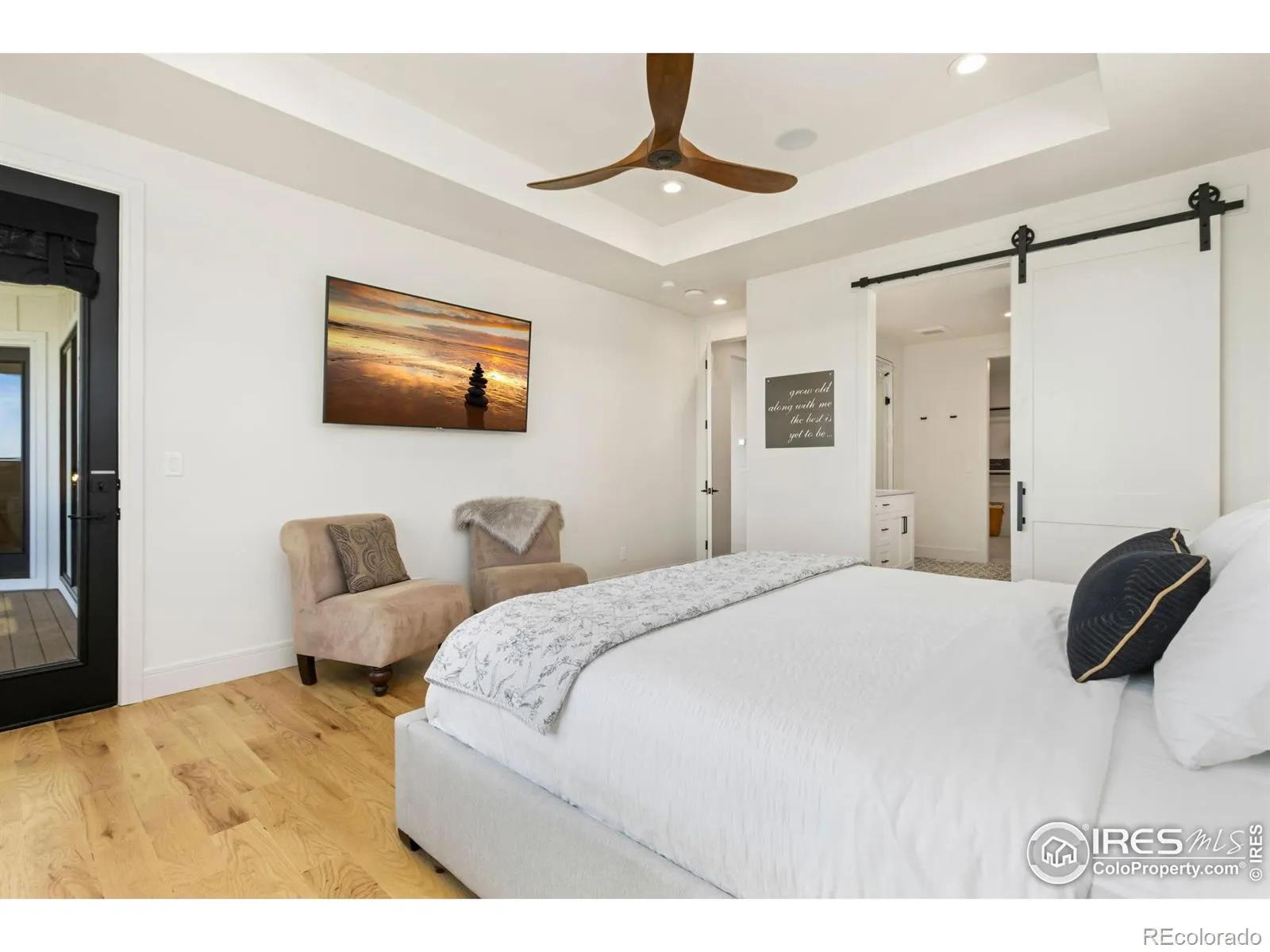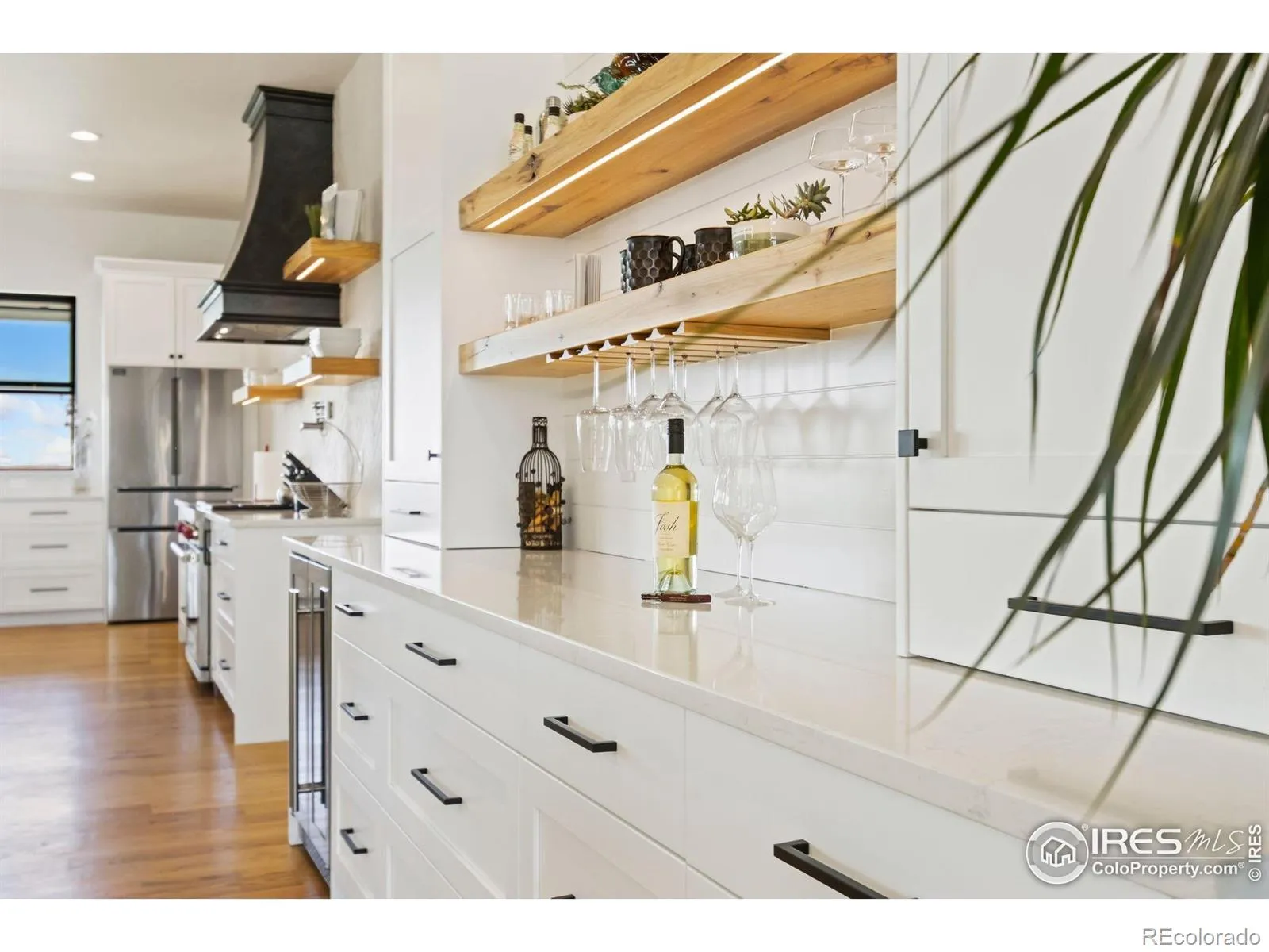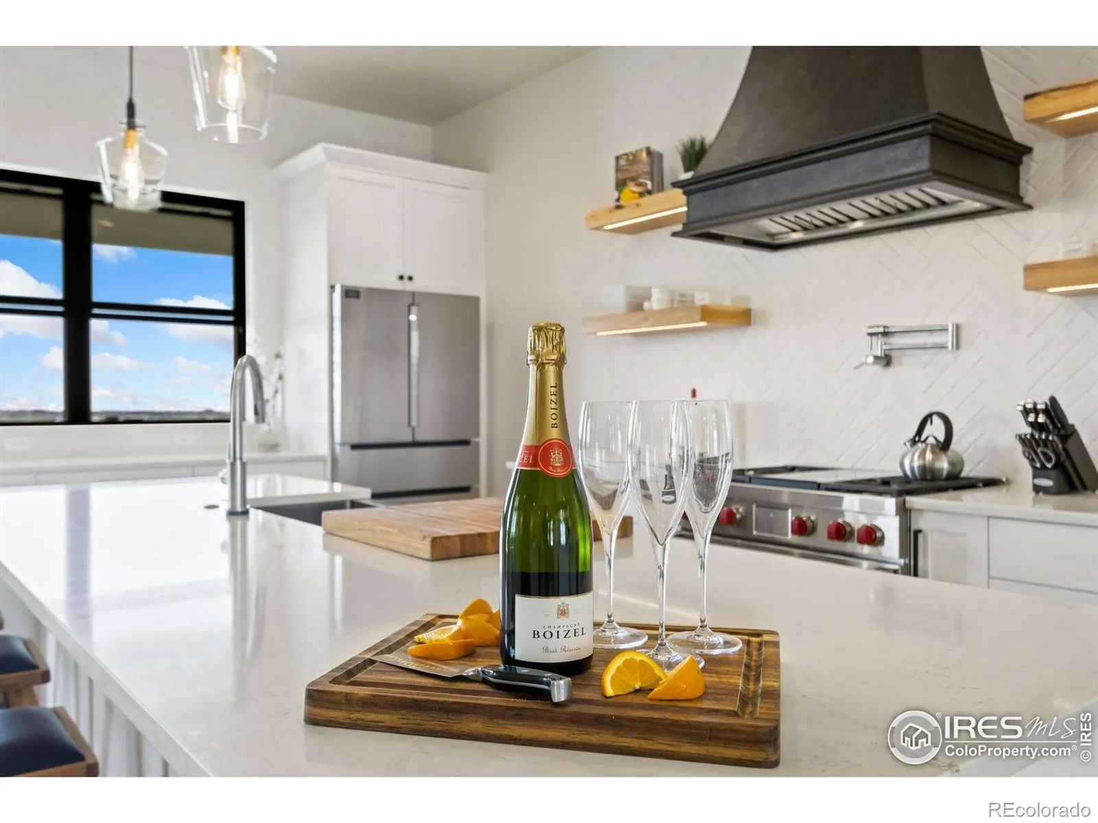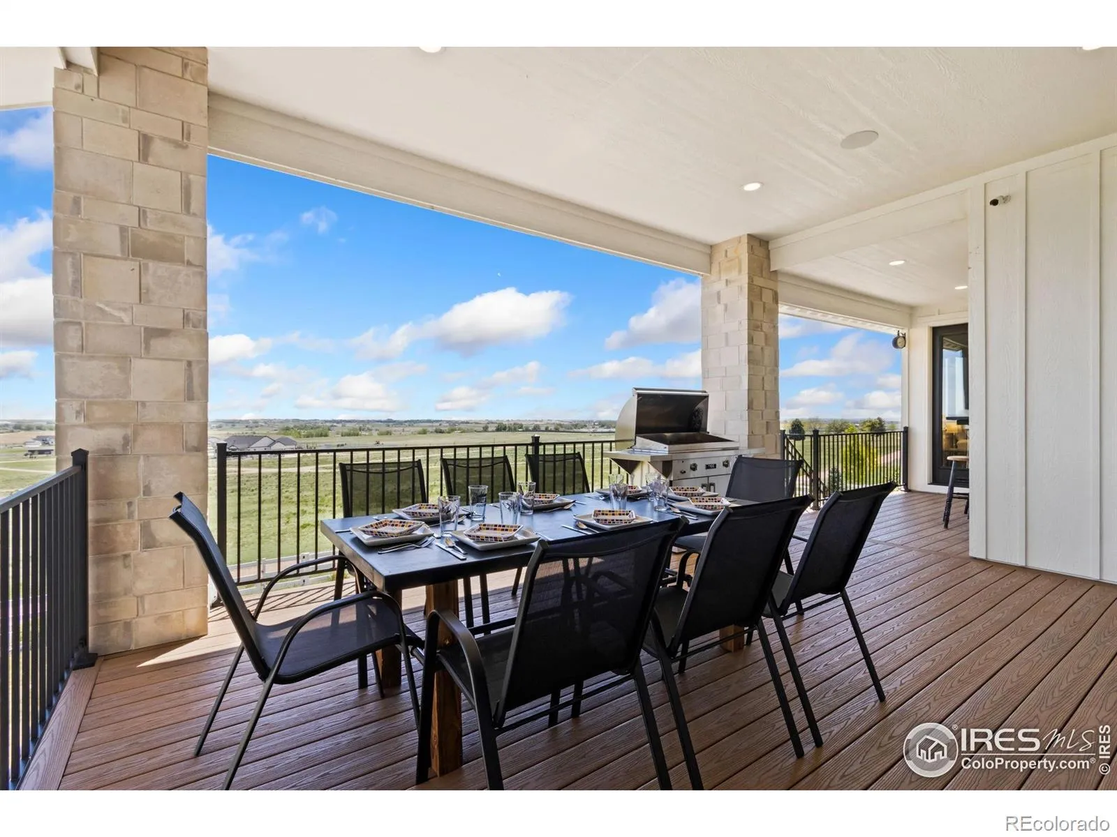 Welcome to 3802 Bridle Ridge Cir, a stunning ranch style custom-built home offering the perfect blend of elegance, functionality, and modern convenience. Built just a few years ago, this property boasts exceptional craftsmanship, a walkout basement, and panoramic mountain views that will take your breath away. The first floor features an open-plan kitchen and living room with ceiling beams and oak hardwood flooring, seamlessly leading to a covered deck, perfect for entertaining or relaxing. The gourmet kitchen is a chef’s dream, complete with double islands, a walk-in pantry, a custom raw metal range hood, and pass-through windows to an outdoor patio counter. The luxurious primary suite includes a spa-like bathroom with a steam shower, two shower heads, a built-in towel cabinet, and a walk-in closet. A second bedroom, full bathroom, and laundry room complete the main level. Downstairs, you’ll find a bedroom with a walk-in closet and ensuite, another versatile bedroom that doubles as a gym, a half-bath, and an open-plan kitchenette/family room. The walkout basement is wheelchair-accessible, featuring an on-suite with a roll-in shower and jetted tub, full wet bar and a wine cellar. Outdoors, enjoy raised self-watering garden beds and the convenience of upgraded security cameras and Wi-Fi-enabled garage doors. With split garages (2-car and 3-car), this home perfectly combines luxury, practicality, and unmatched mountain views.